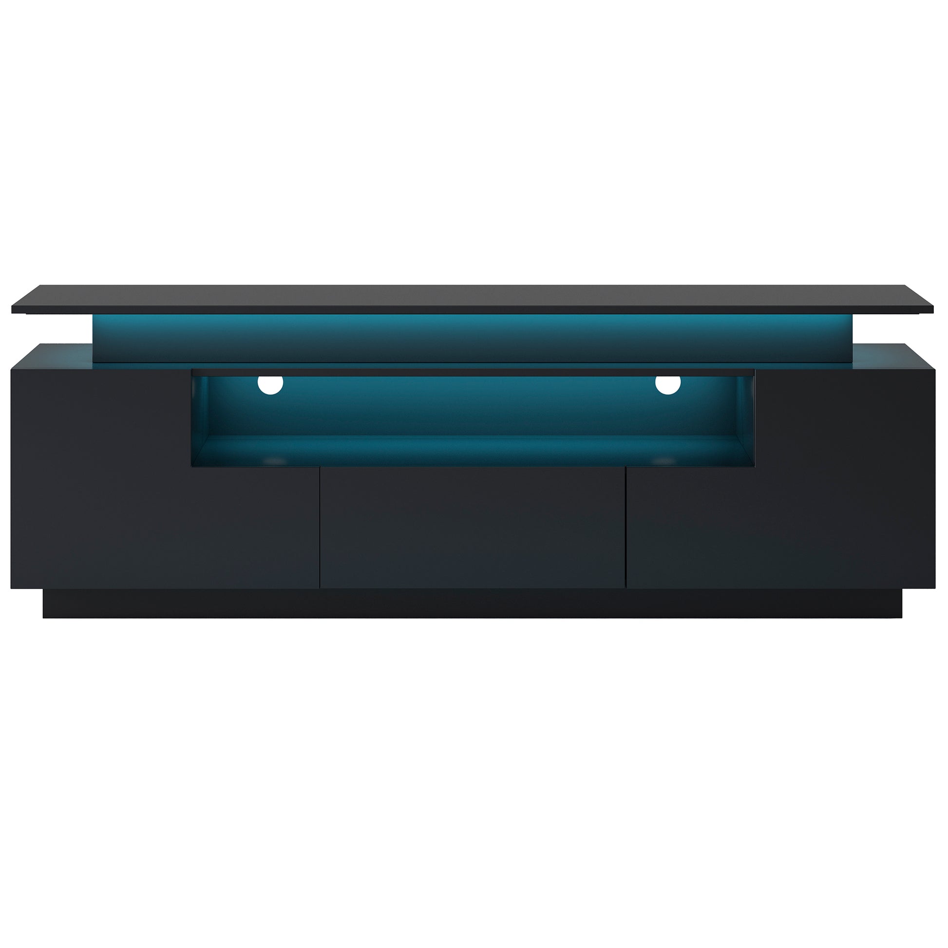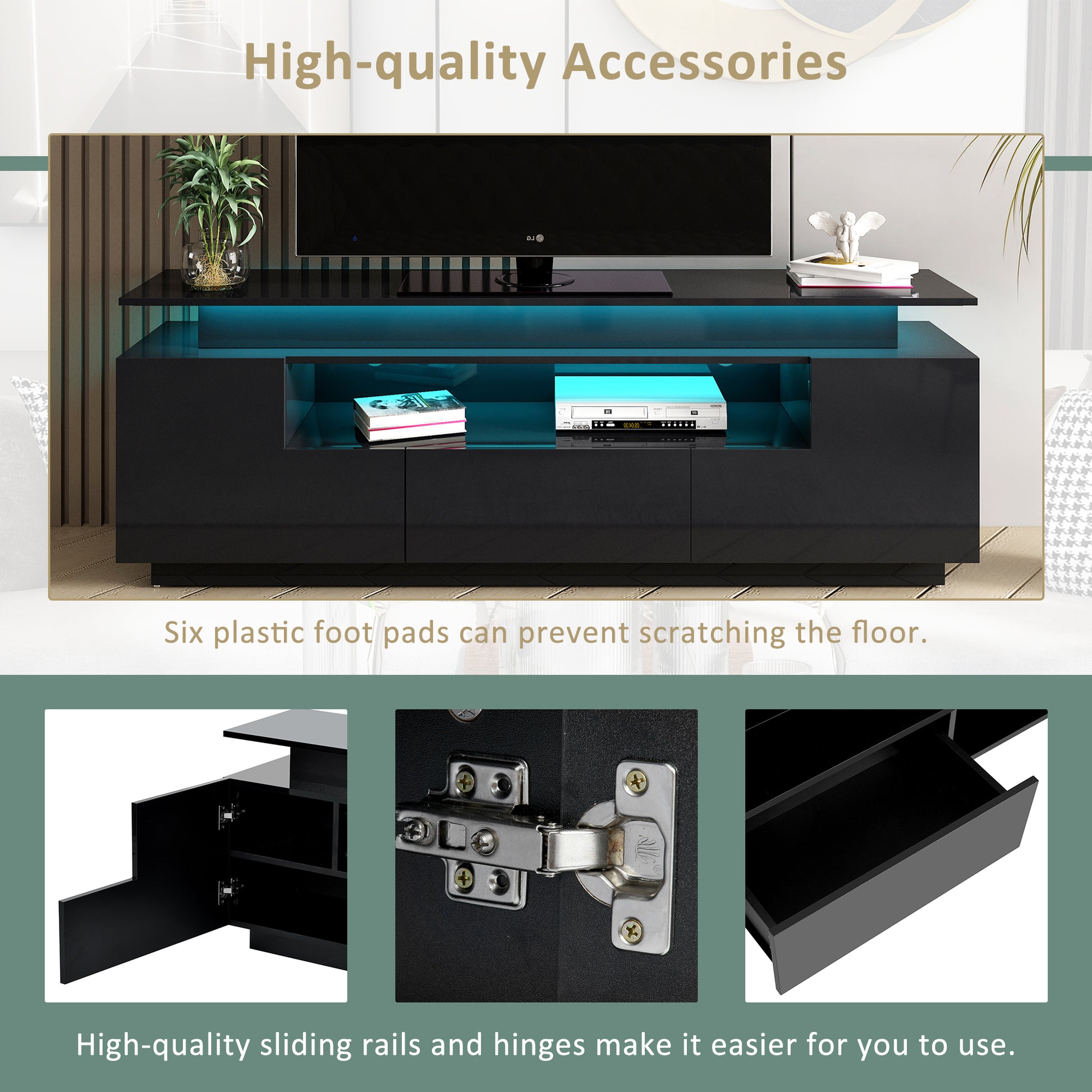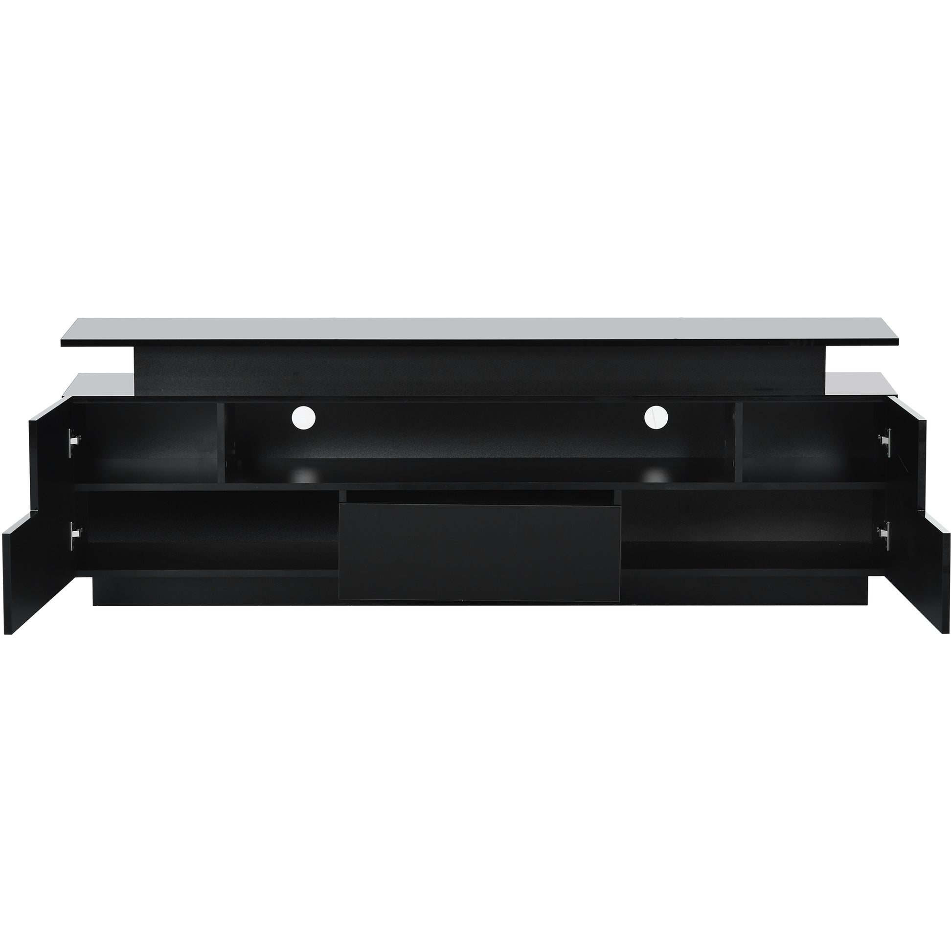 ON-TREND Modern, Stylish Functional TV stand with Color Changing LED Lights, Universal Entertainment Center, High Gloss TV Cabinet for 75+ inch TV, Black