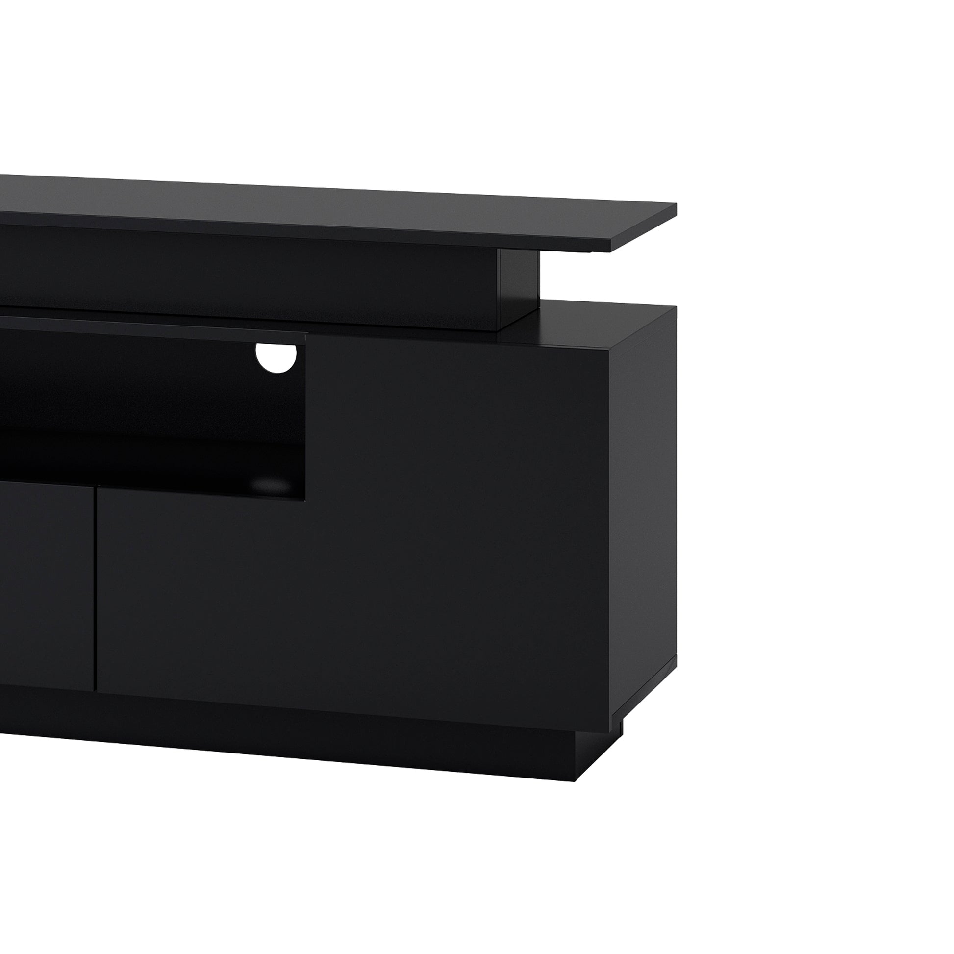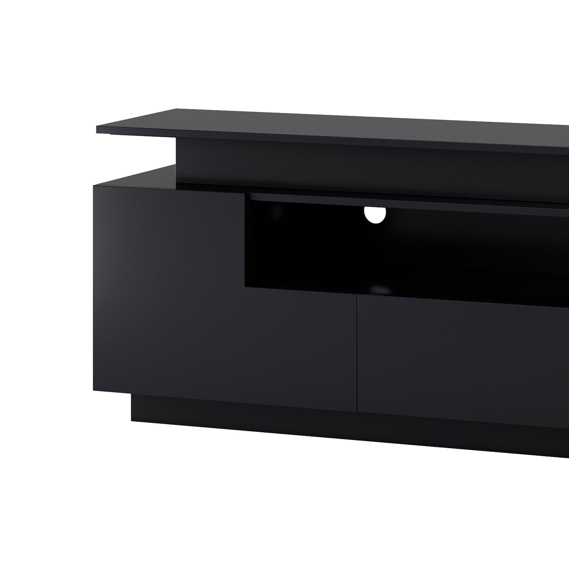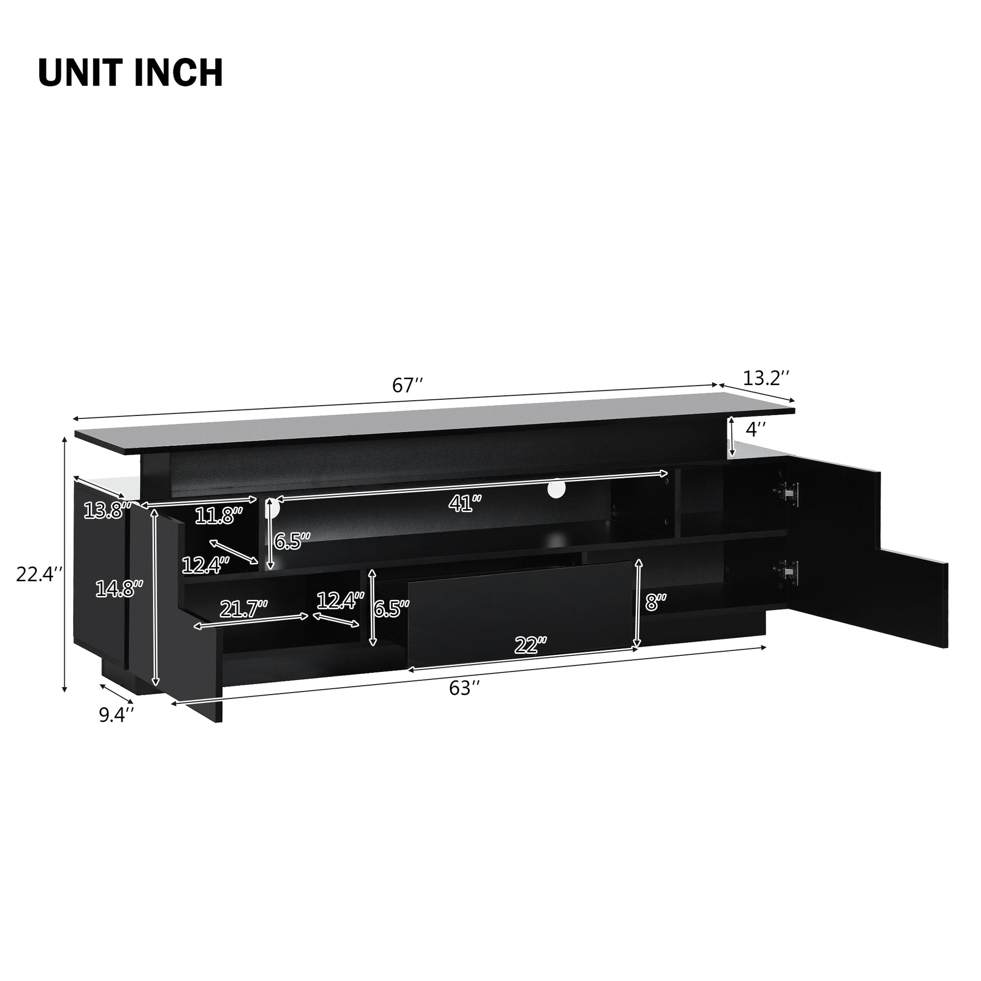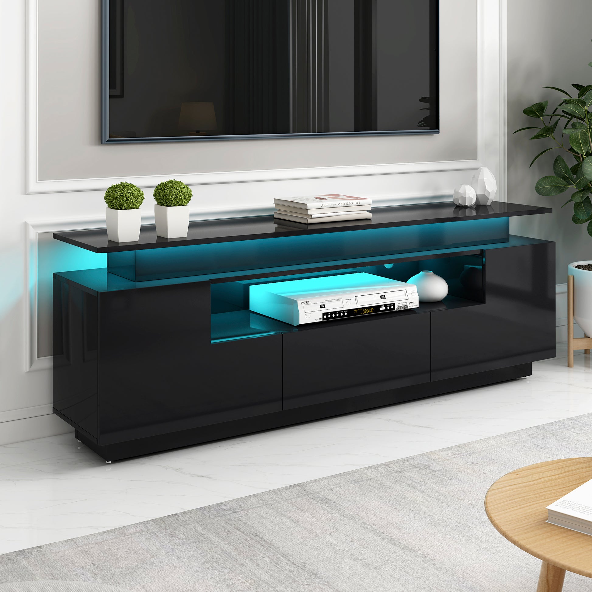 ON-TREND Modern, Stylish Functional TV stand with Color Changing LED Lights, Universal Entertainment Center, High Gloss TV Cabinet for 75+ inch TV, Black
