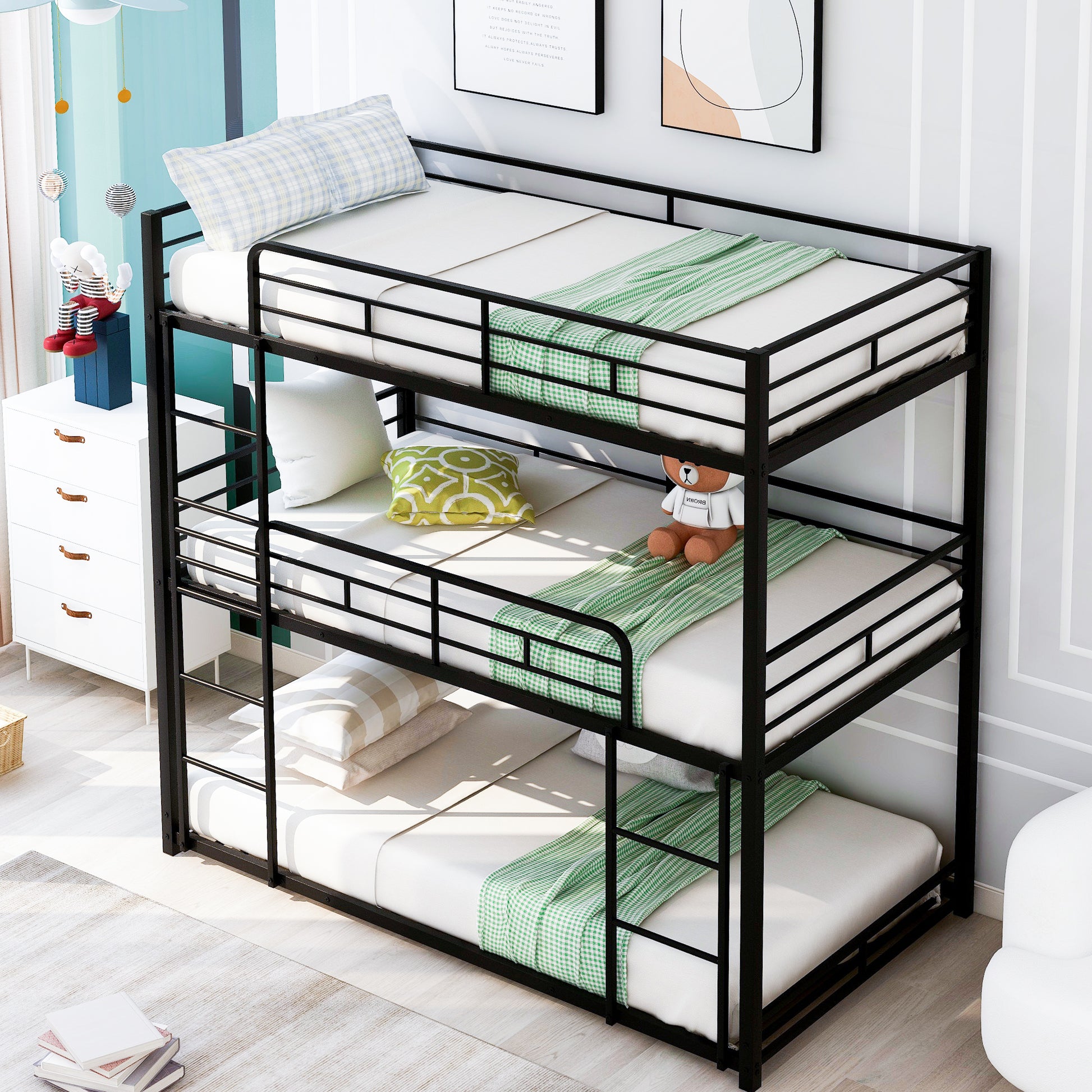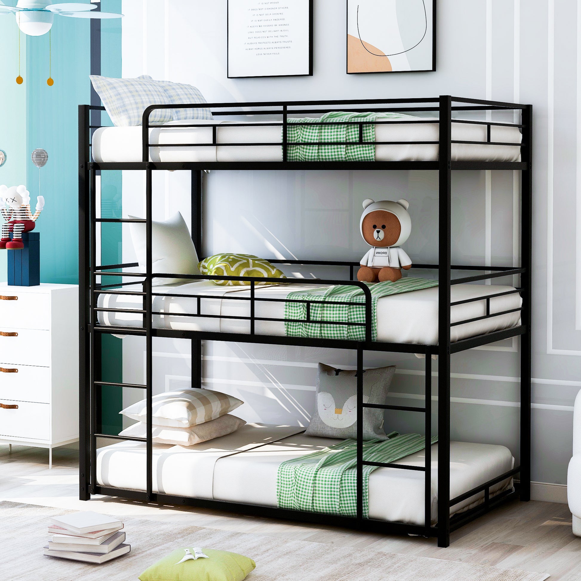 Metal Twin Size Triple Bunk Bed, Black