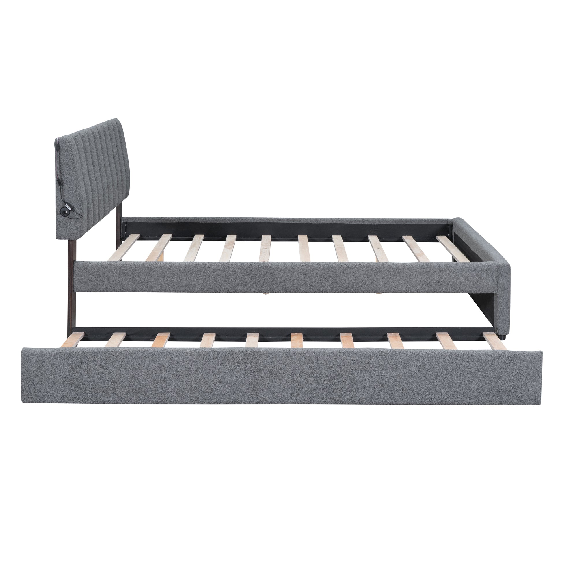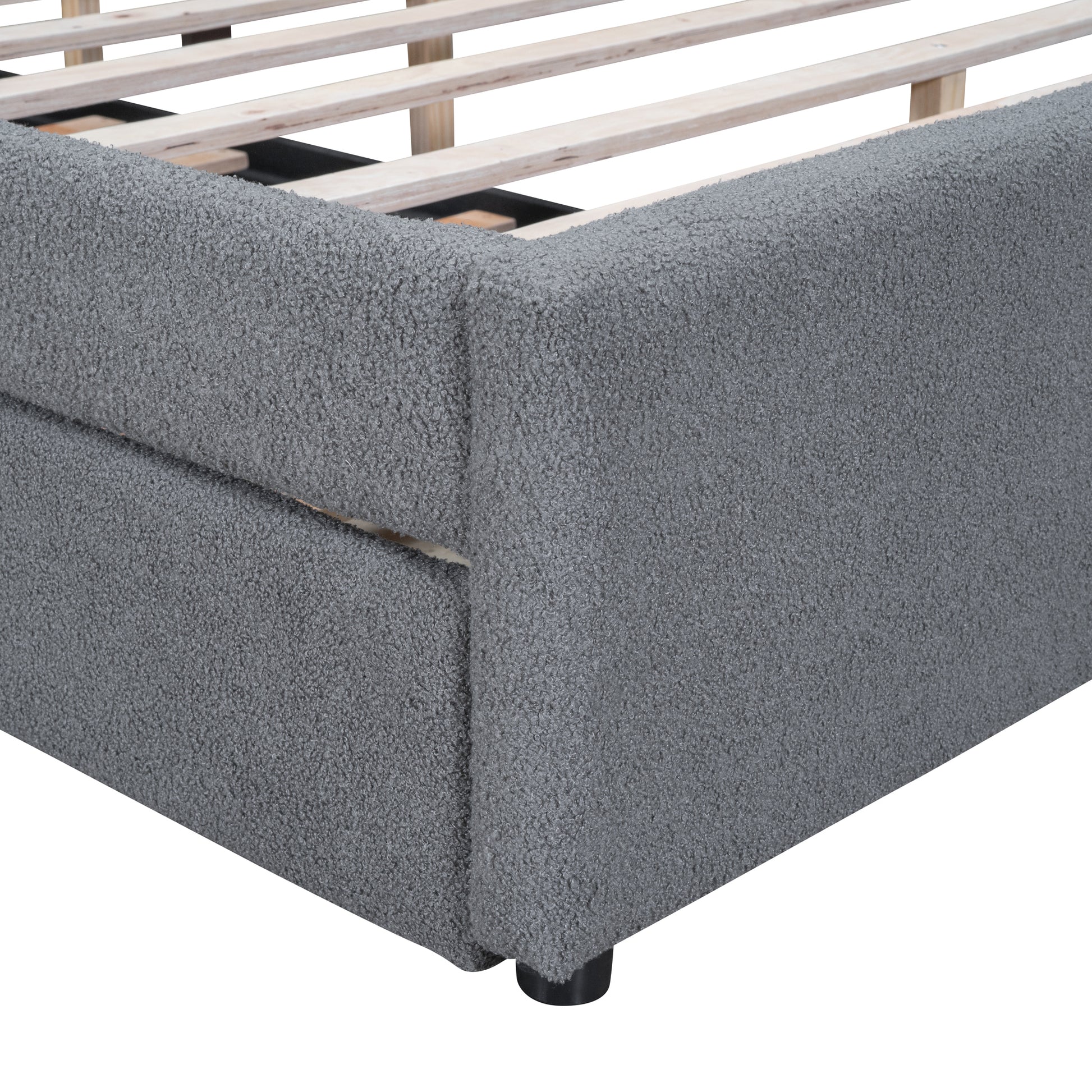 Teddy Fleece Queen Size Upholstered Platform Bed with Trundle, Gray