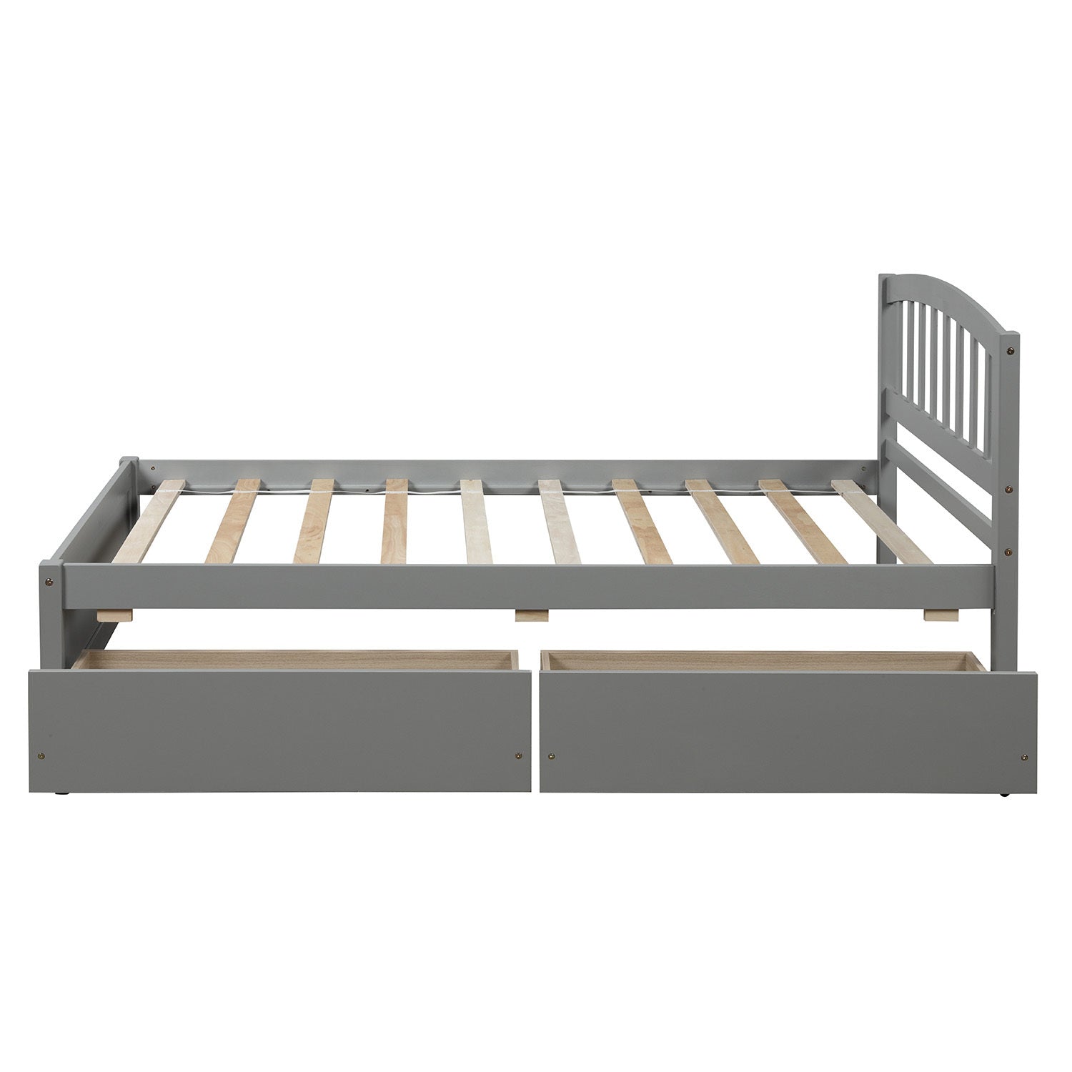 Twin Platform Storage Bed Wood Bed Frame with Two Drawers and Headboard, Gray