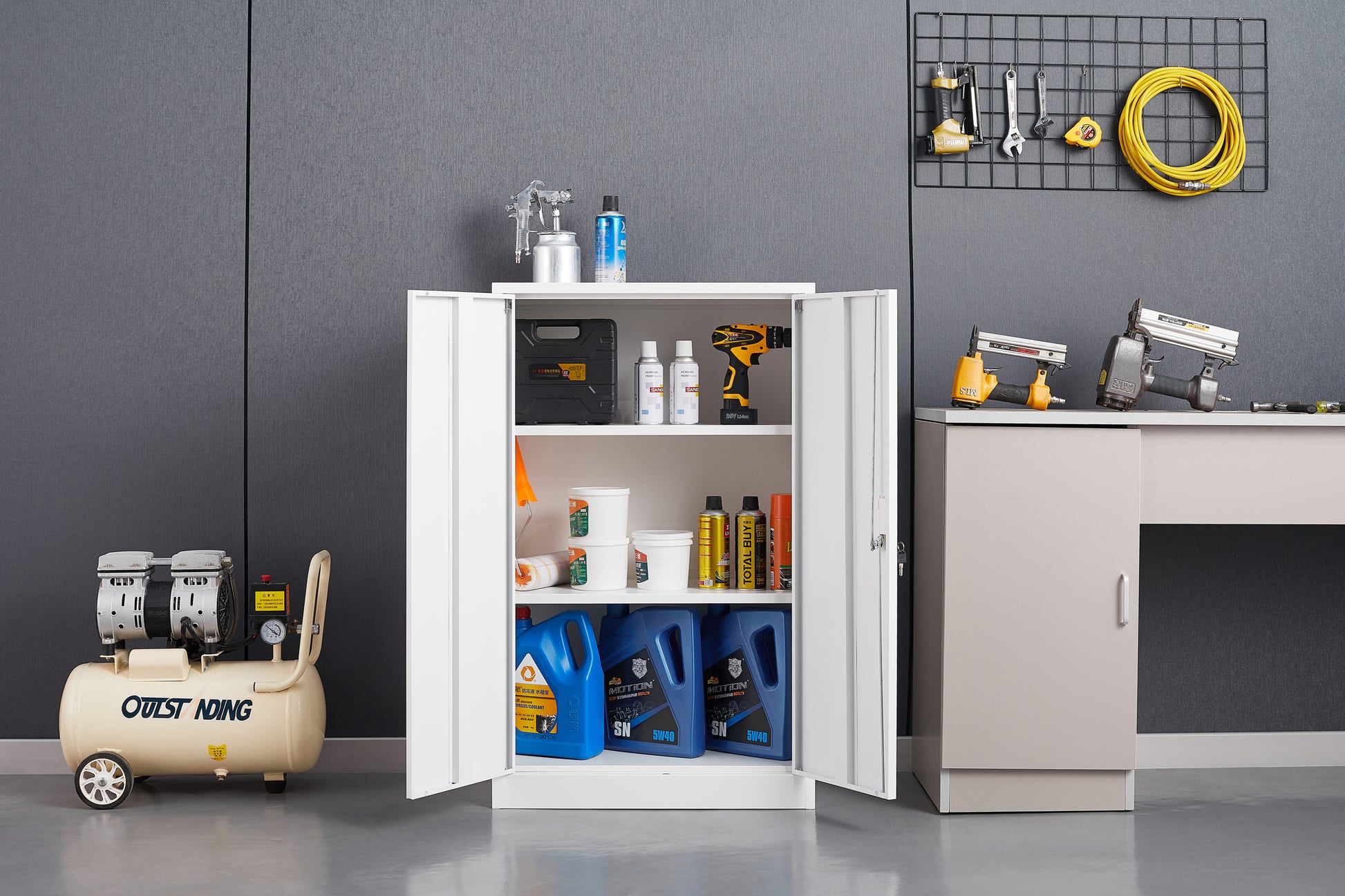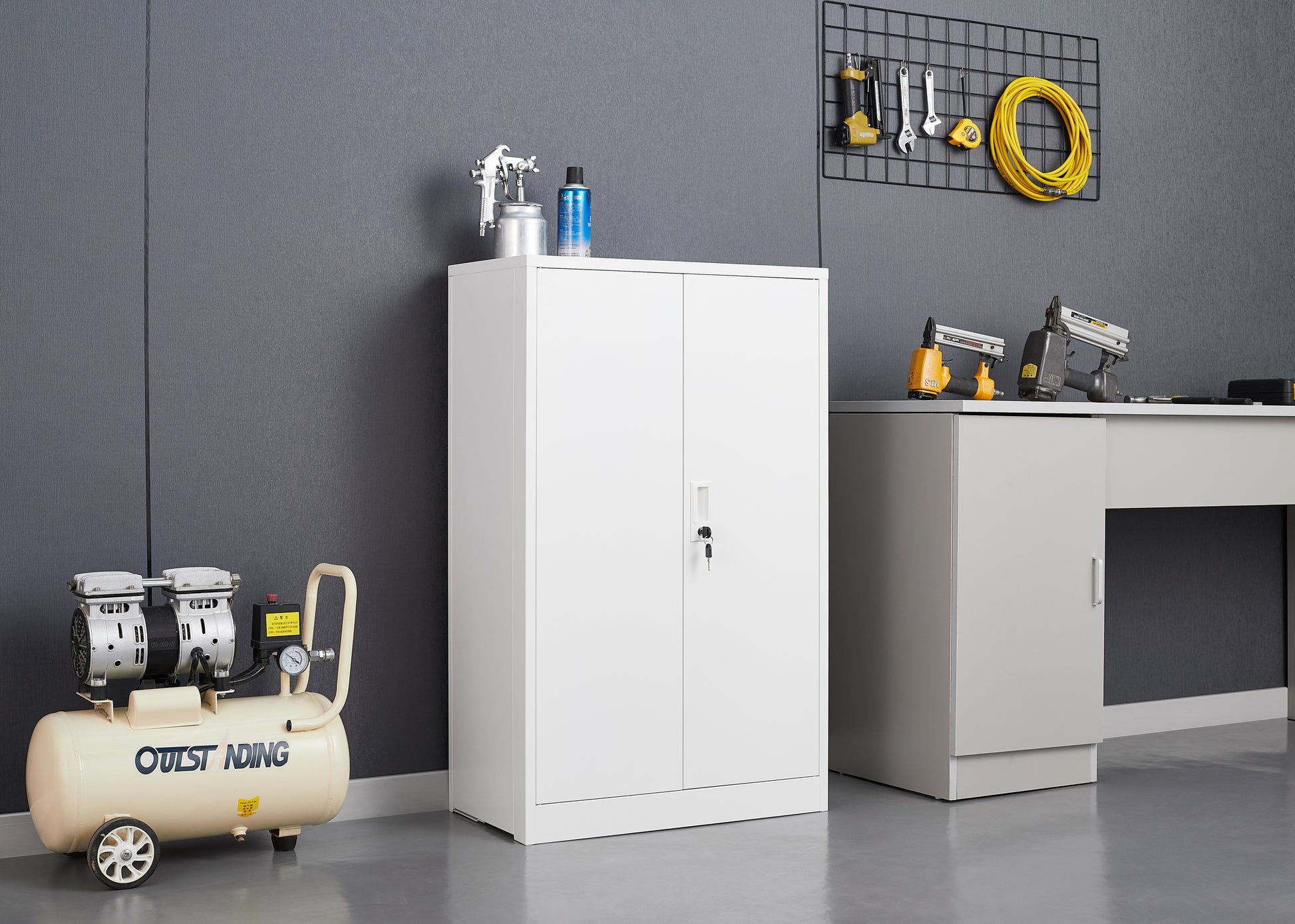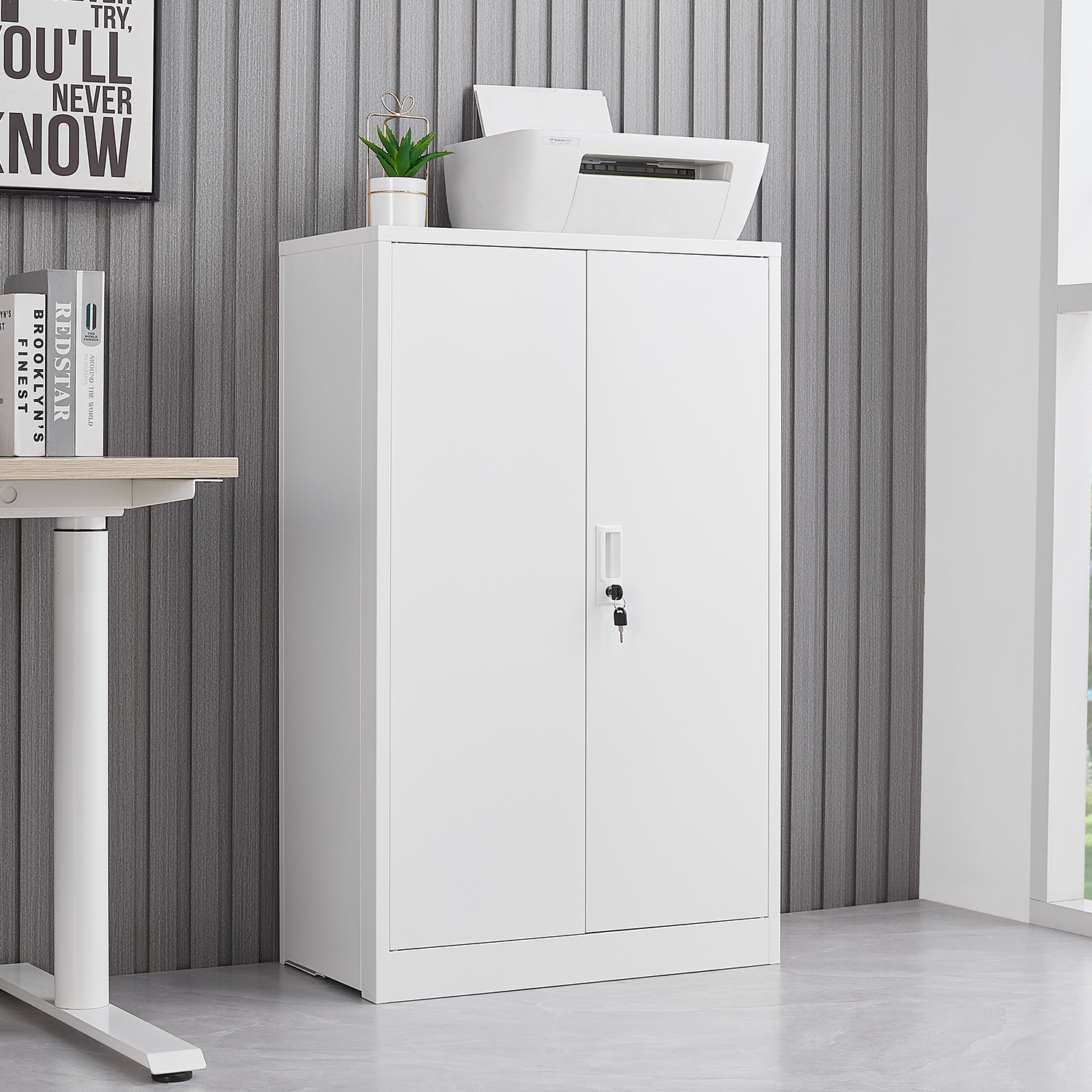 Metal Storage Cabinet with Locking Doors and Adjustable Shelf, Folding Filing Storage Cabinet , Folding Storage Locker Cabinet for Home Office,School,Garage, White