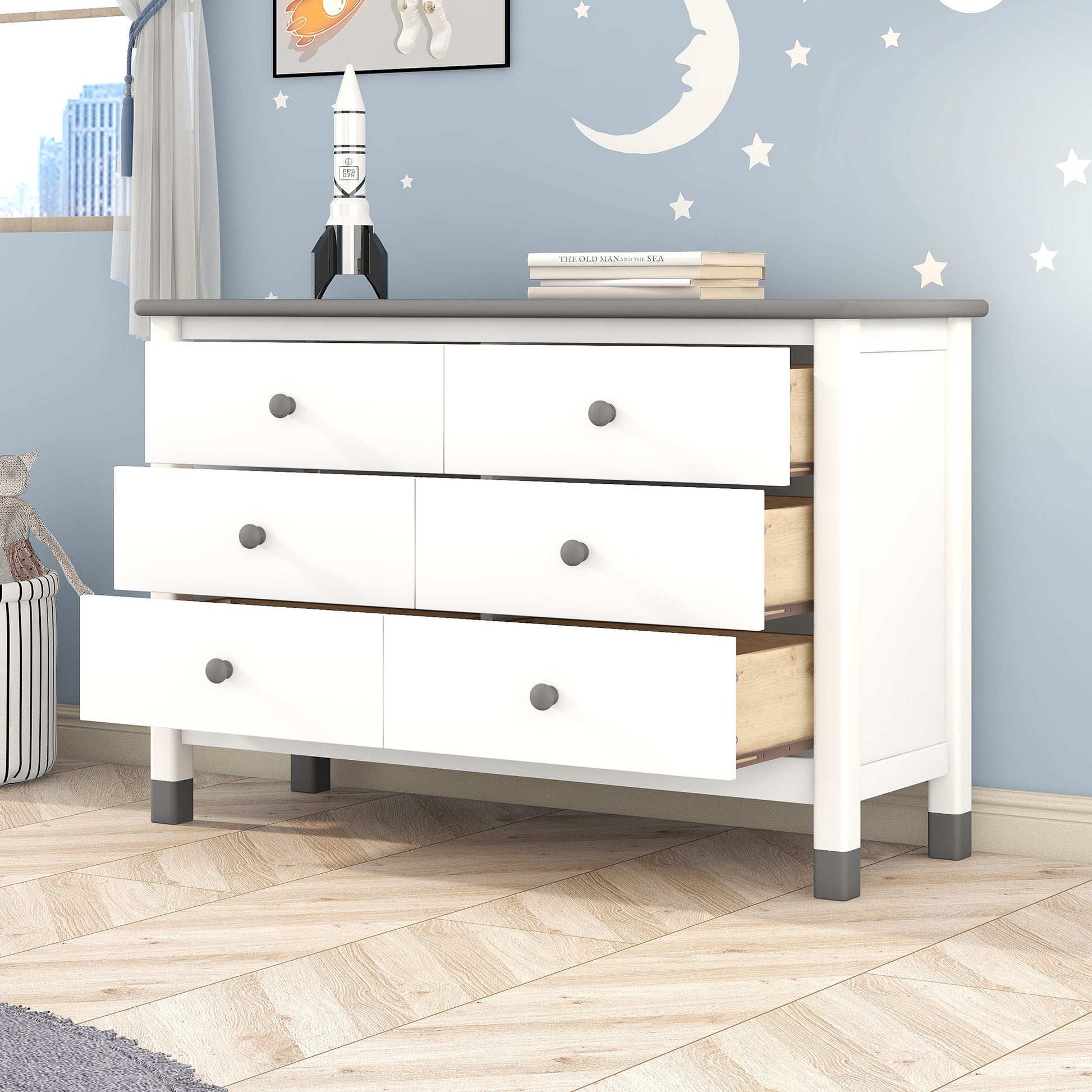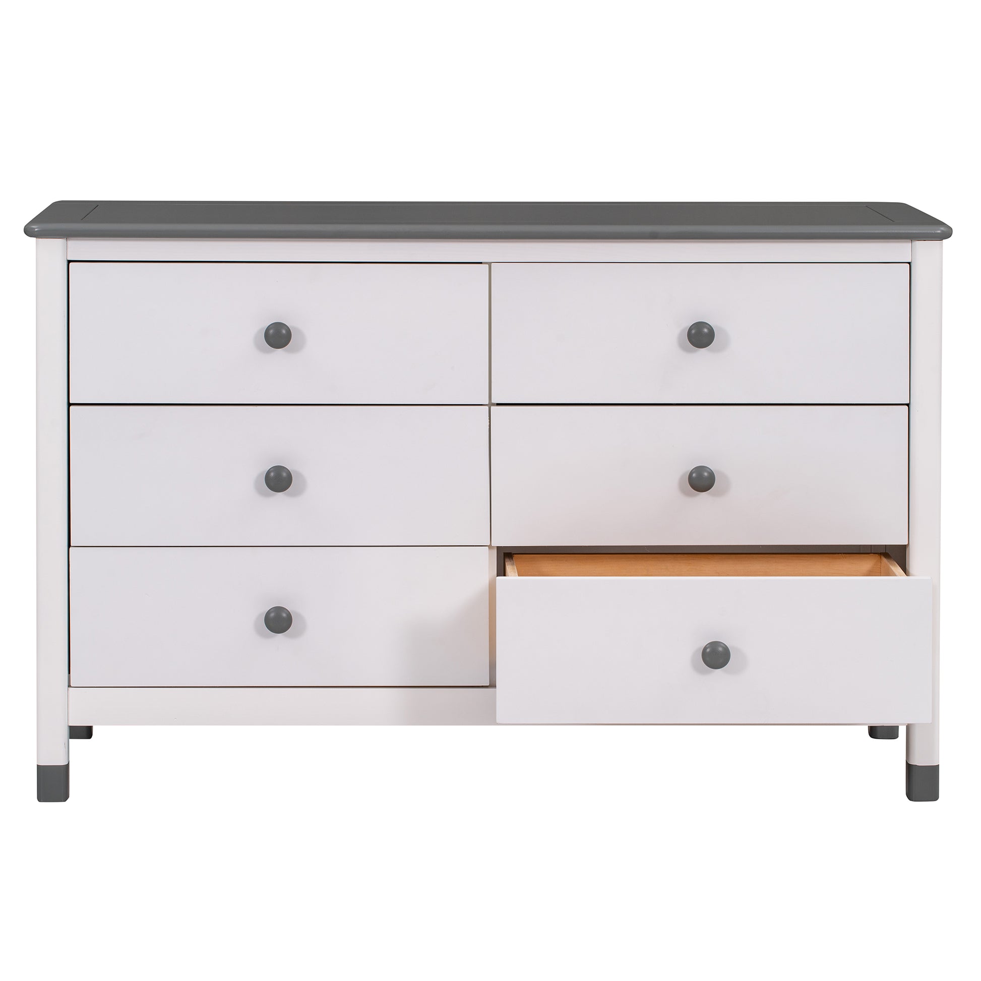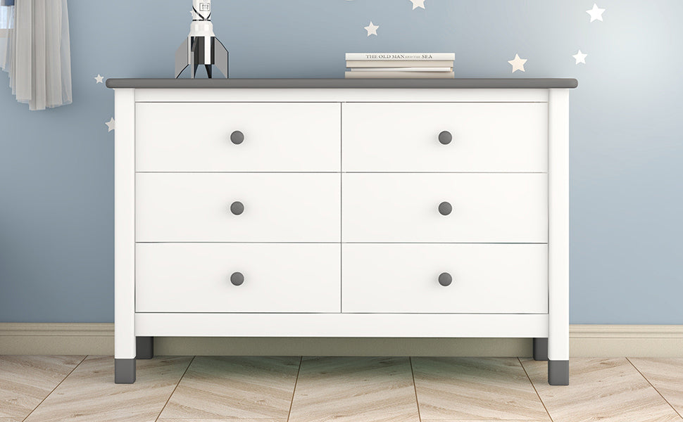 Wooden Storage Dresser with 6 Drawers,Storage Cabinet for kids Bedroom,White+Gray