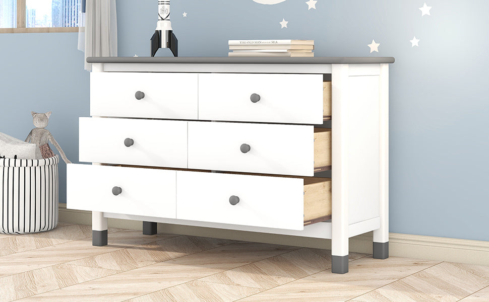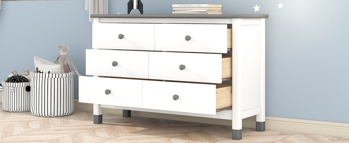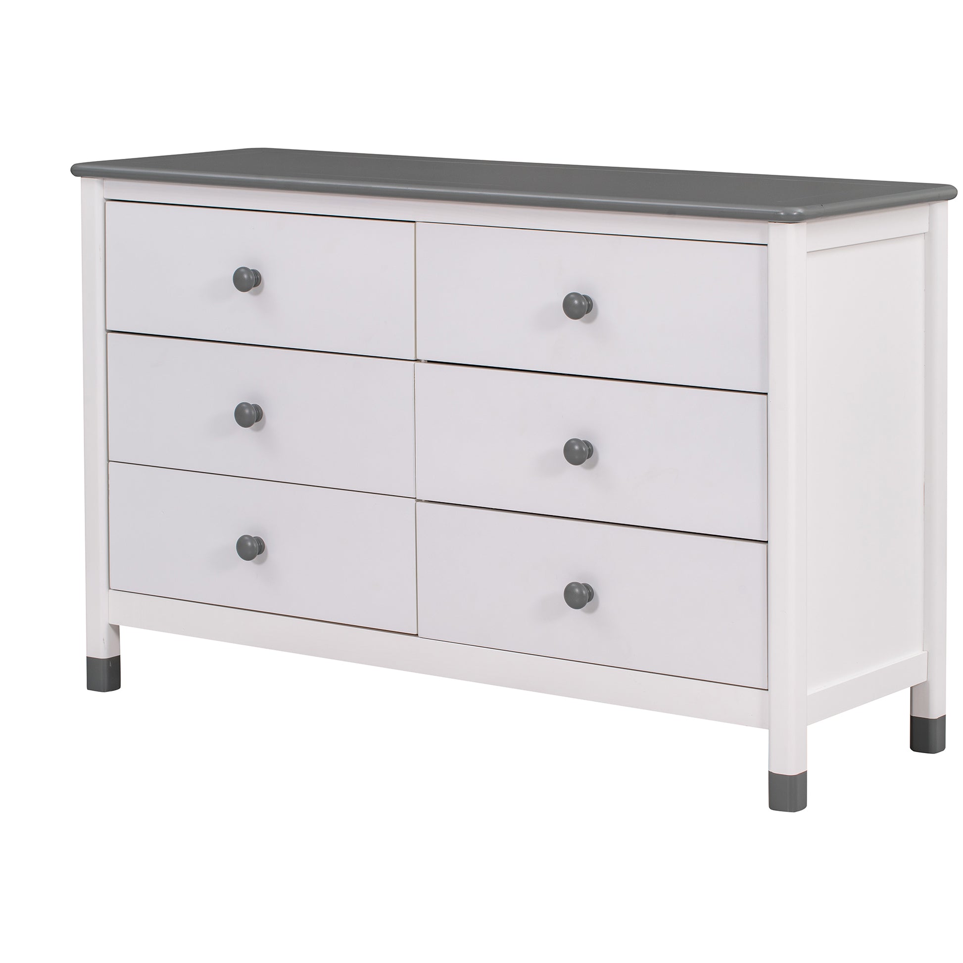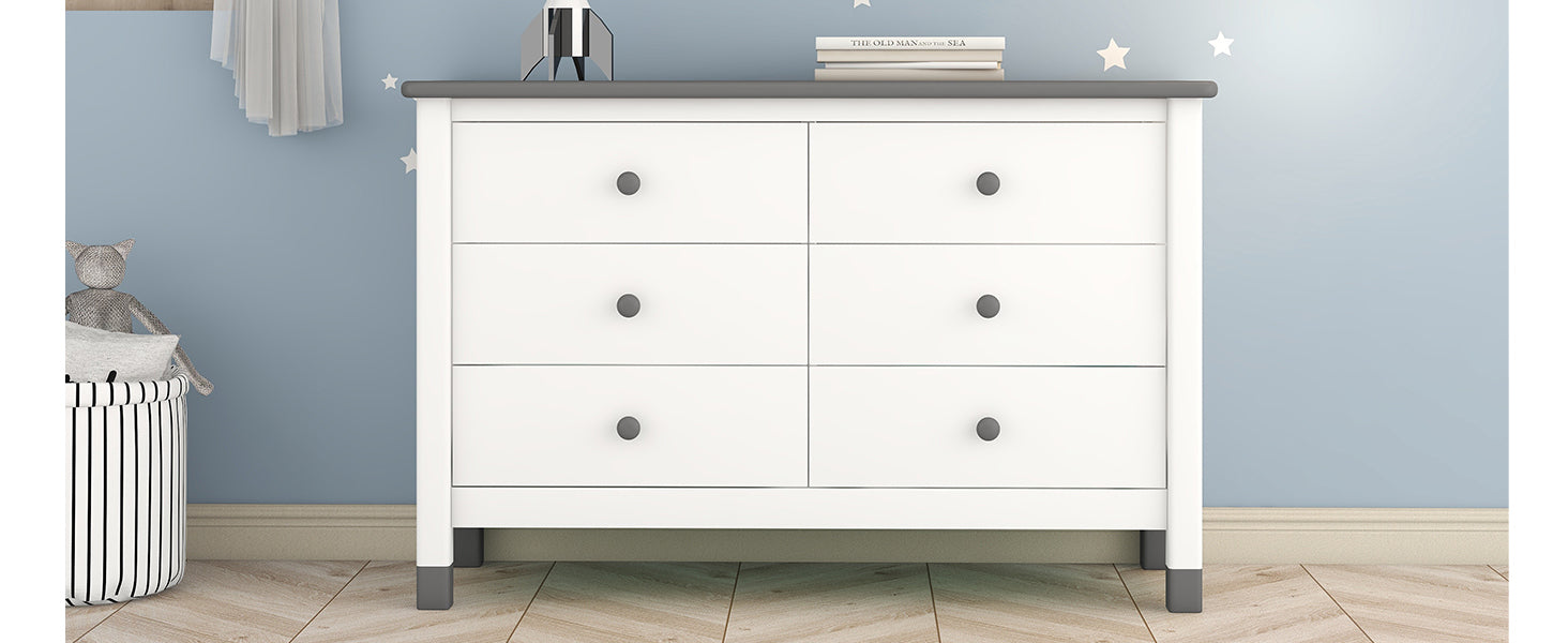 Wooden Storage Dresser with 6 Drawers,Storage Cabinet for kids Bedroom,White+Gray