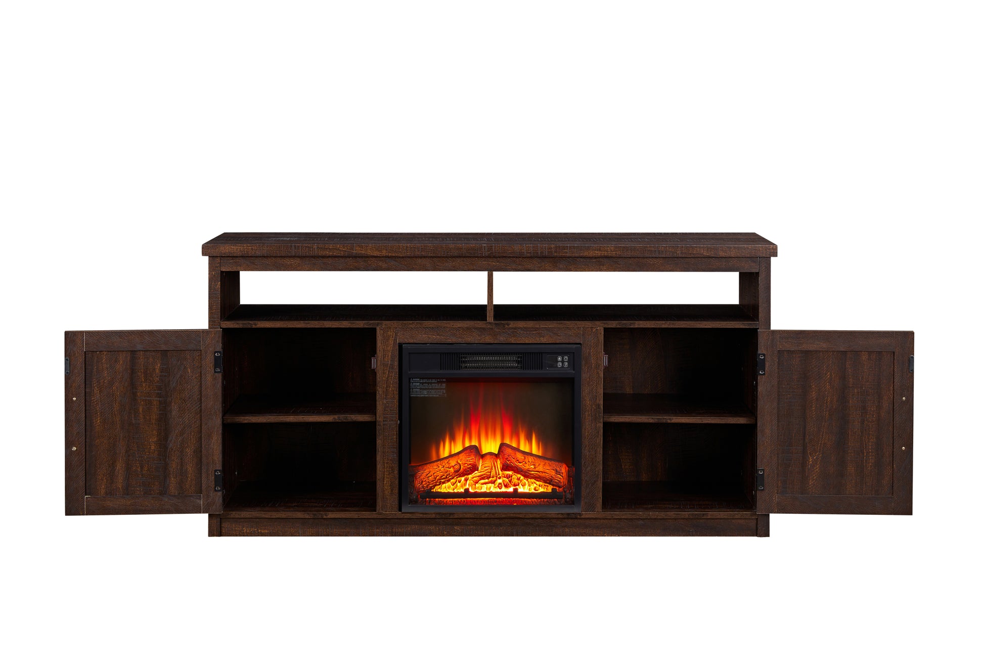 Farmhouse TV Media Stand, Large Barn Inspired Home Entertainment Console, with 18" Fireplace Insert, for TV Up to 65'', with Open Shelves and Closed Cabinets, Espresso 57.87*15.75*30.31