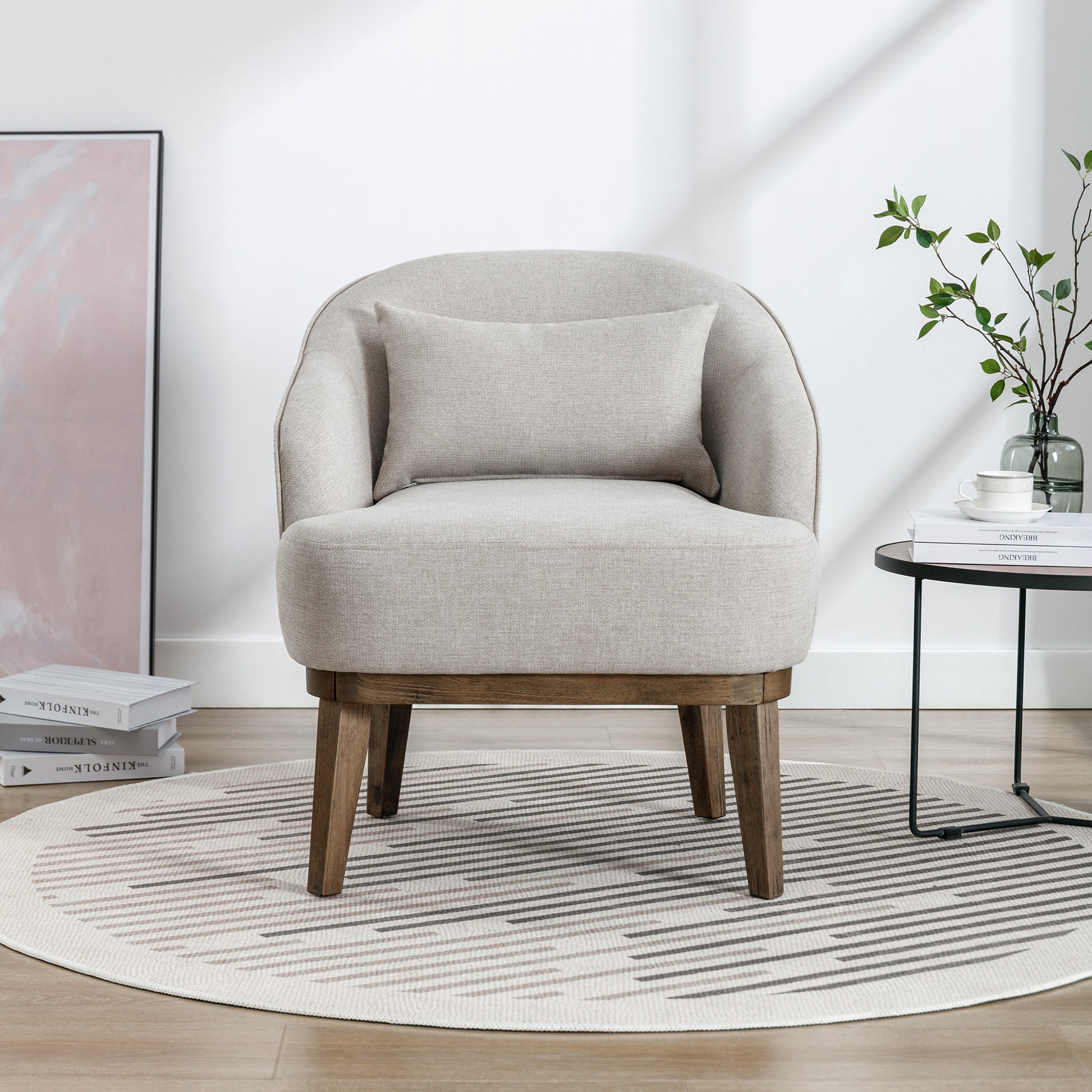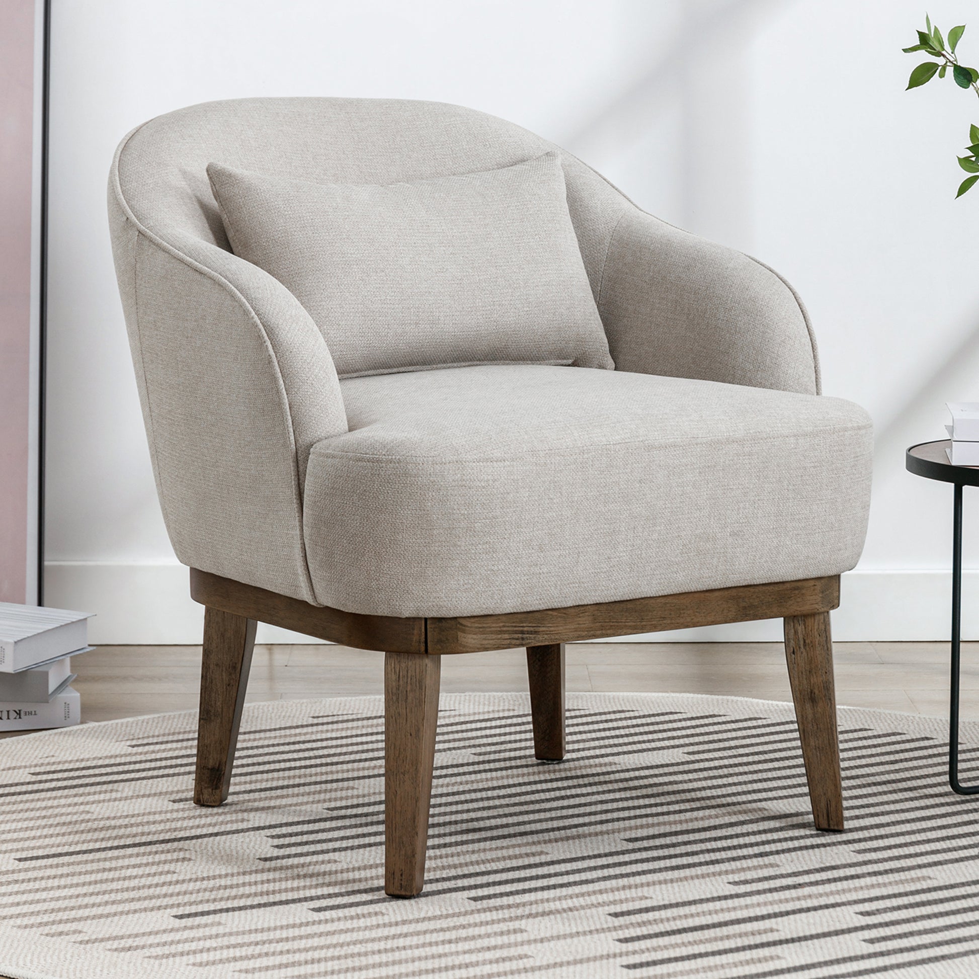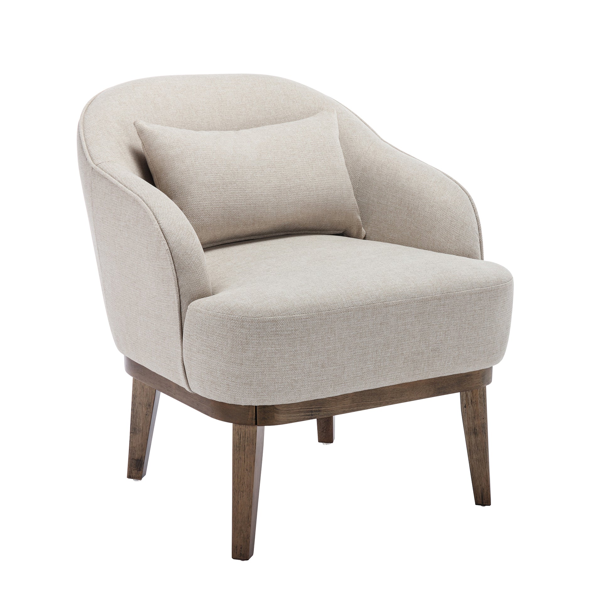 Modern Mid-Century Armchair Accent Chair with Pillow and Solid Wood leg, Beige