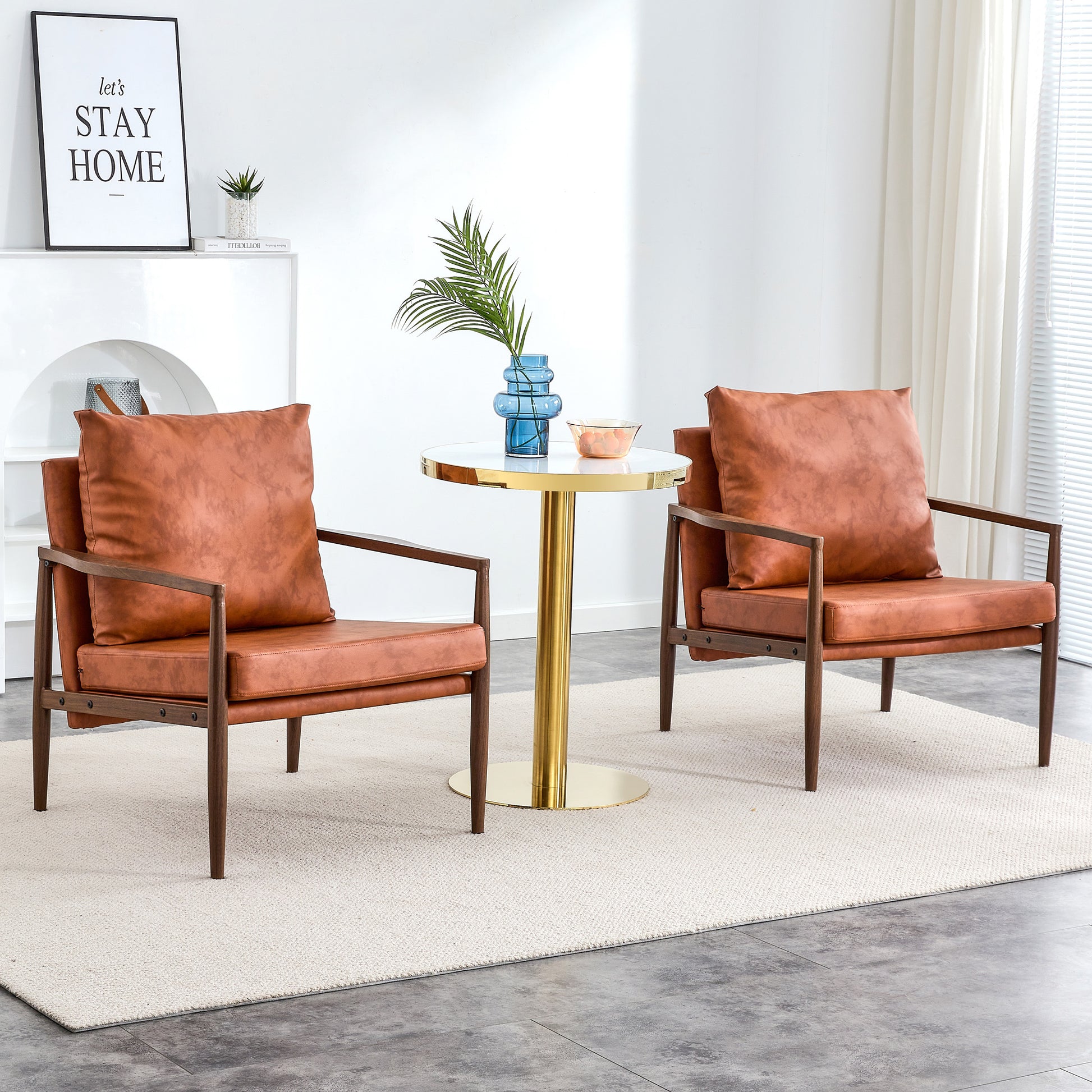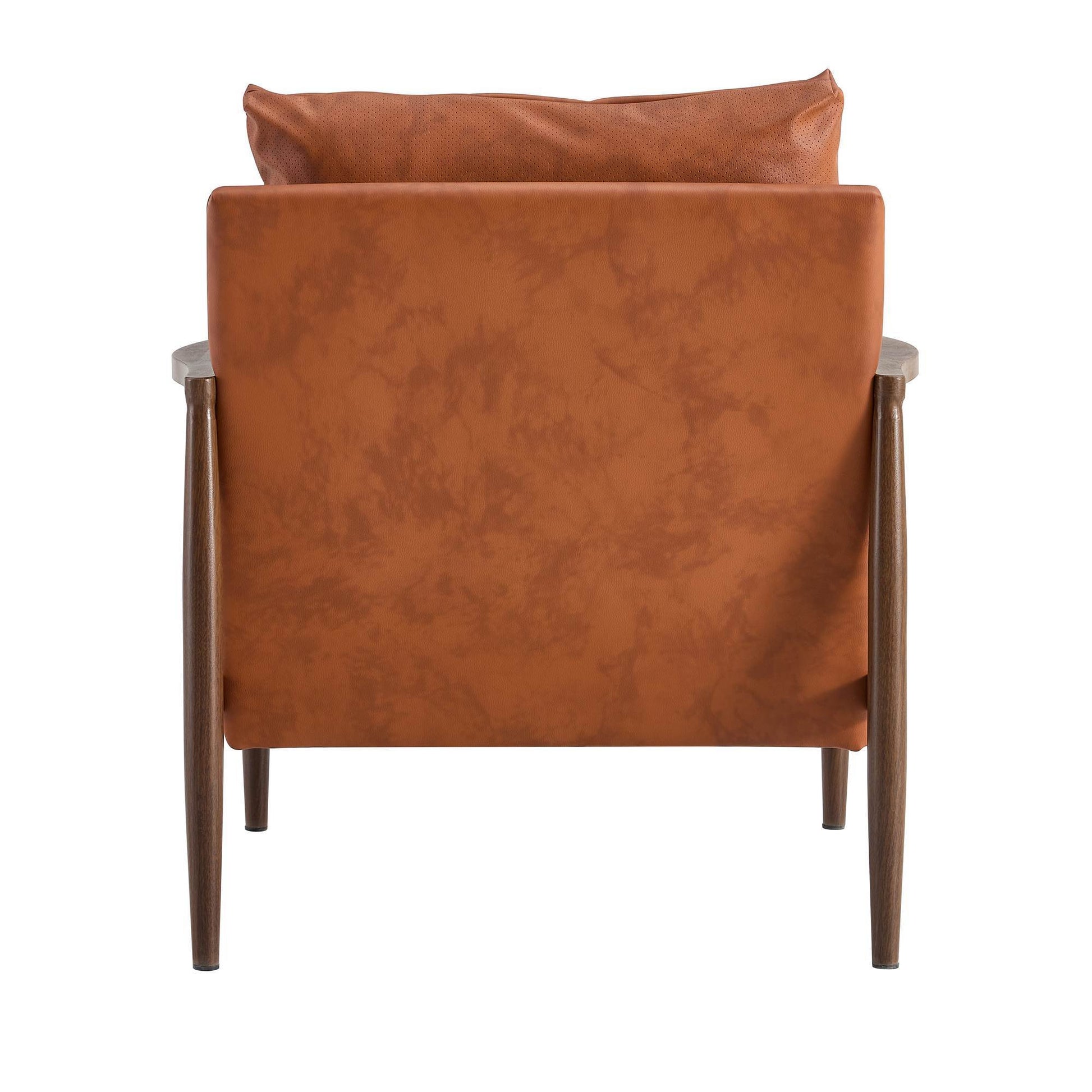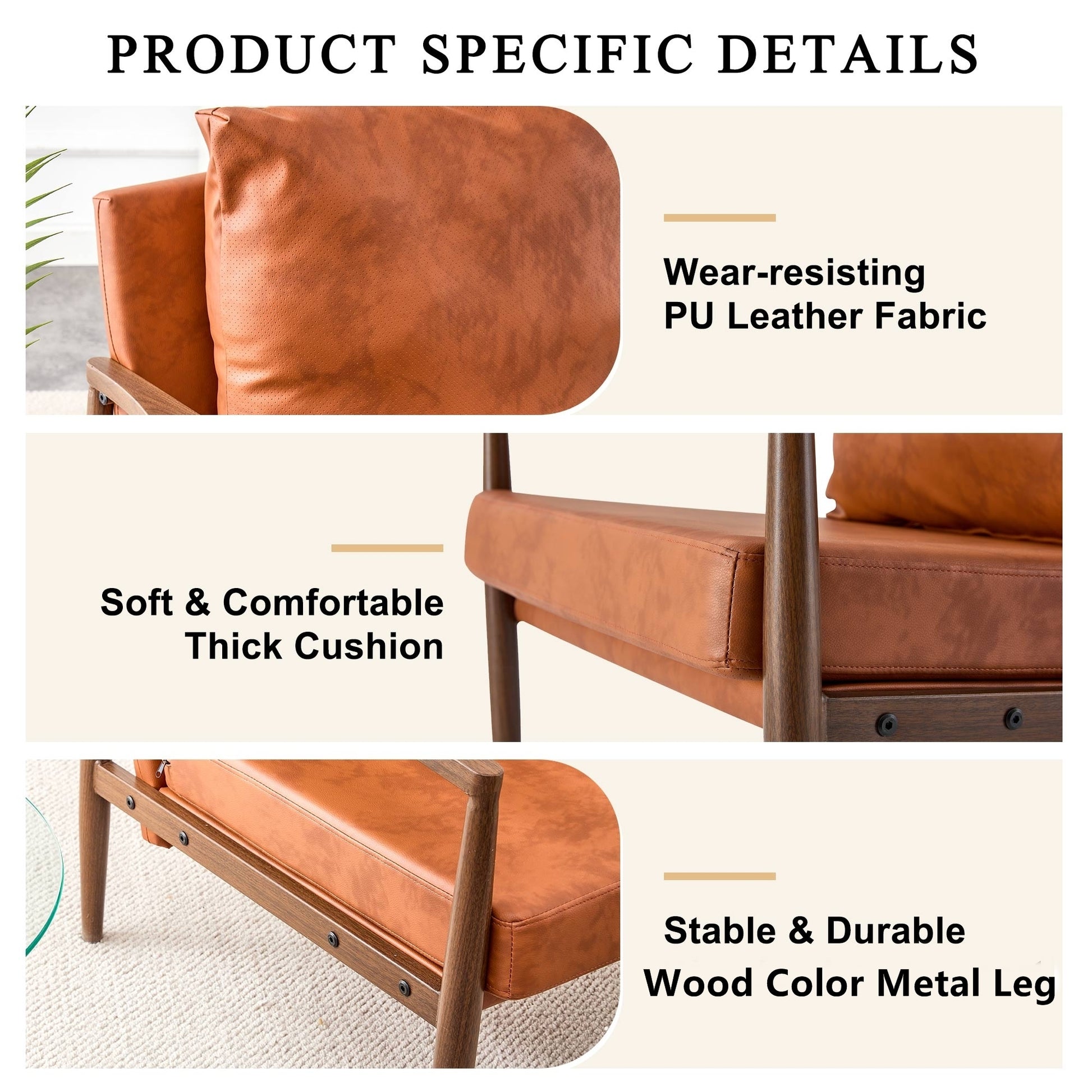 PU Leather Accent Arm Chair Mid Century Modern Upholstered Armchair with Imitation solid wood Walnut color Metal Frame Extra-Thick Padded Backrest and Seat Cushion Sofa Chairs for Living Room SF-010