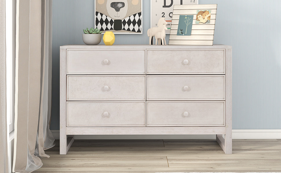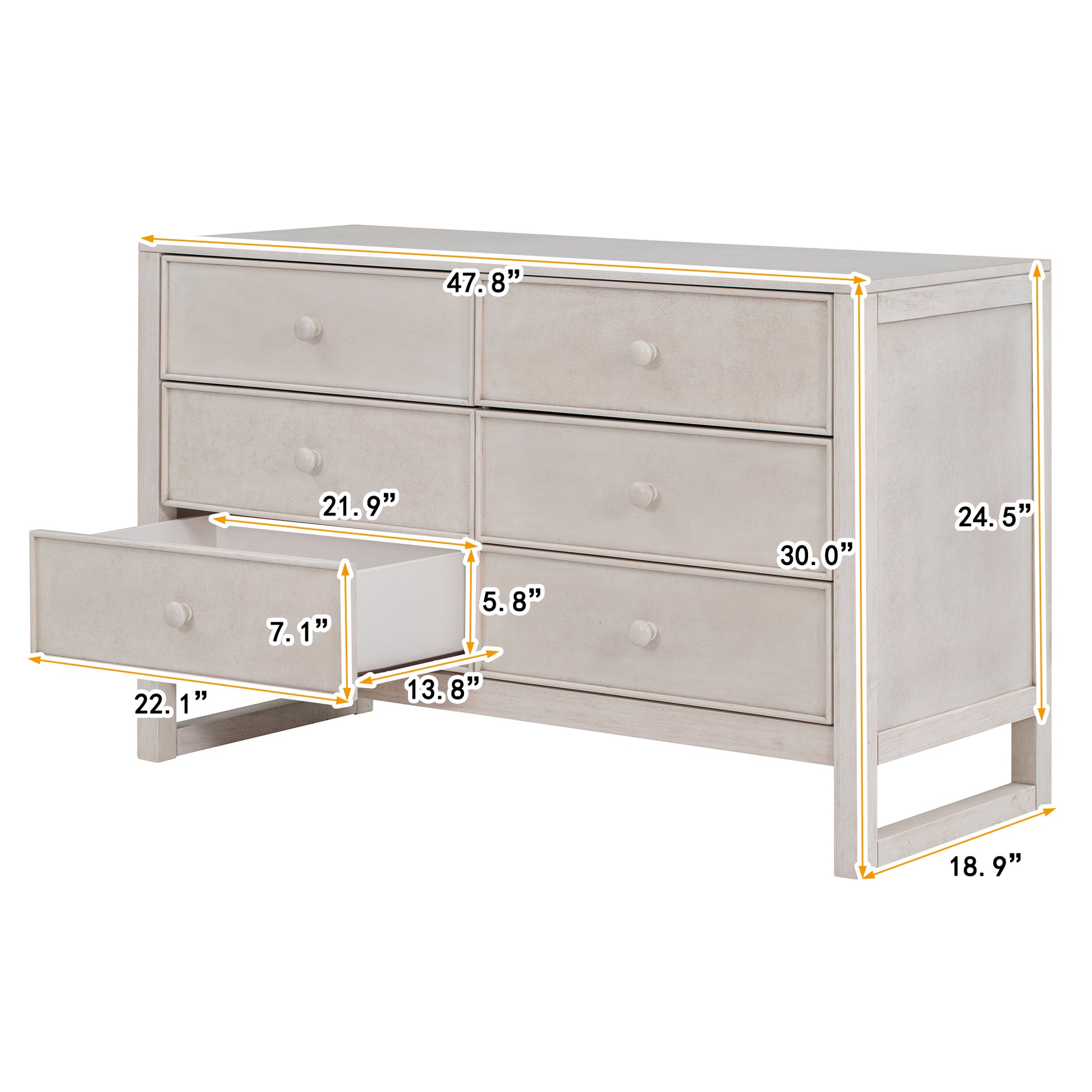 Rustic Wooden Dresser with 6 Drawers,Storage Cabinet for Bedroom,Anitque White