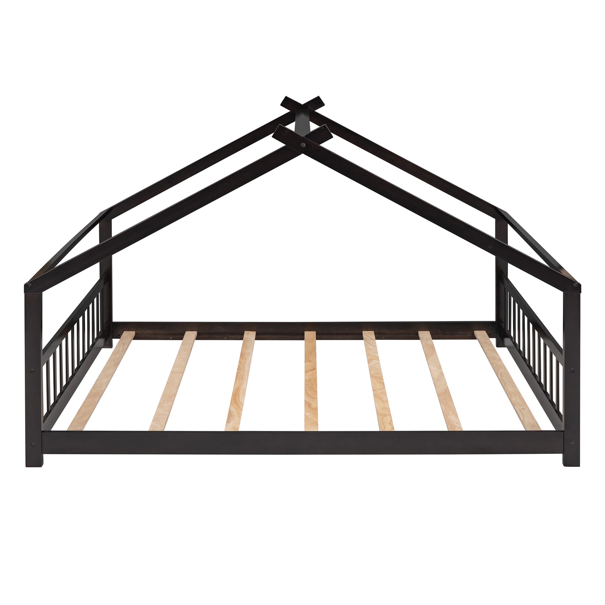 Full Size House Bed Wood Bed, Espresso