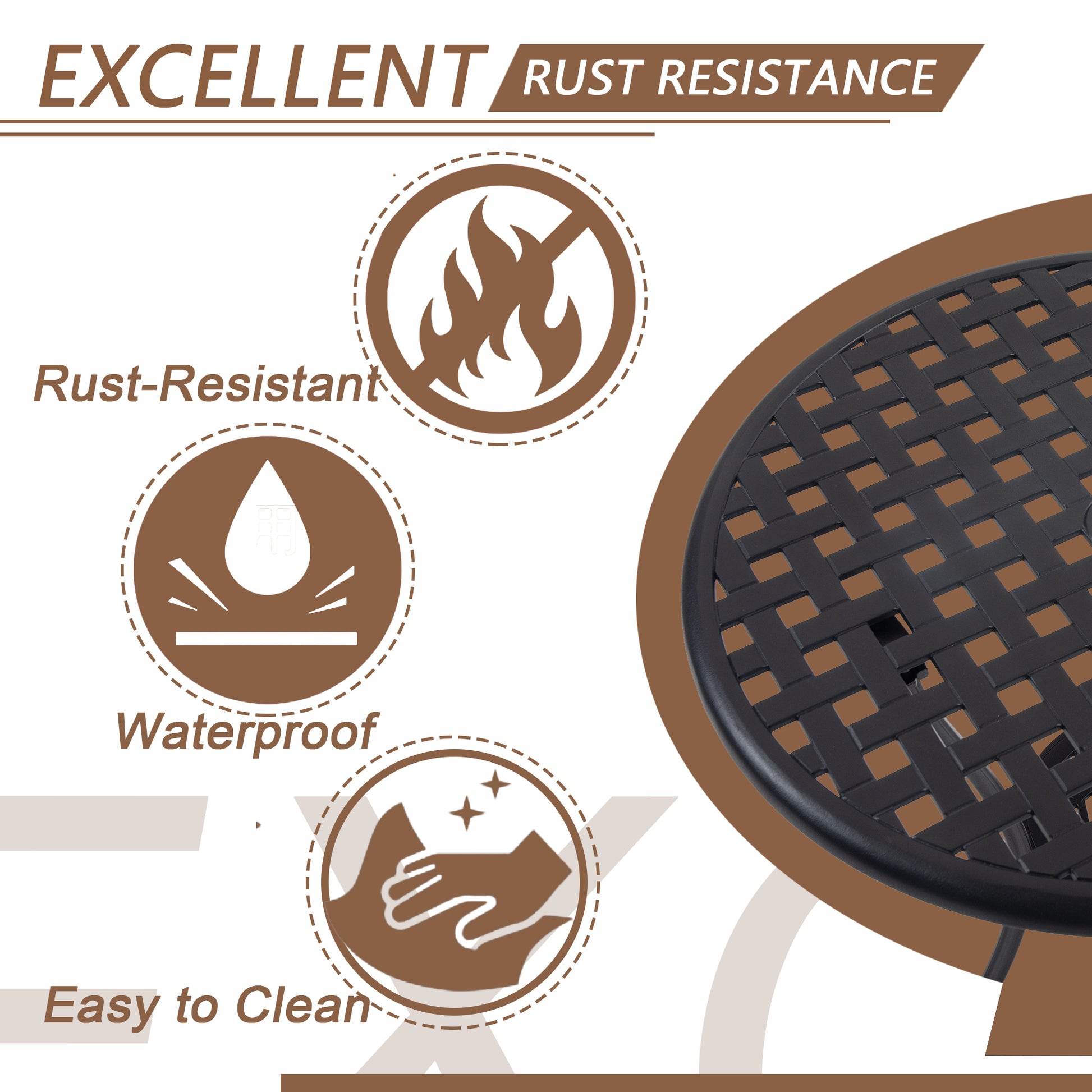 3 Piece Bistro Table Set Cast Aluminum Outdoor Patio Furniture with Umbrella Hole Patio Balcony, Black