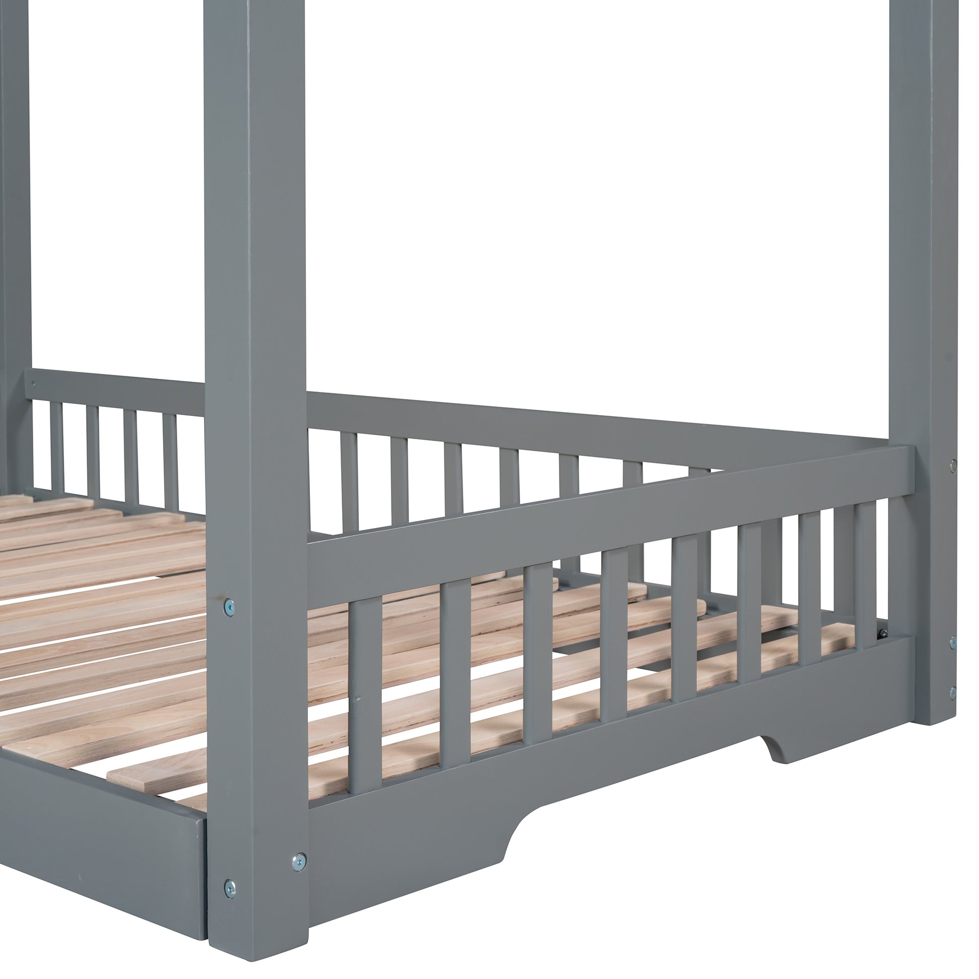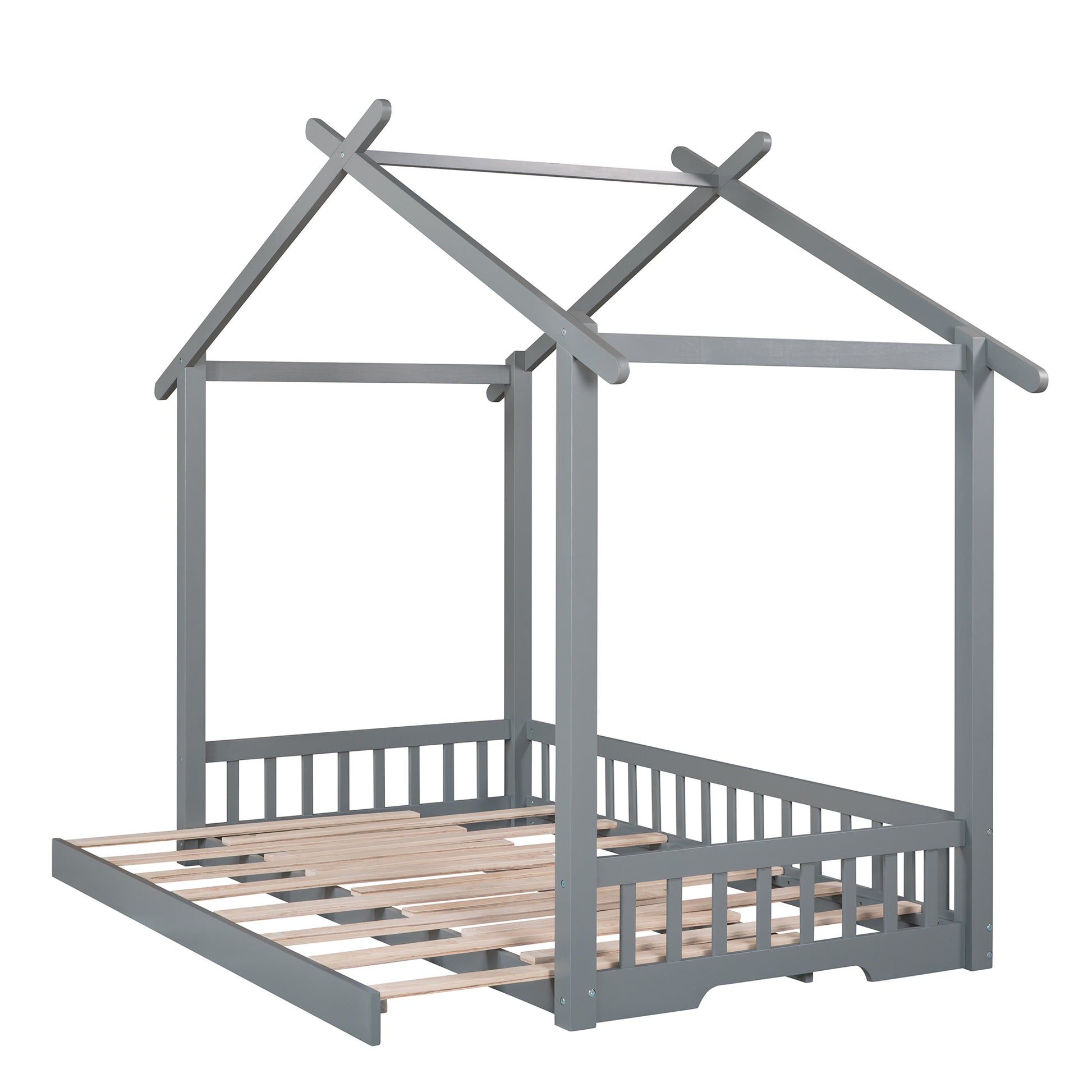 If you need extra sleeping space or your kids love sleepovers, this extending daybed is perfect for your home. Coming with fence-shaped guardrail around the bed, this bed brings rich rural life style to bedroom, not only offers great fun for your bedtime but also adds highlights to bedroom. Slat kit included so box springs are not required. This house bed is designed with a clean silhouette and a hue of elegance. It suits all styles of home decoration, and completes the look of any bedroom.