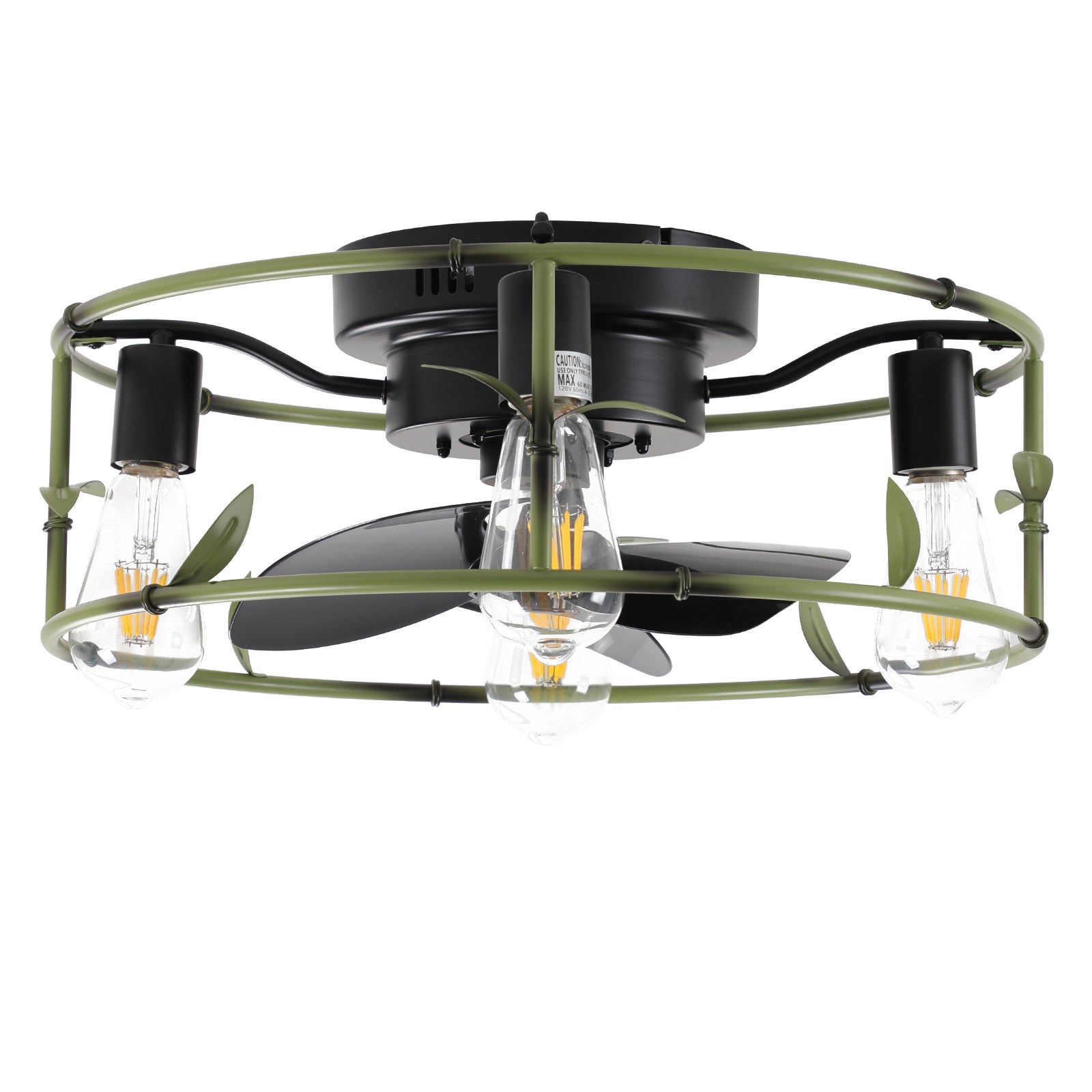 Flush Mount Ceiling Fans with Lights and Remote Control green Caged Low Profile Ceiling Fan