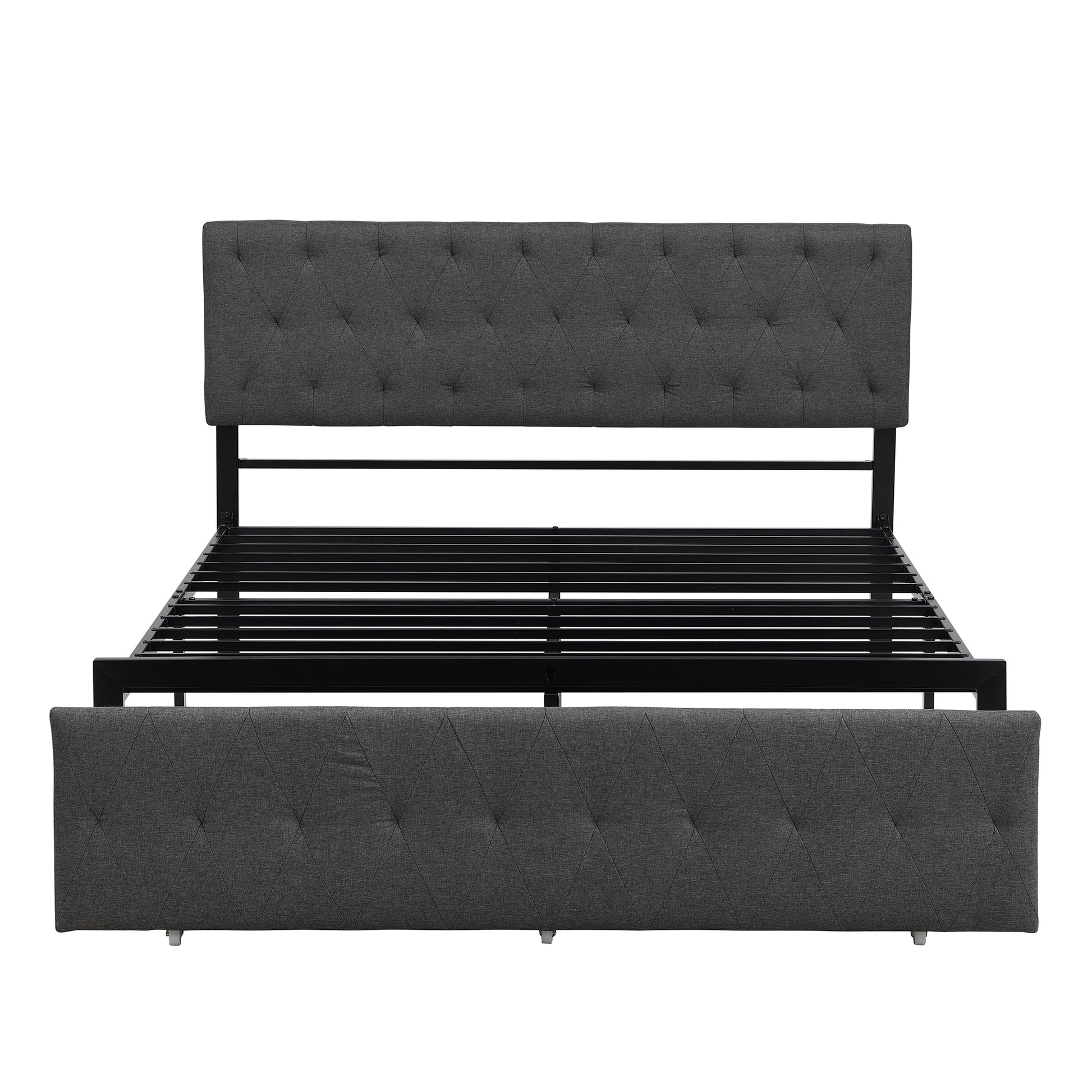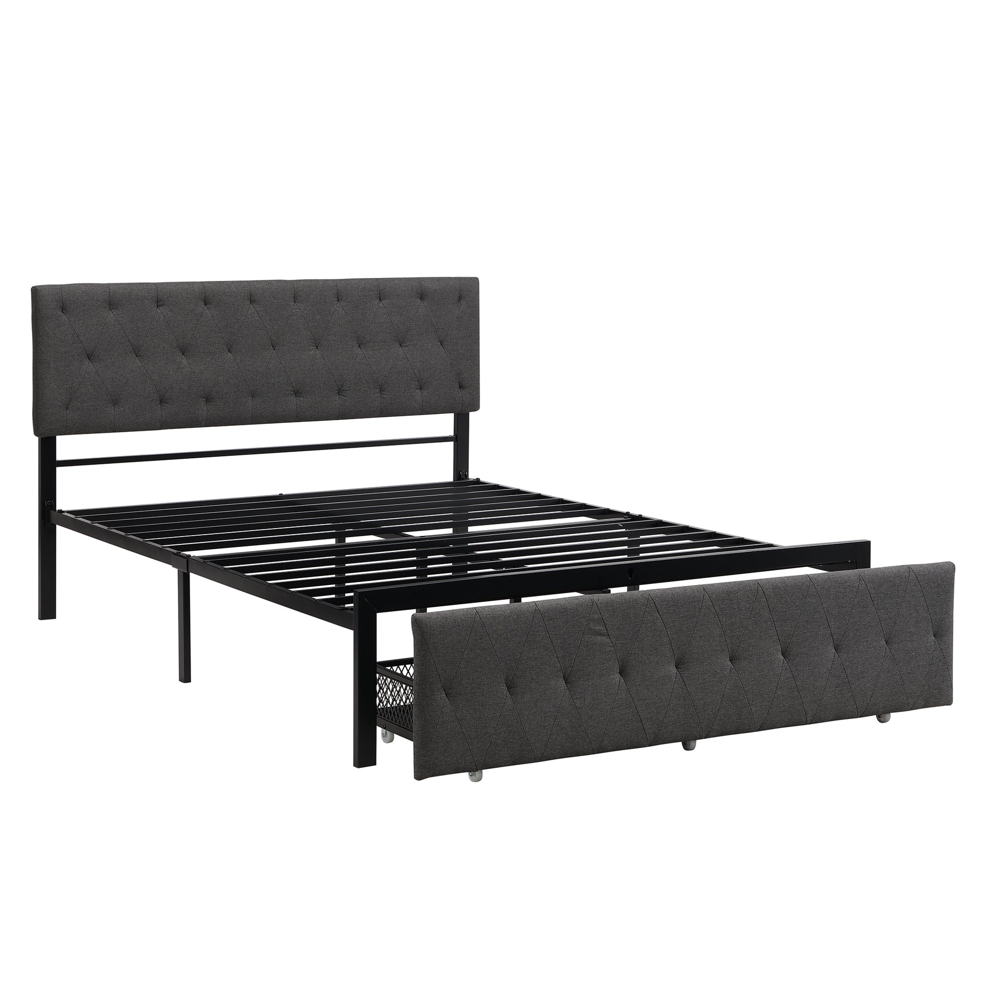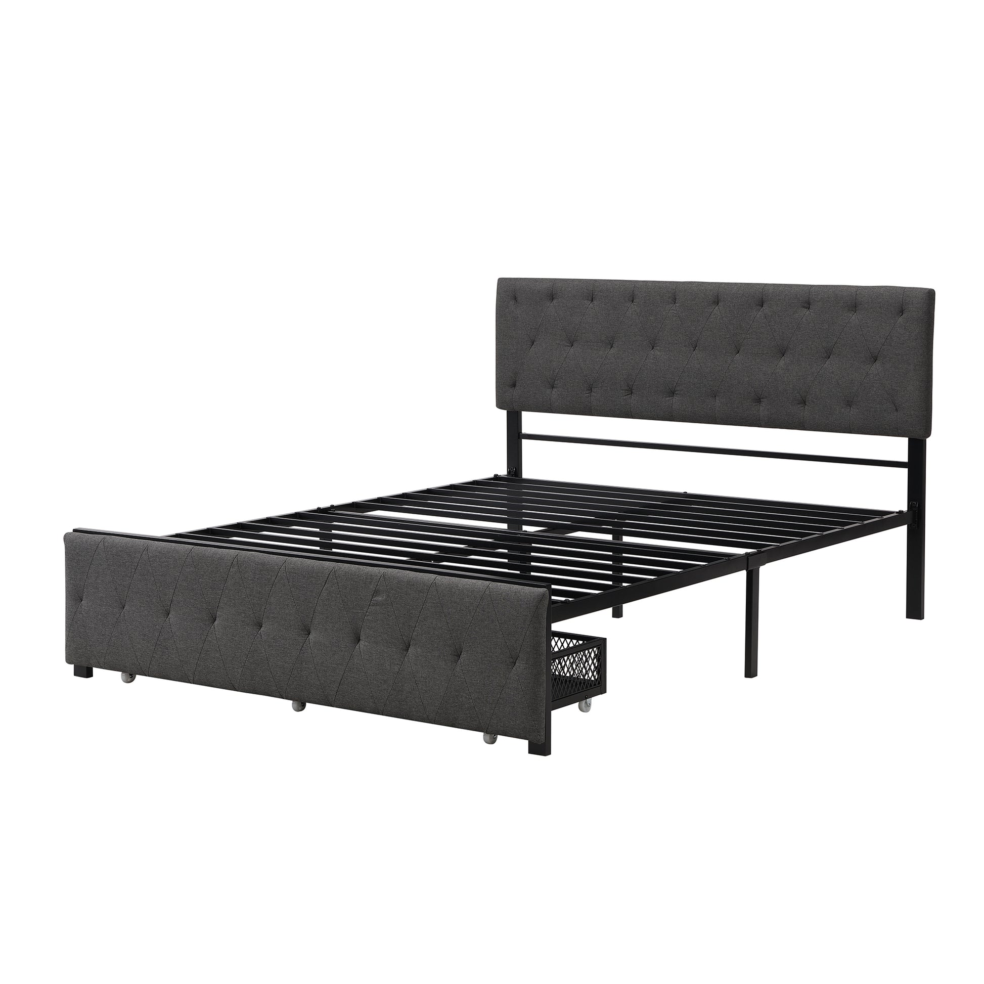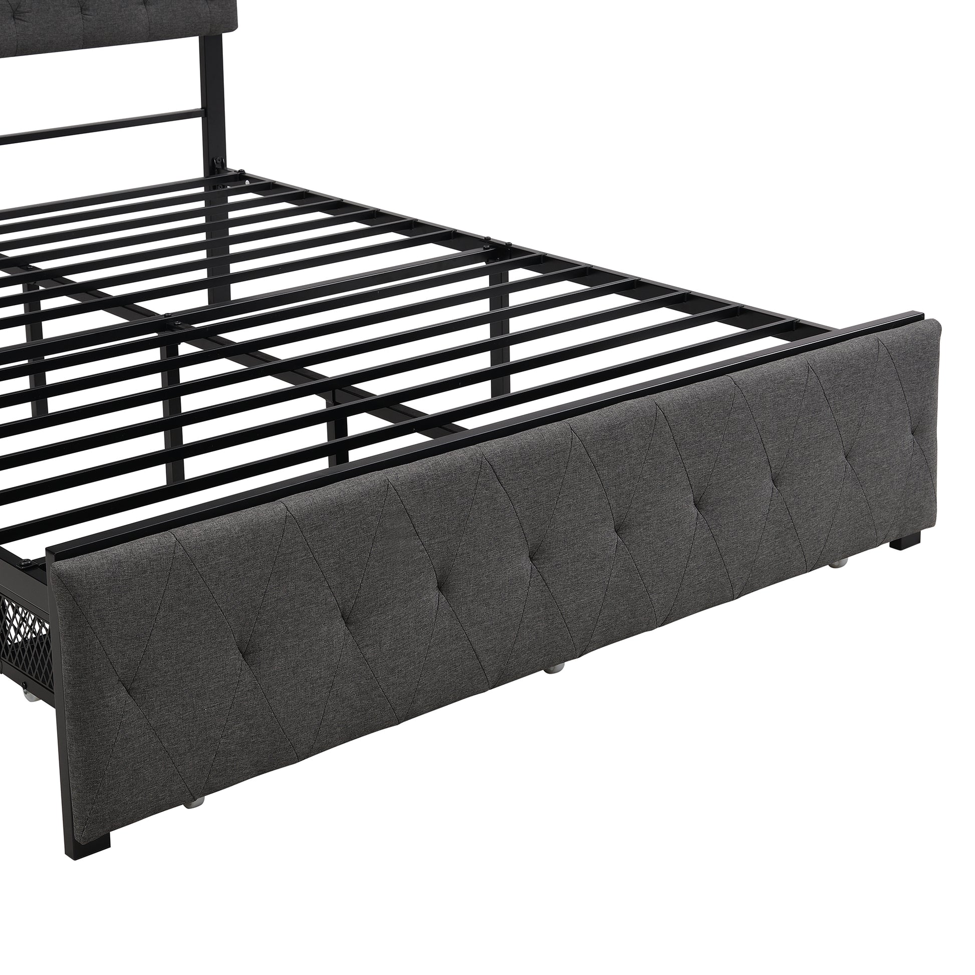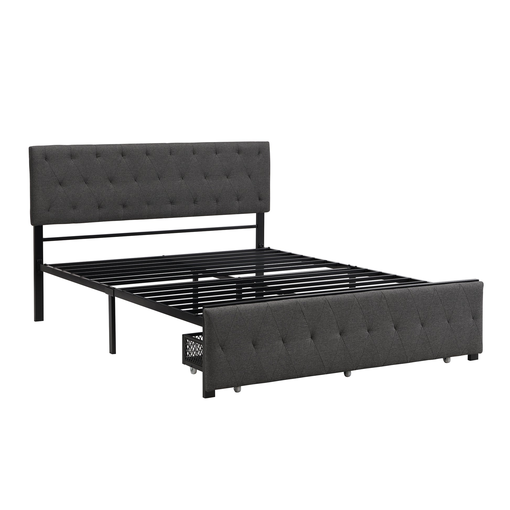 Queen Size Storage Bed Metal Platform Bed with a Big Drawer - Gray
