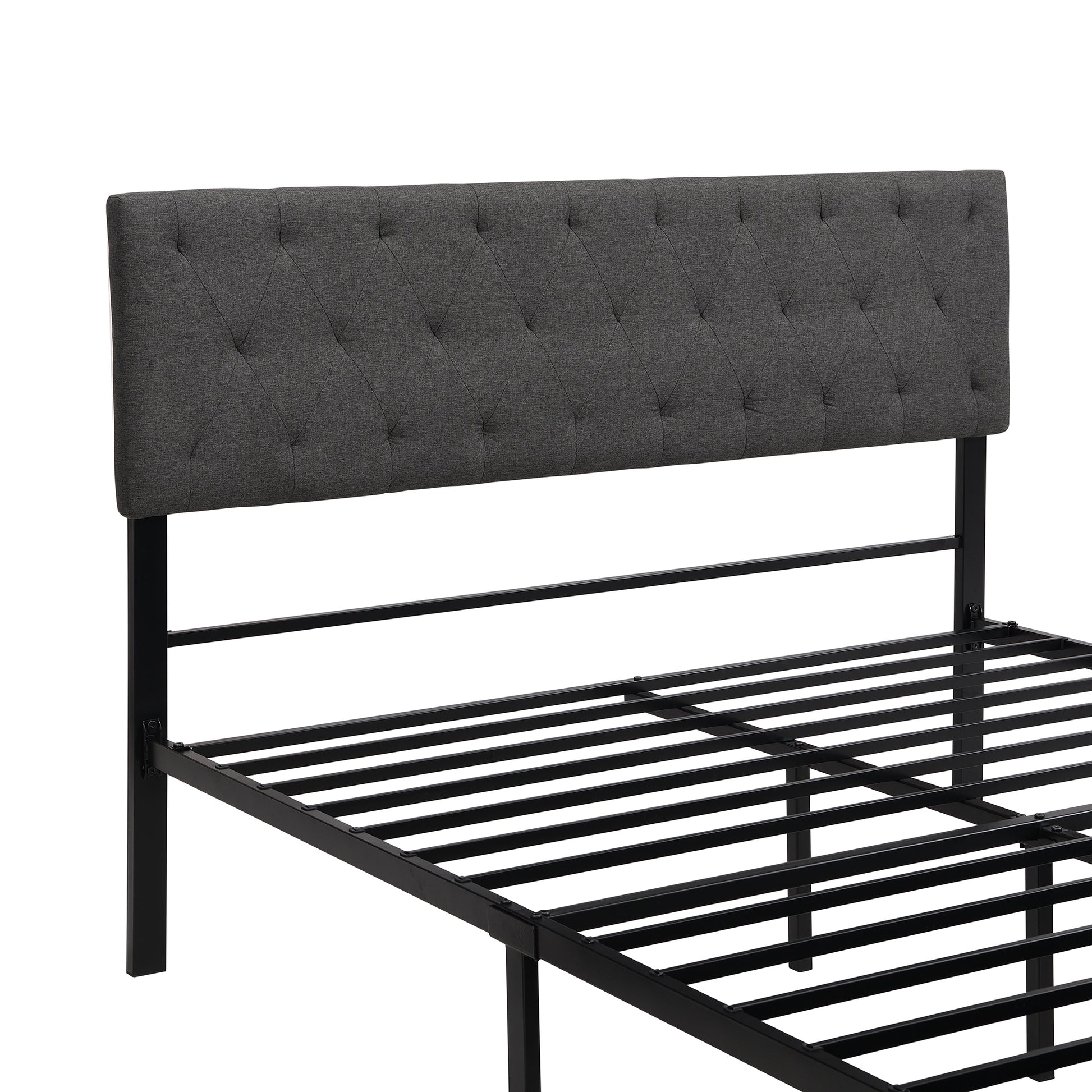 - [No Box Spring required] With 13 reinforced slats, the mattress (not included) will be well supported and your body weight will be evenly distributed for a great sleeping experience. Enjoy the convenience and unparalleled ease of use that this metal platform bed provides. Headboard is included as a comfy linen fabric backrest that brings you and your partner a cozy feeling.