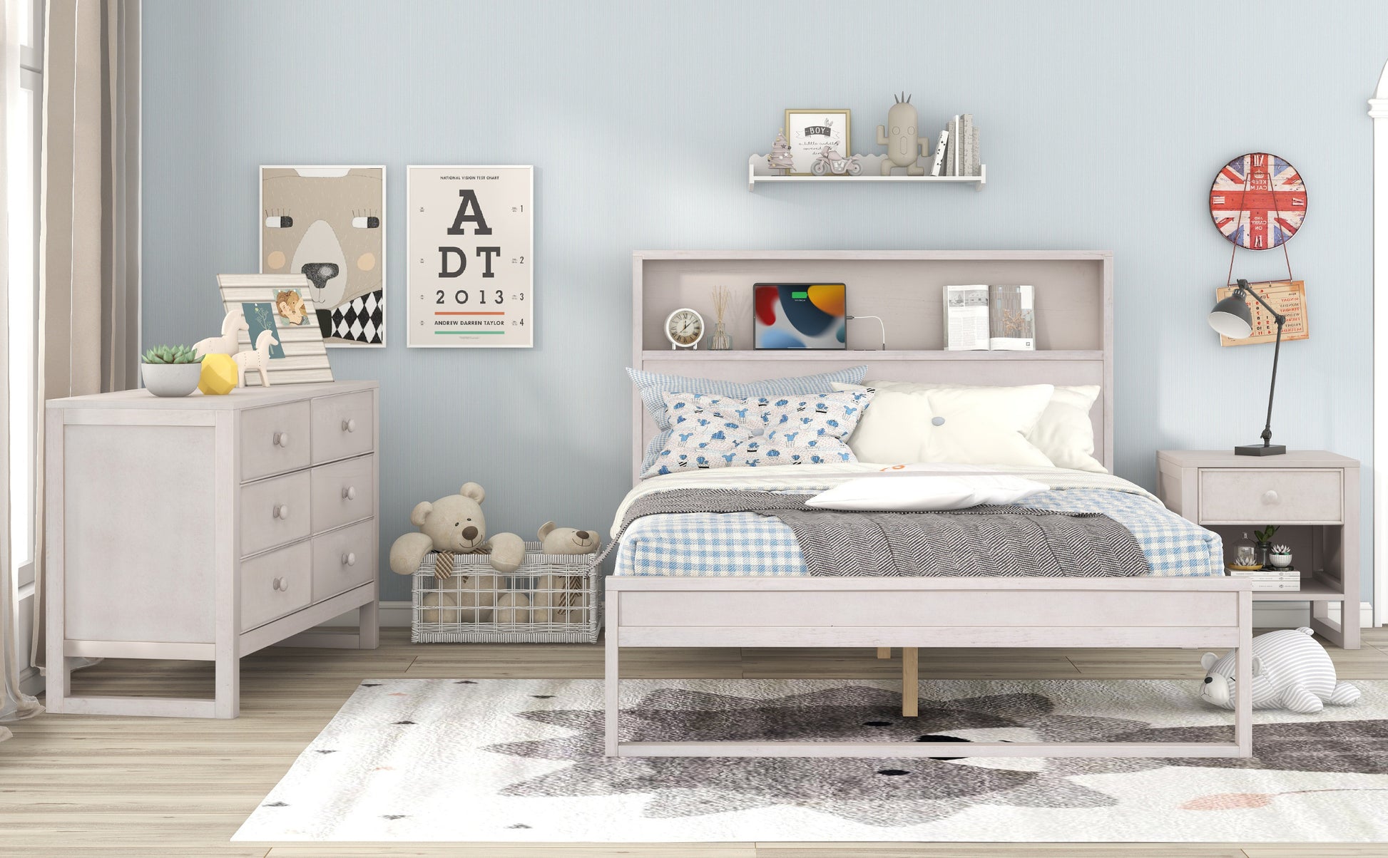 3-Pieces Bedroom Sets Full Size Platform Bed with Nightstand and Dresser,Antique White