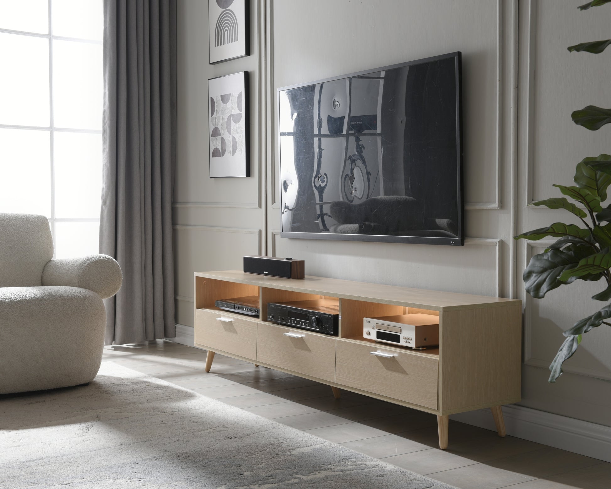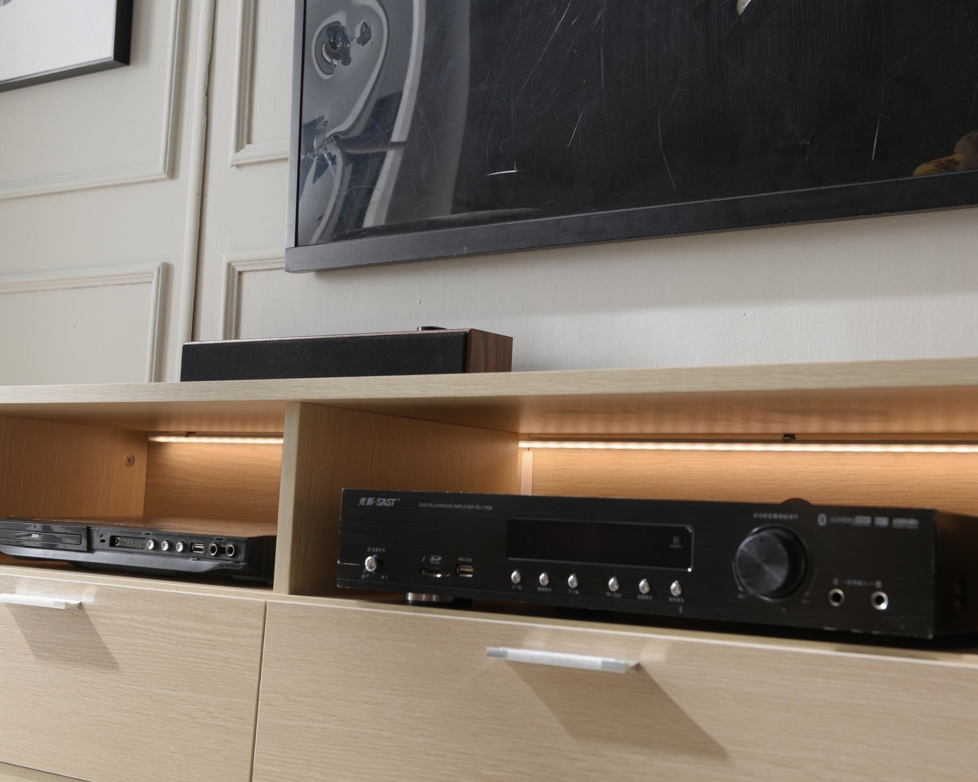 - Multifunction:This TV console can be used as TV cabinet, media rack, entertainment center and more. It perfectly matches any style of room decor and is easy to maintain.