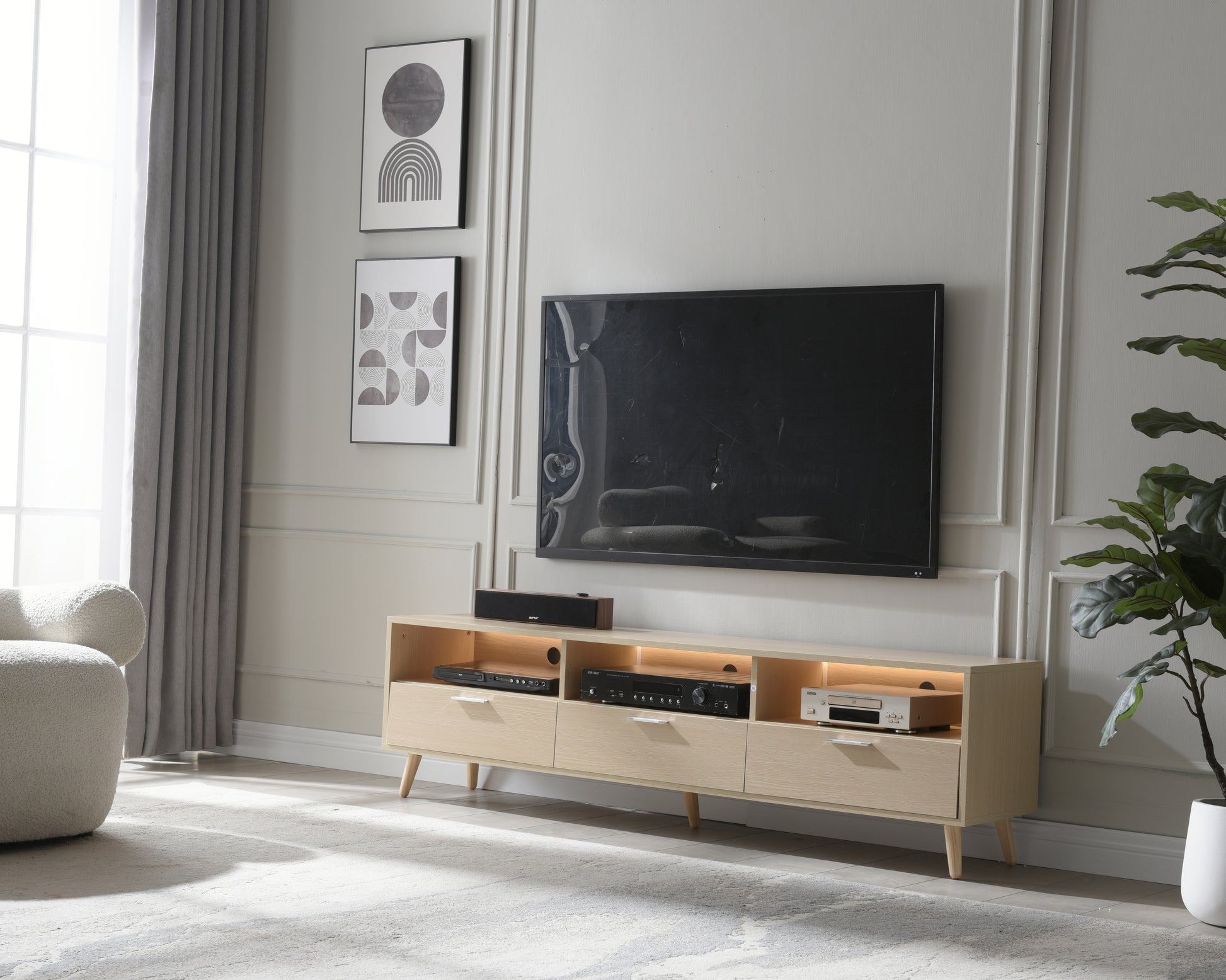 LED TV Stand LED Entertainment Center with Storage Modern LED Media Console Tables LED TV Cabinet for Living Room, Bedroom and Office Wood