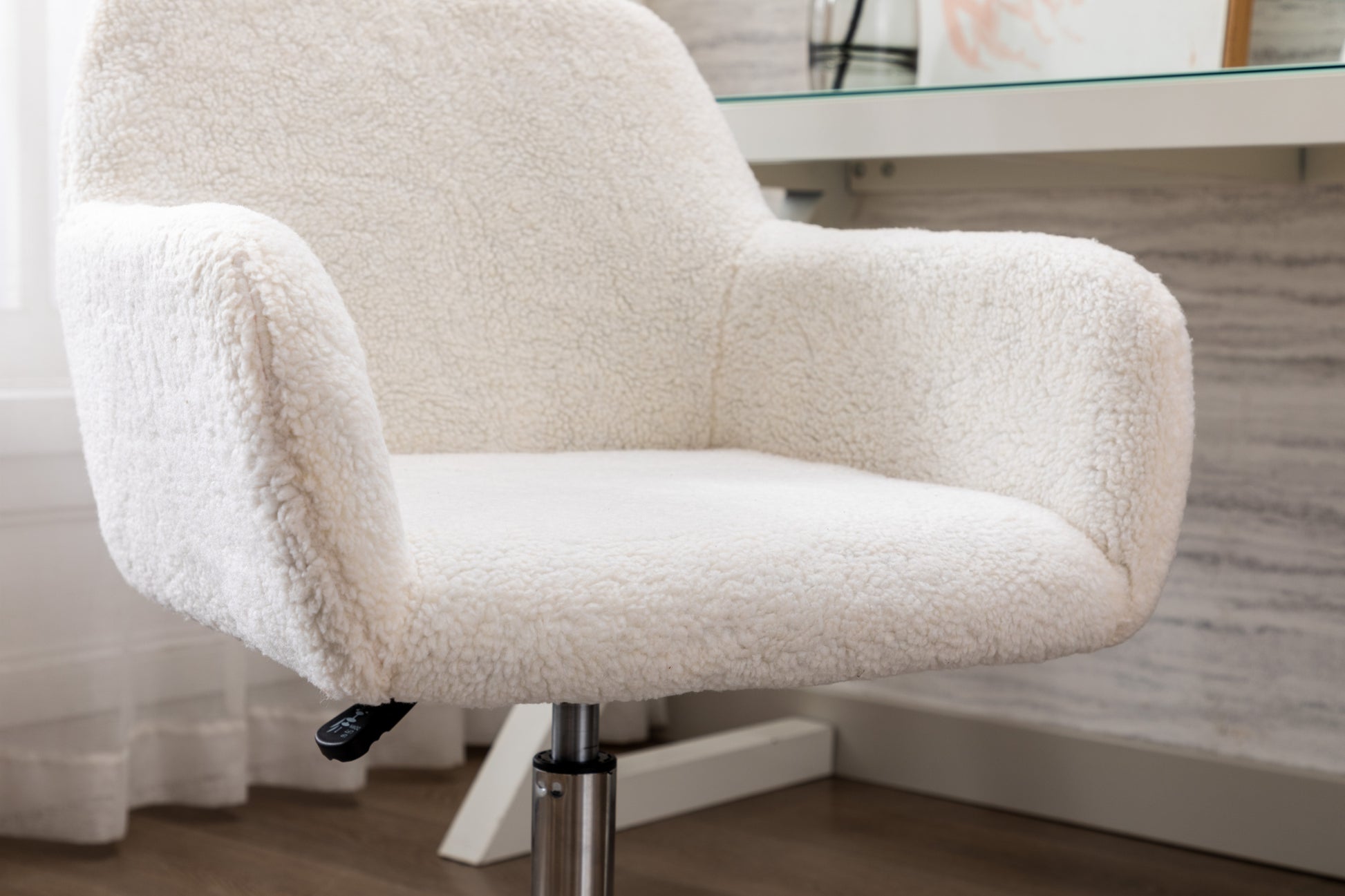 - Appearance design:The Urban Shop faux fur task chair is super cool for a bedroom or dorm room. With its comfortable fur and rolling wheels, this chair is very fun and stylish. This chair features a Height Lever to adjust The Height of the chair. The lamb feather design is very chic and is the perfect accent to a room
