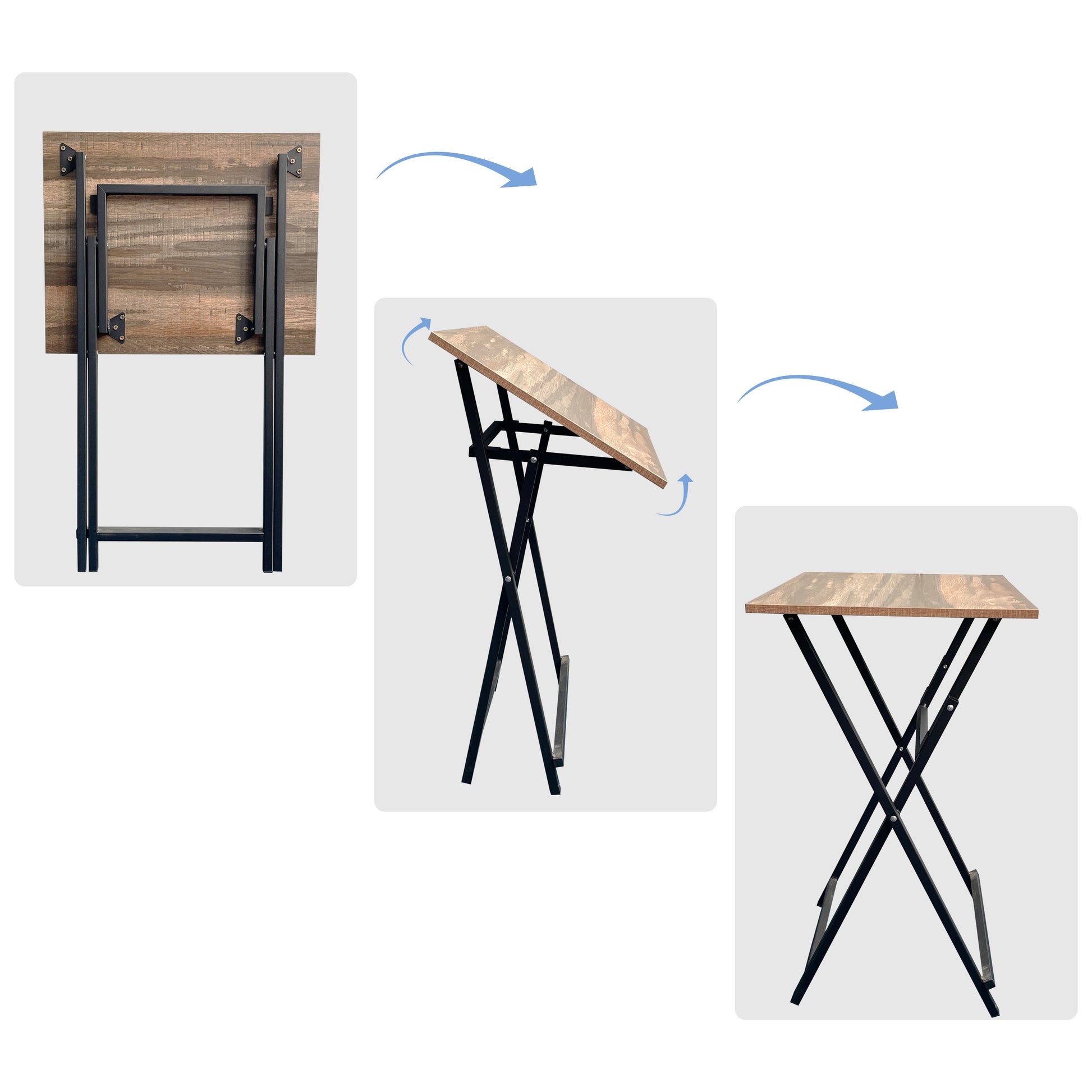 - Four folding tray tables can be used alone, or a combination of two tray tables, four tray tables can be used. Very suitable for a person in front of the TV to enjoy dinner or snacks, a few people outdoor picnic, etc., a variety of special occasions pull out to use.