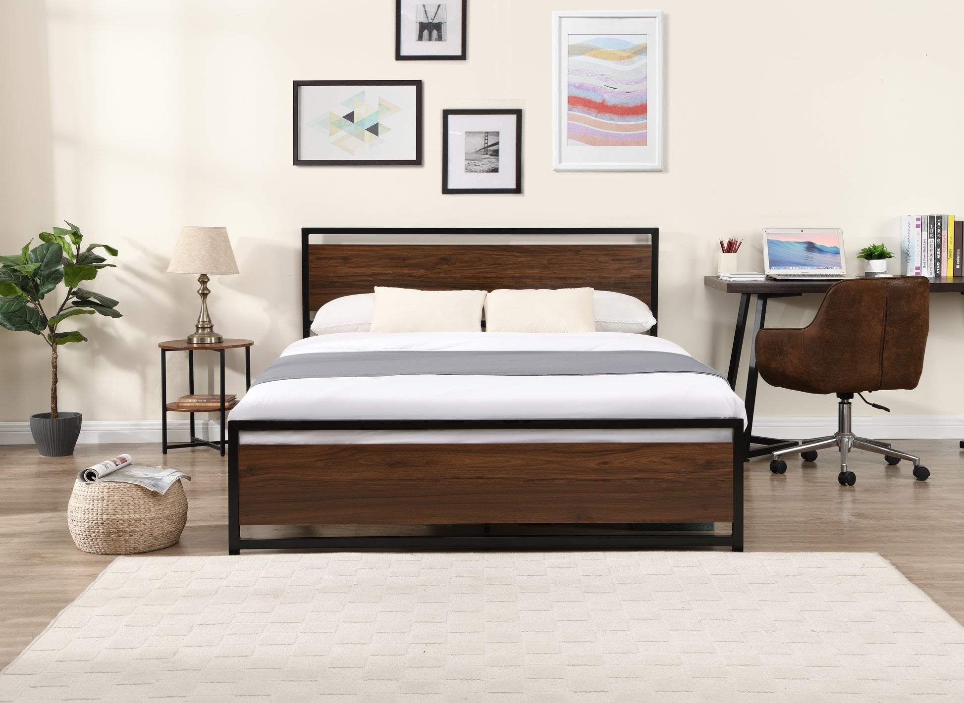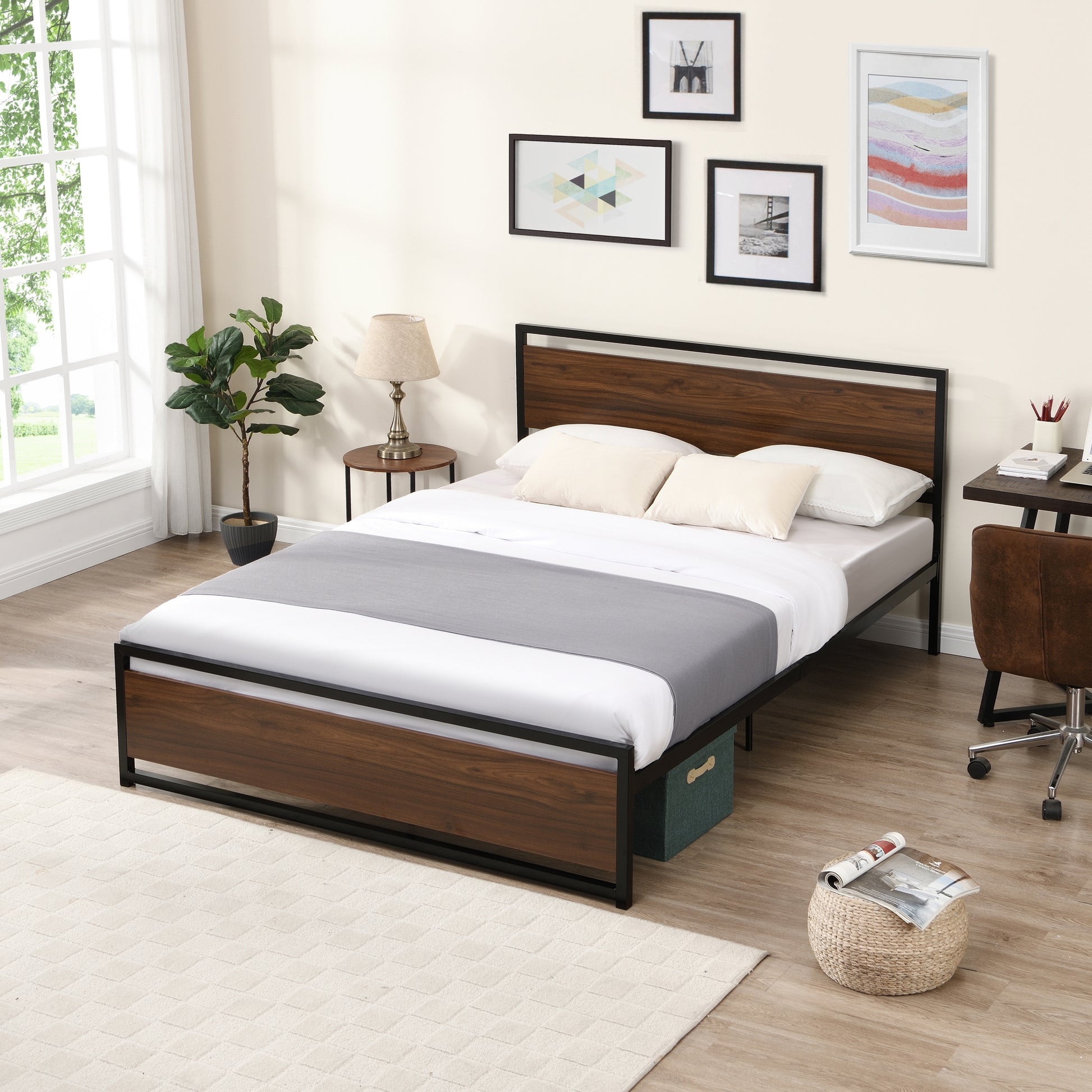 - QUIET & ANTI-SLIP: Metal bed frames offer snap-lock metal slats to prevent noise from moving slats. The large bed frame with wooden headboard and footrest perfectly surrounds the mattress and prevents it from slipping out of place. Double protection keeps you away from annoying squeaks and has a quality sleep.