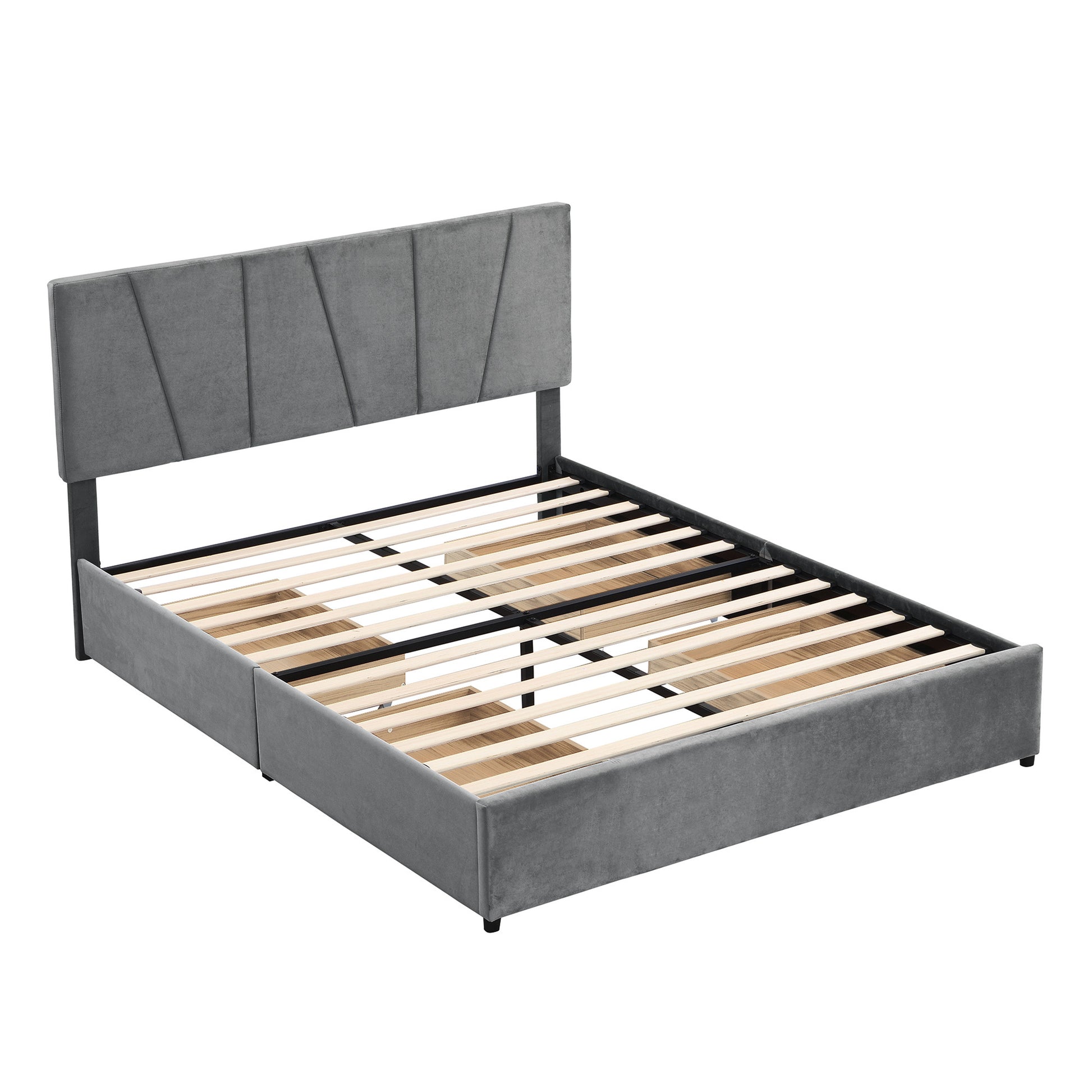 Queen Size Upholstery Platform Bed with Four Drawers on Two Sides, Adjustable Headboard, Grey(Old SKU: WF291774EAA)