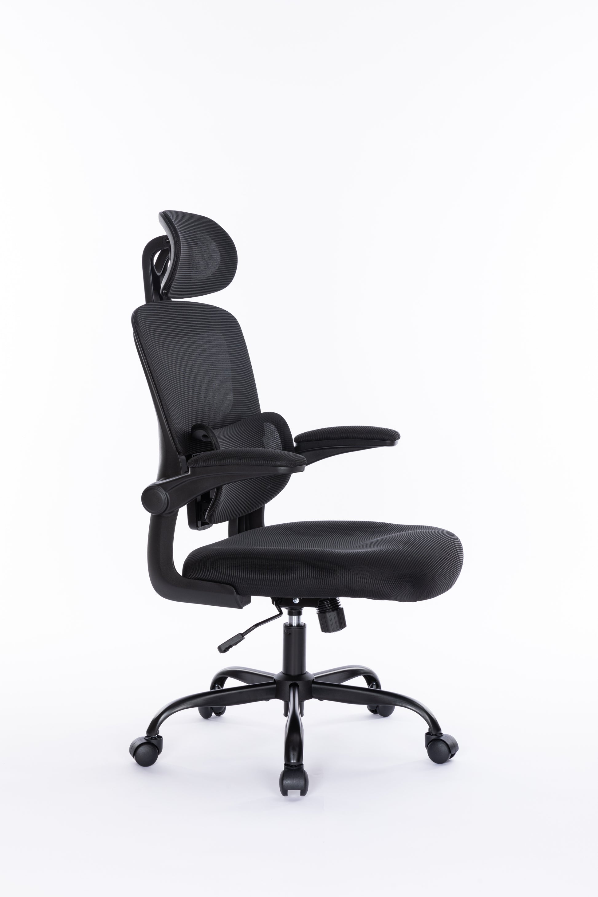 Ergonomic Mesh Office Chair with 3D Adjustable Lumbar Support, High Back Desk Chair with Flip-up Arms, Executive Computer Chair Home Office Task Swivel Rolling Chairs for Adults