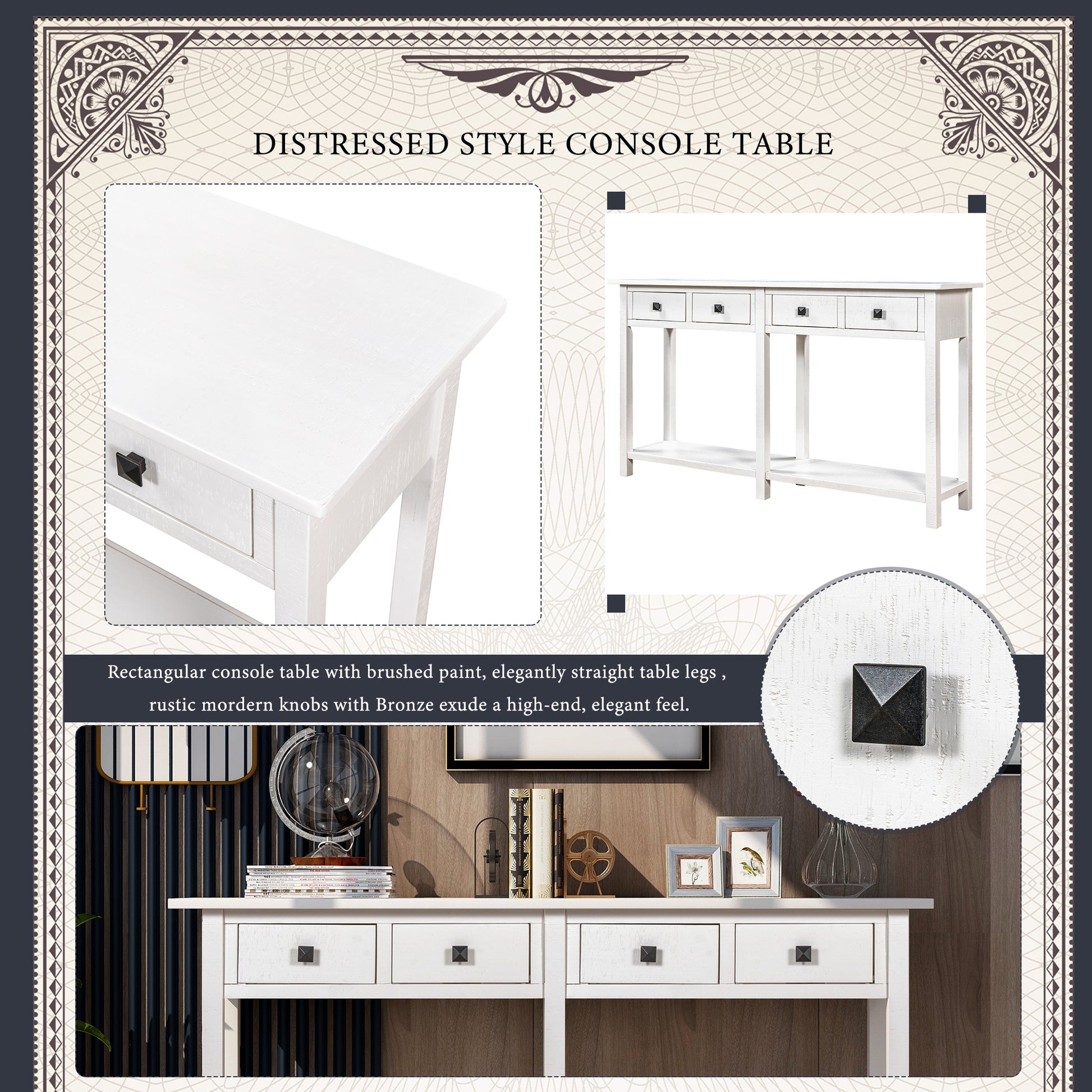 - Distressed Style Console Table: Rectangular console table with brushed paint, elegantly straight table legs , rustic mordern knobs with Bronze exude a high-end, elegant feel.