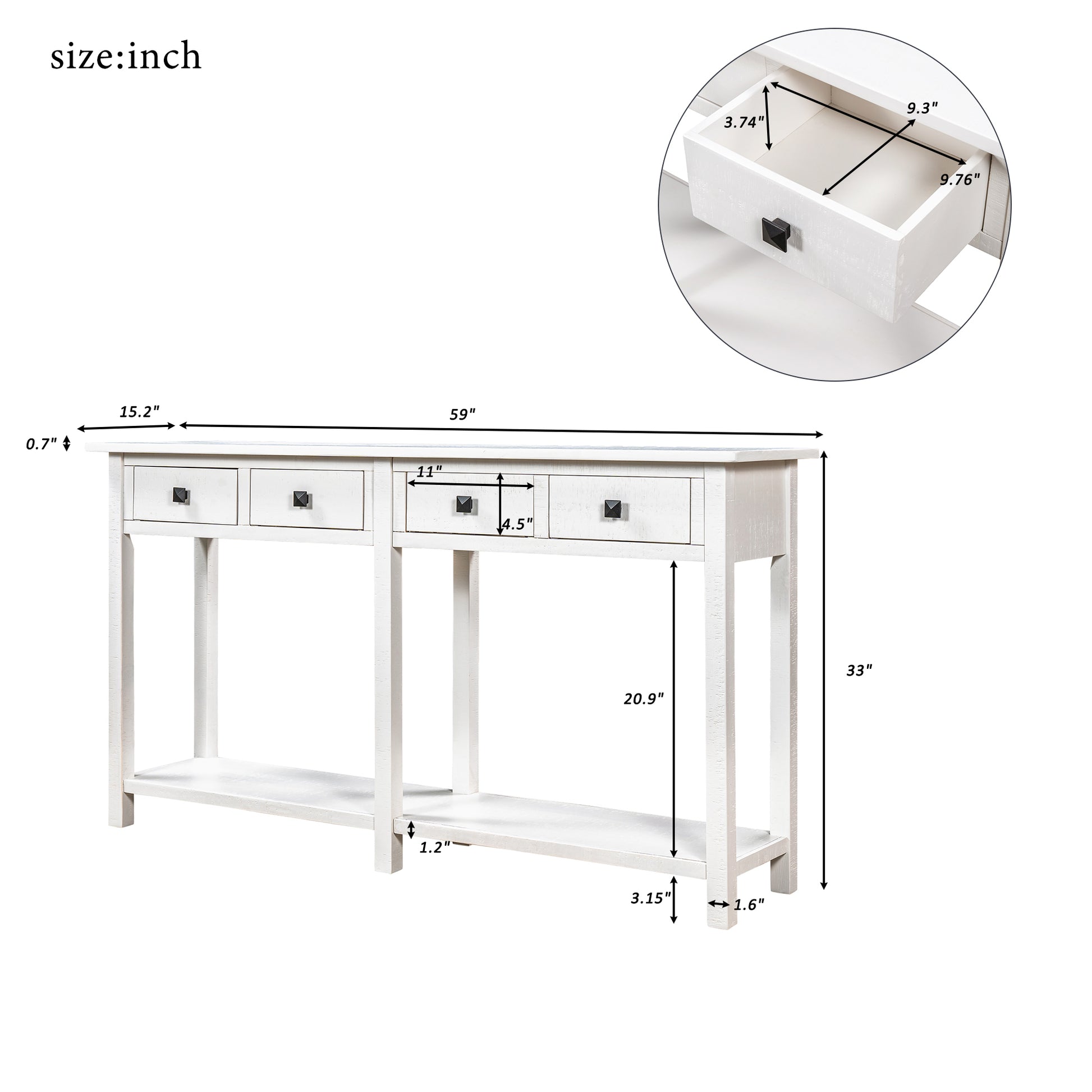 Classic accent table fits perfectly in any living room. The industrial console table is widely applied for your office, store, living room or bedroom. The console table features with 4 functional drawers and a fixed lower shelf and long enough tabletop which provide enough storage space.