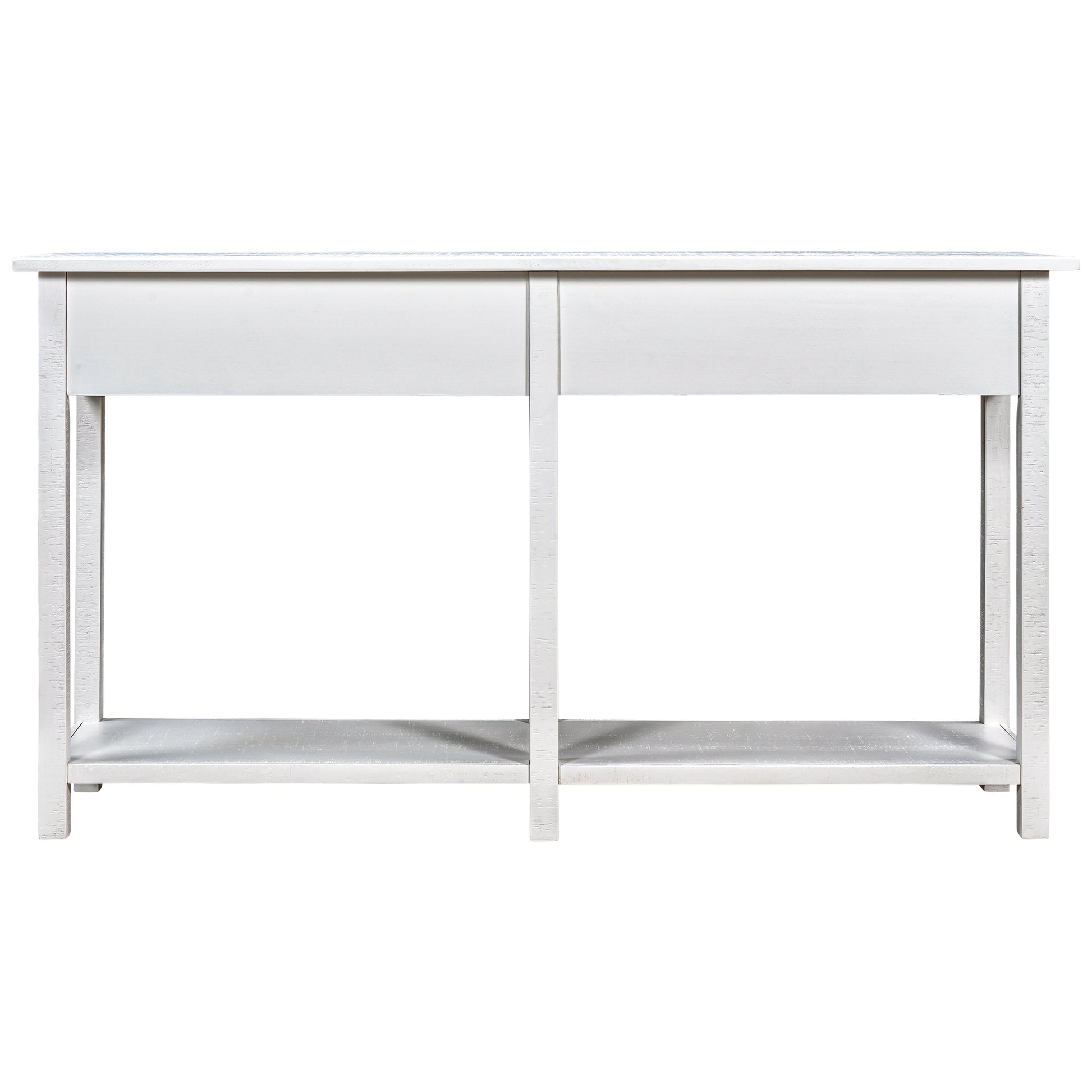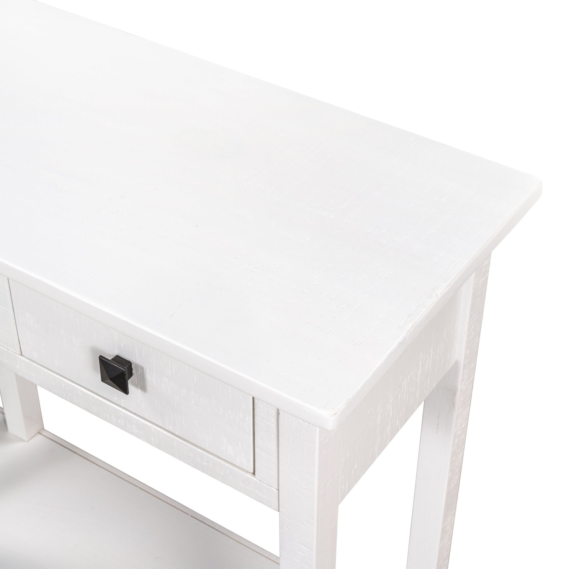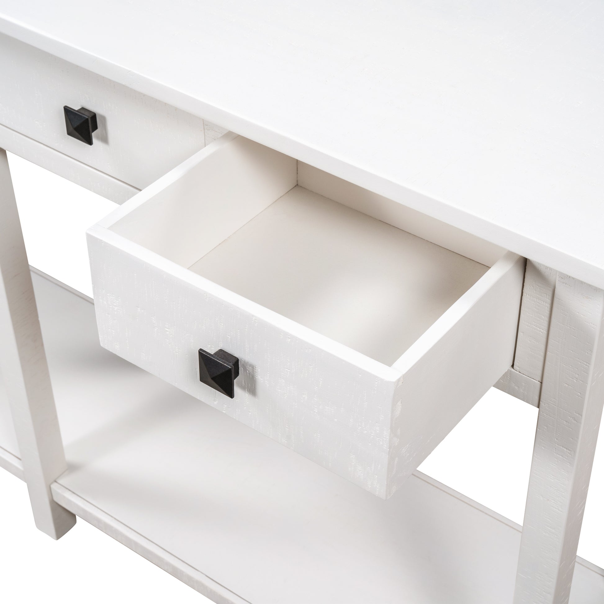 TREXM Rustic Brushed Texture Entryway Table Console Table with Drawer and Bottom Shelf for Living Room (Ivory White)