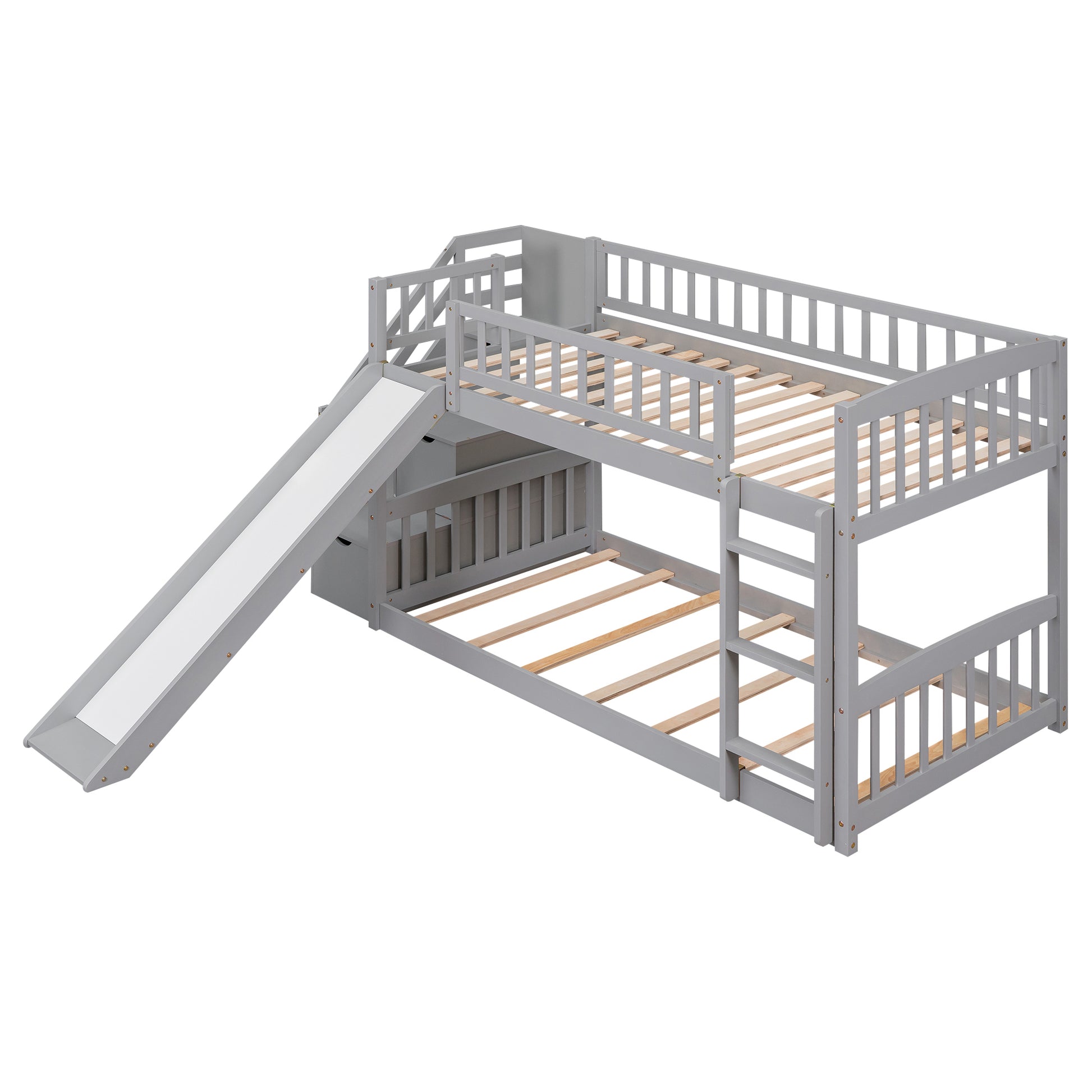 Stairway Twin over Twin Bunk Bed with Two Drawers and Slide, Gray(OLD SKU :LT000155AAE)