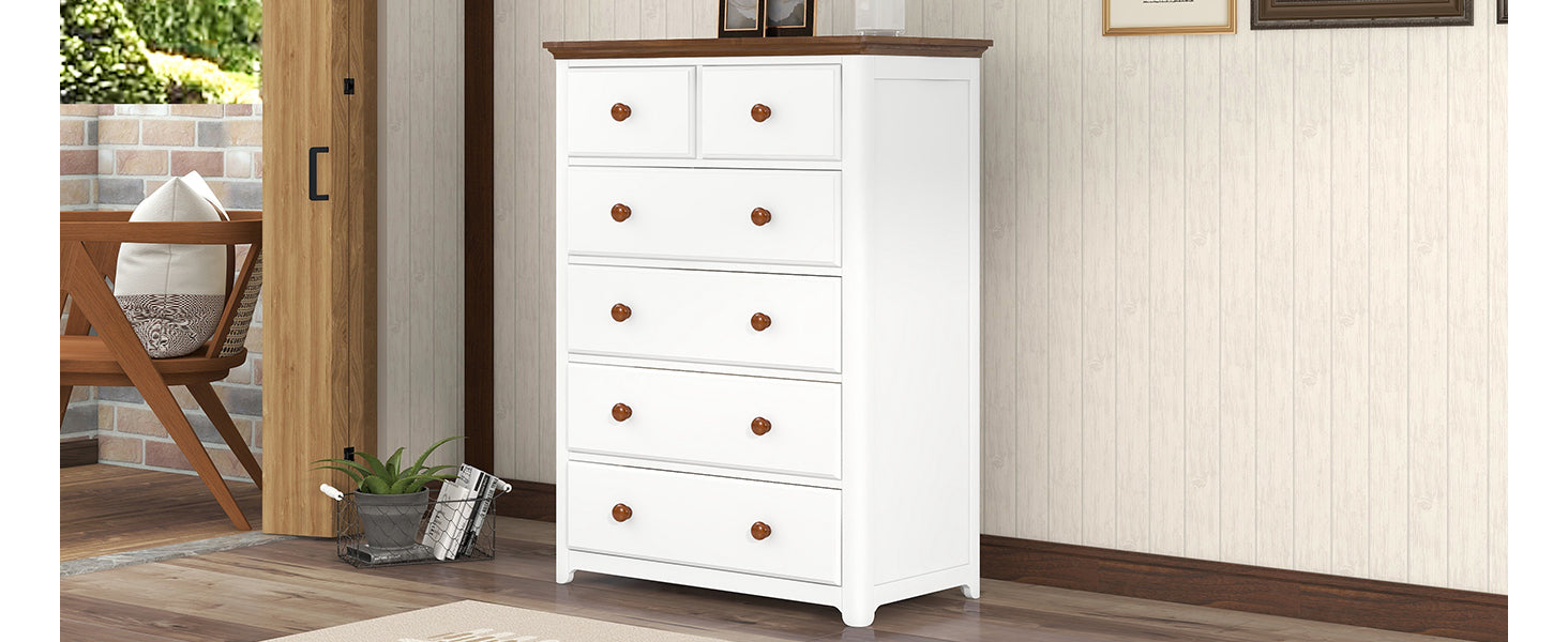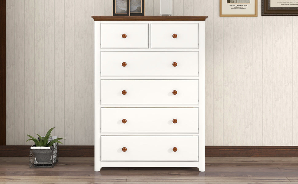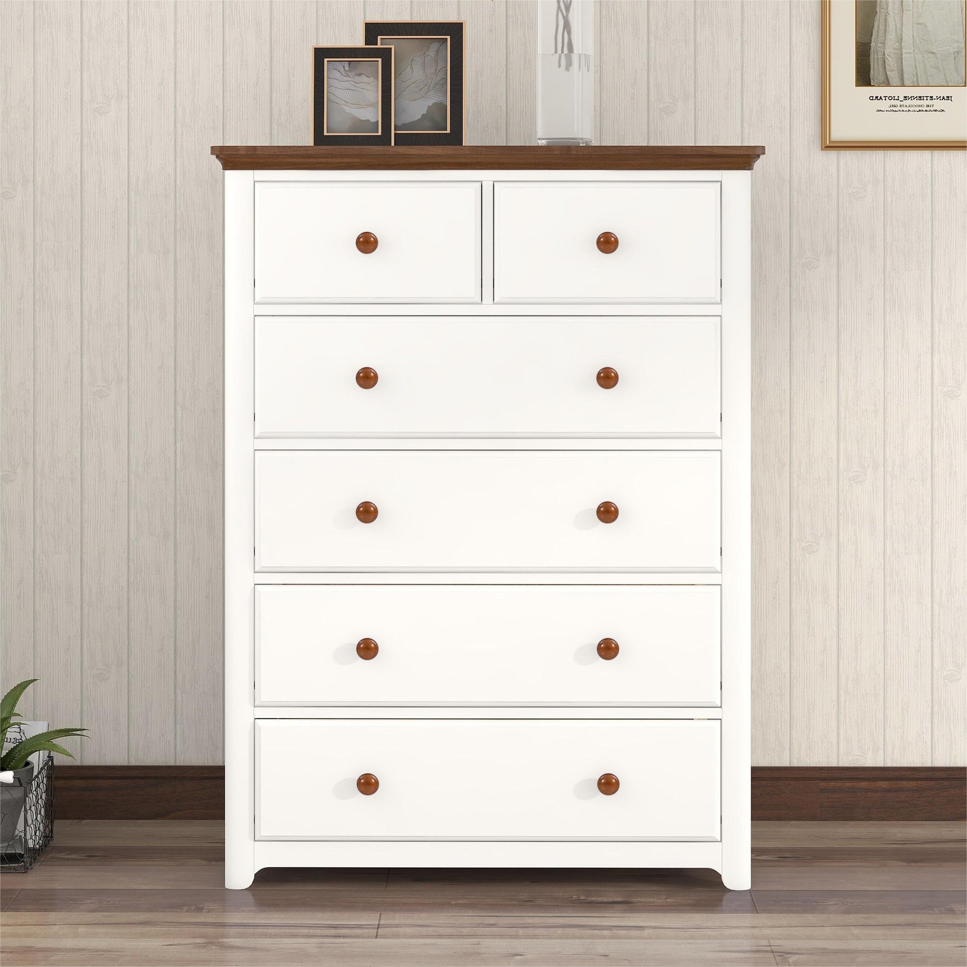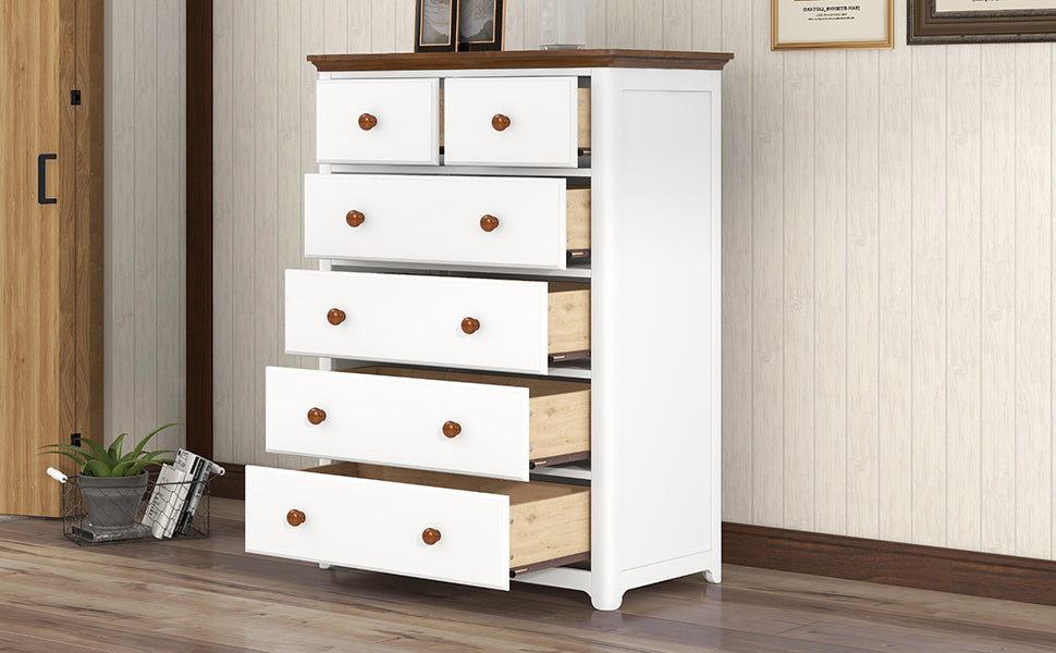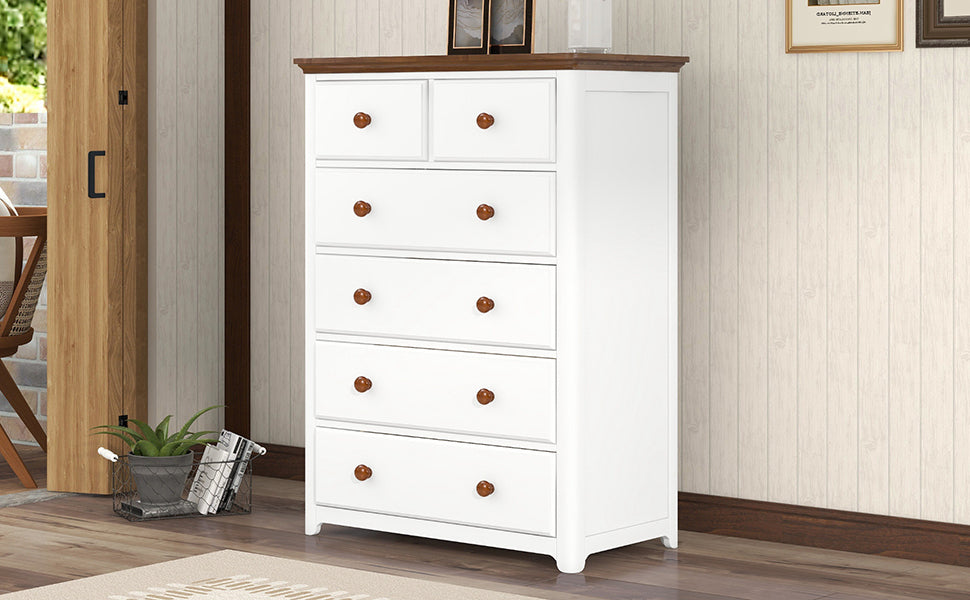 Rustic Wooden Chest with 6 Drawers,Storage Cabinet for Bedroom,White+Walnut