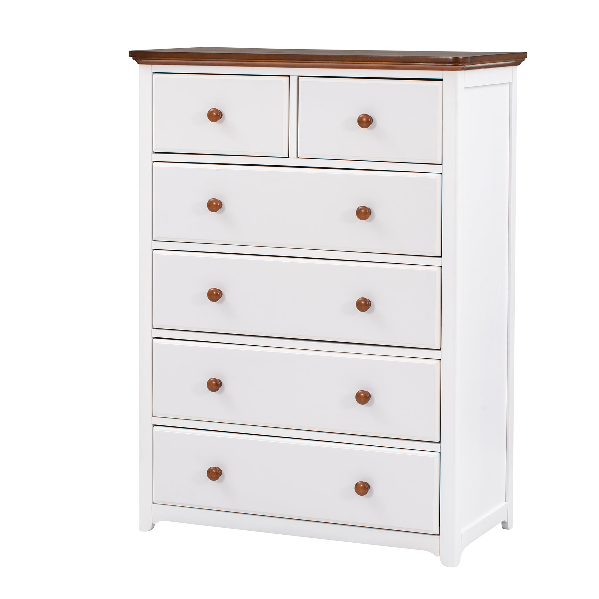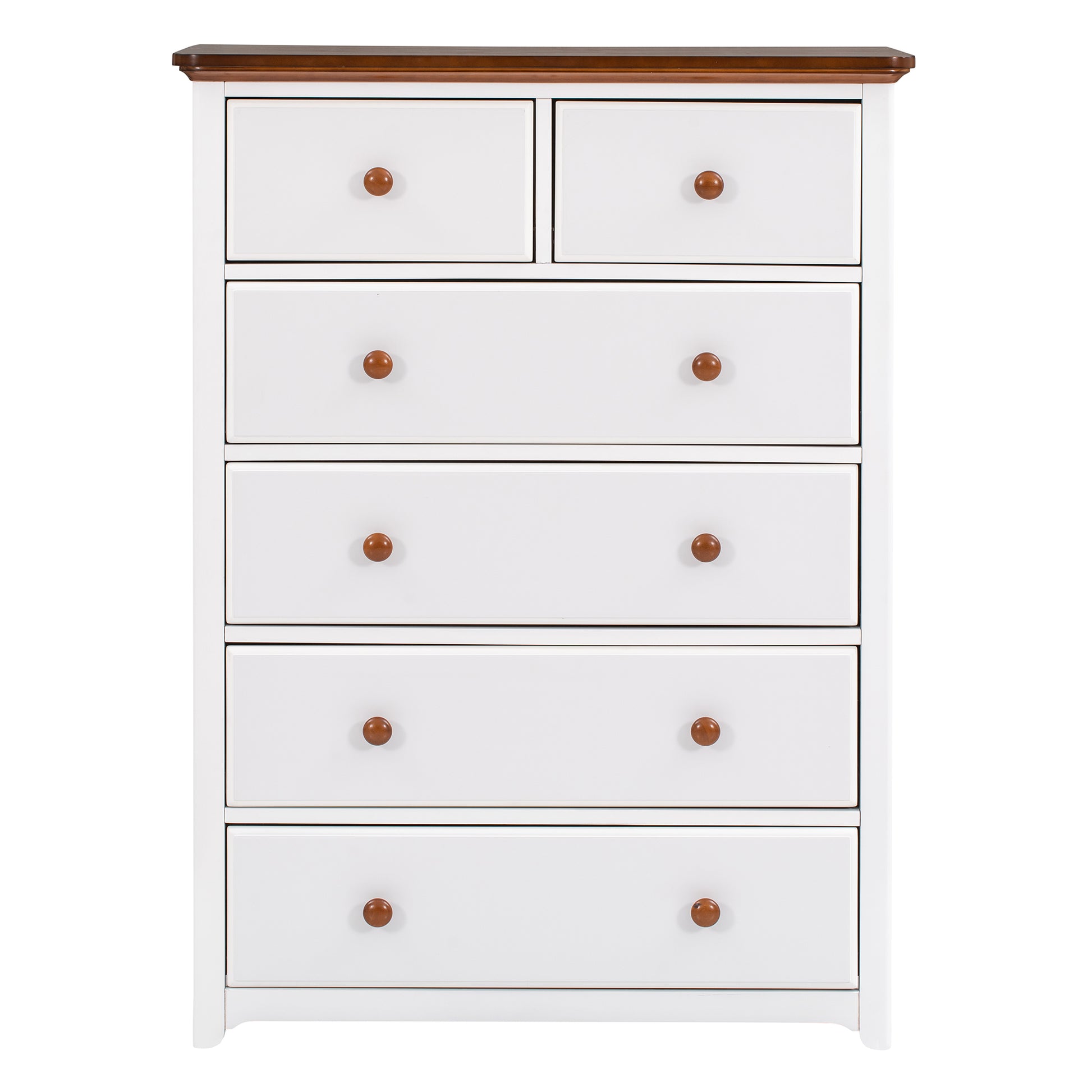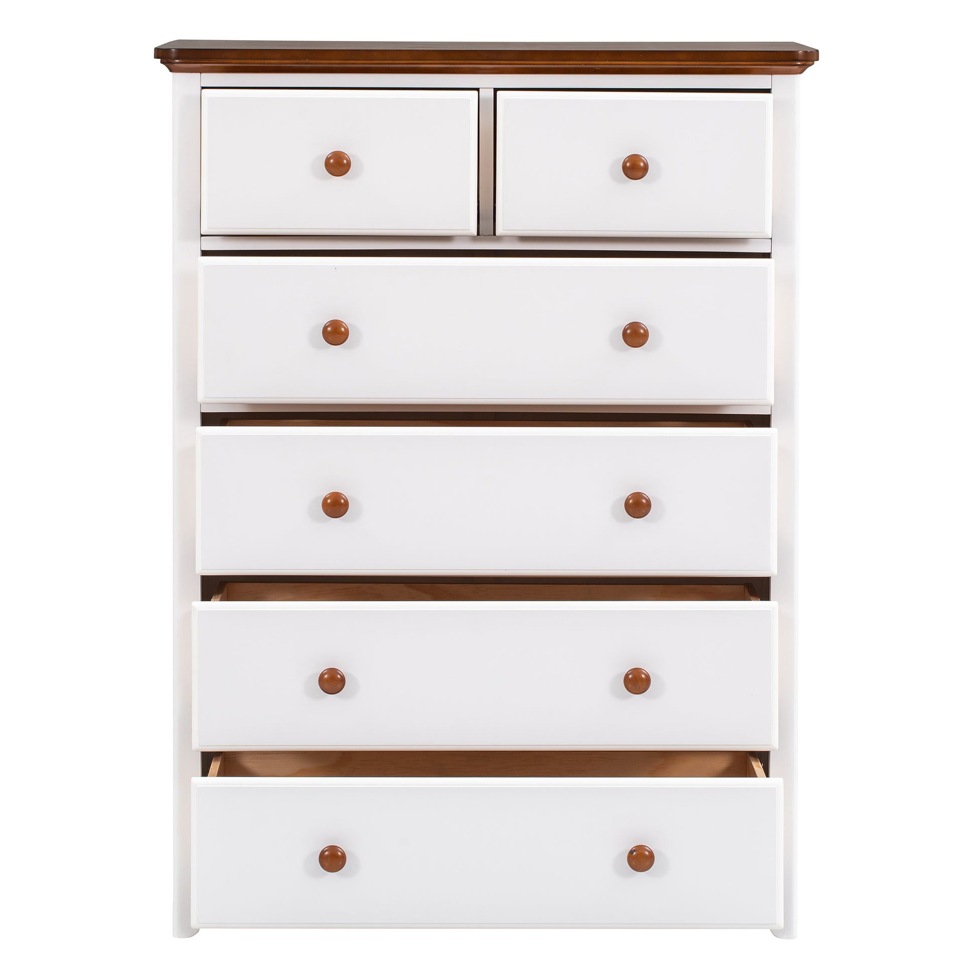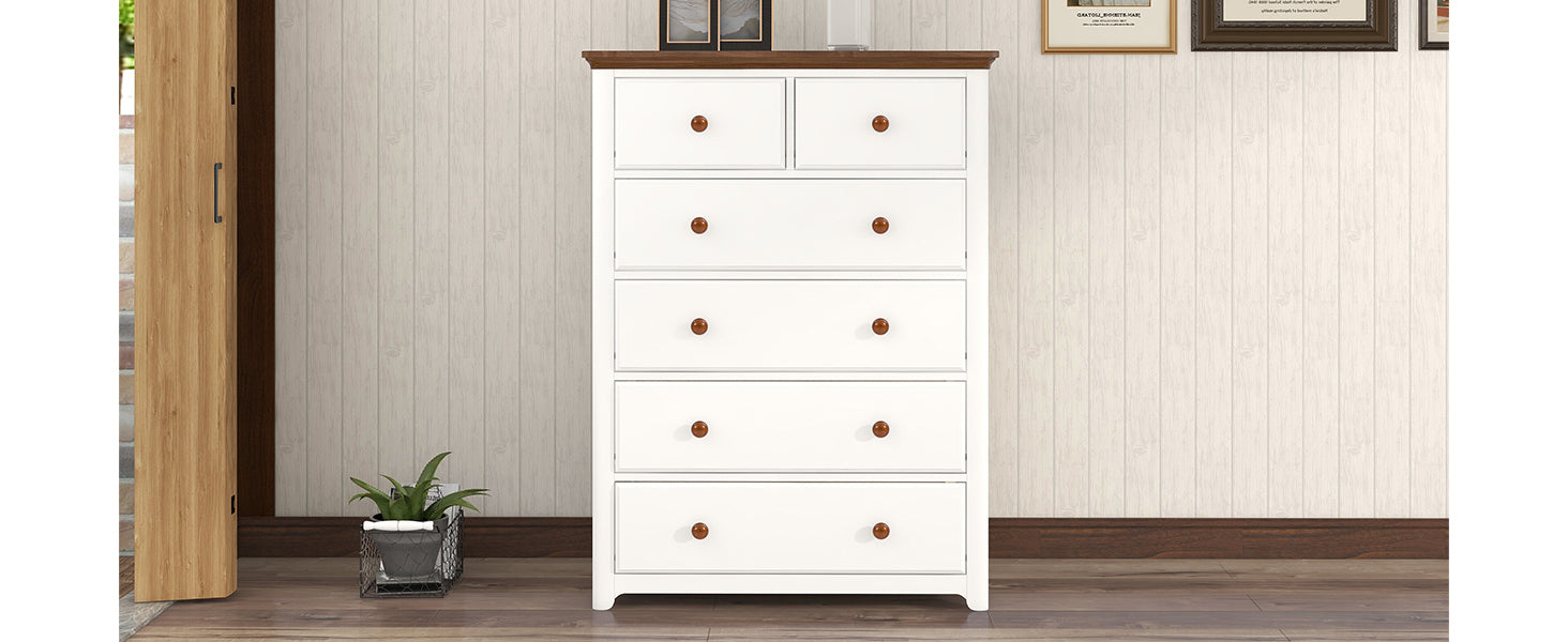 Rustic Wooden Chest with 6 Drawers,Storage Cabinet for Bedroom,White+Walnut