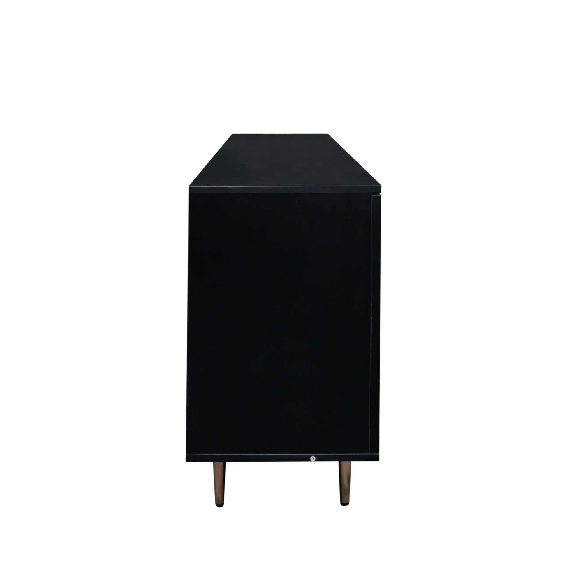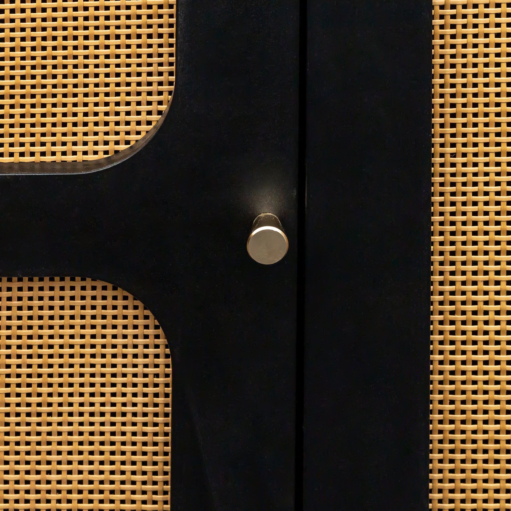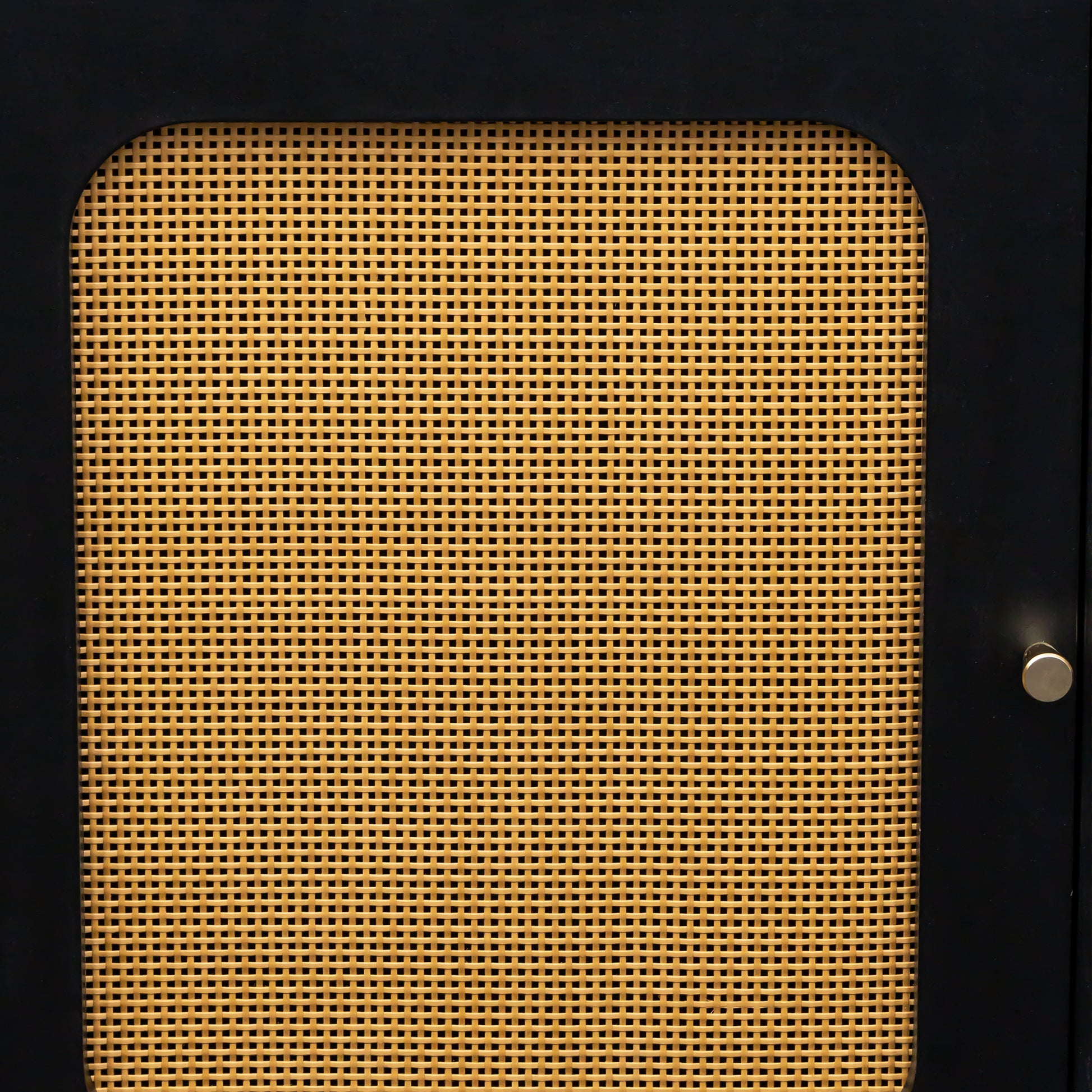 Rattan Sideboard Buffet Cabinet, Kitchen Storage Cabinet Console Table with Adjustable Shelves for Living Room, Dining Room, Bedroom (Black)