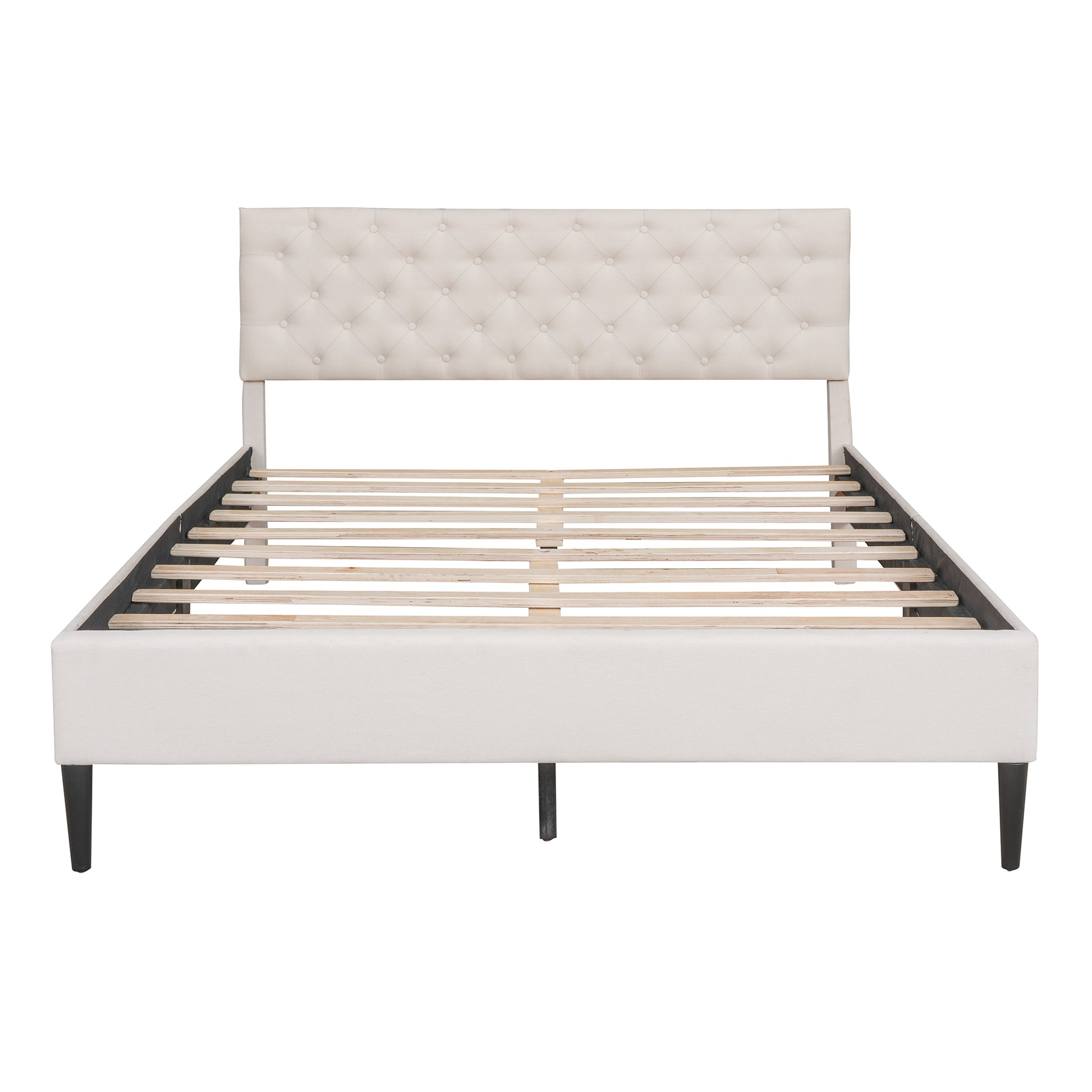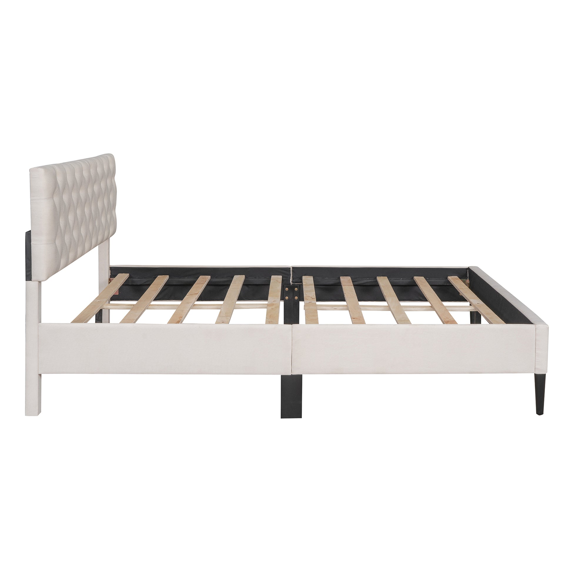 Upholstered Linen Platform Bed, Queen Size, Beige