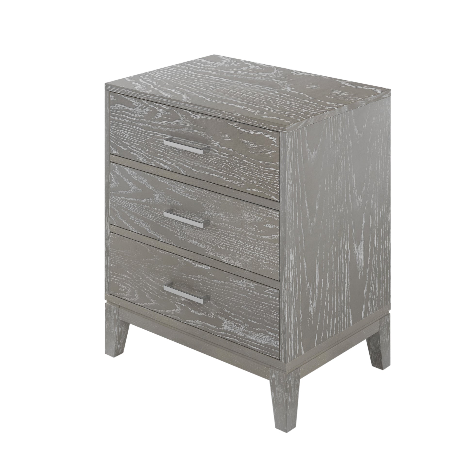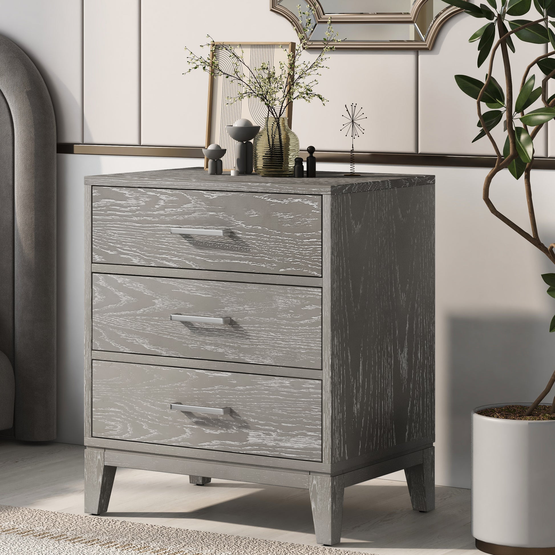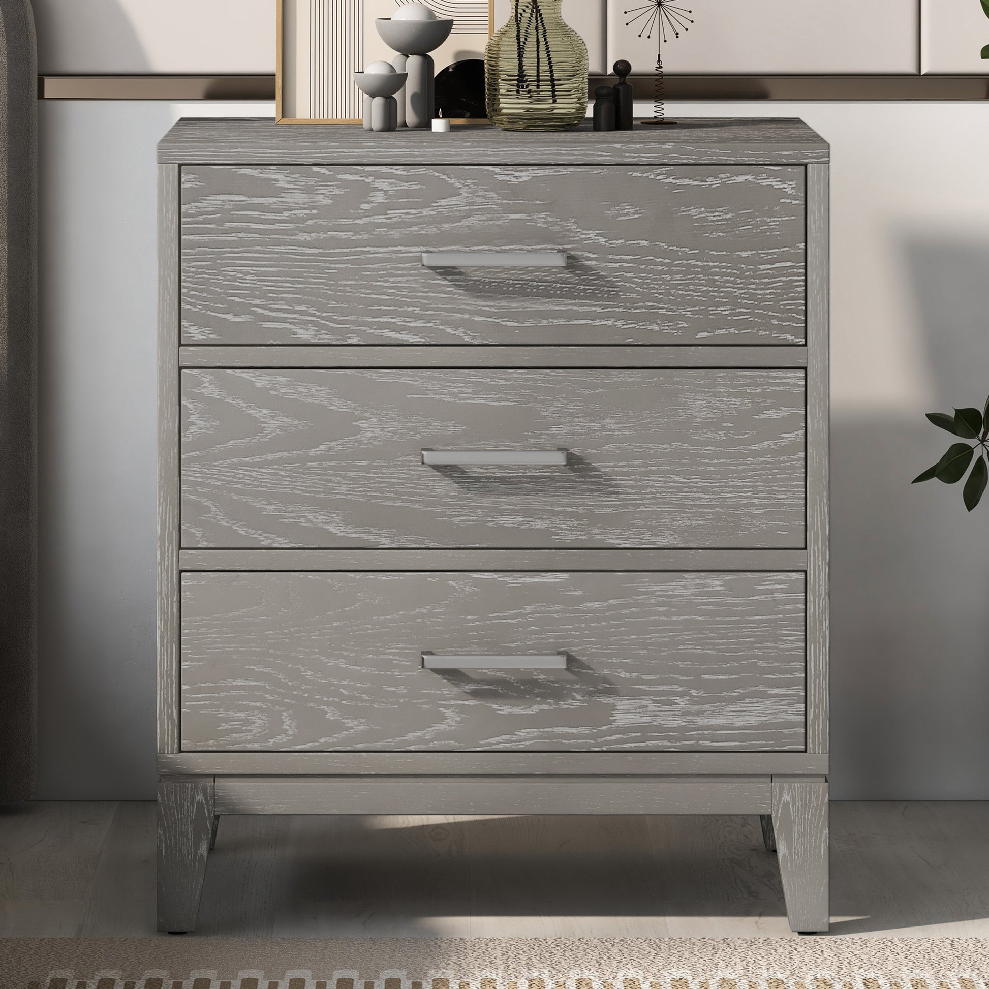 Modern Concise Style Gray Wood Grain Three-Drawer Nightstand with Tapered Legs and Smooth Gliding Drawers