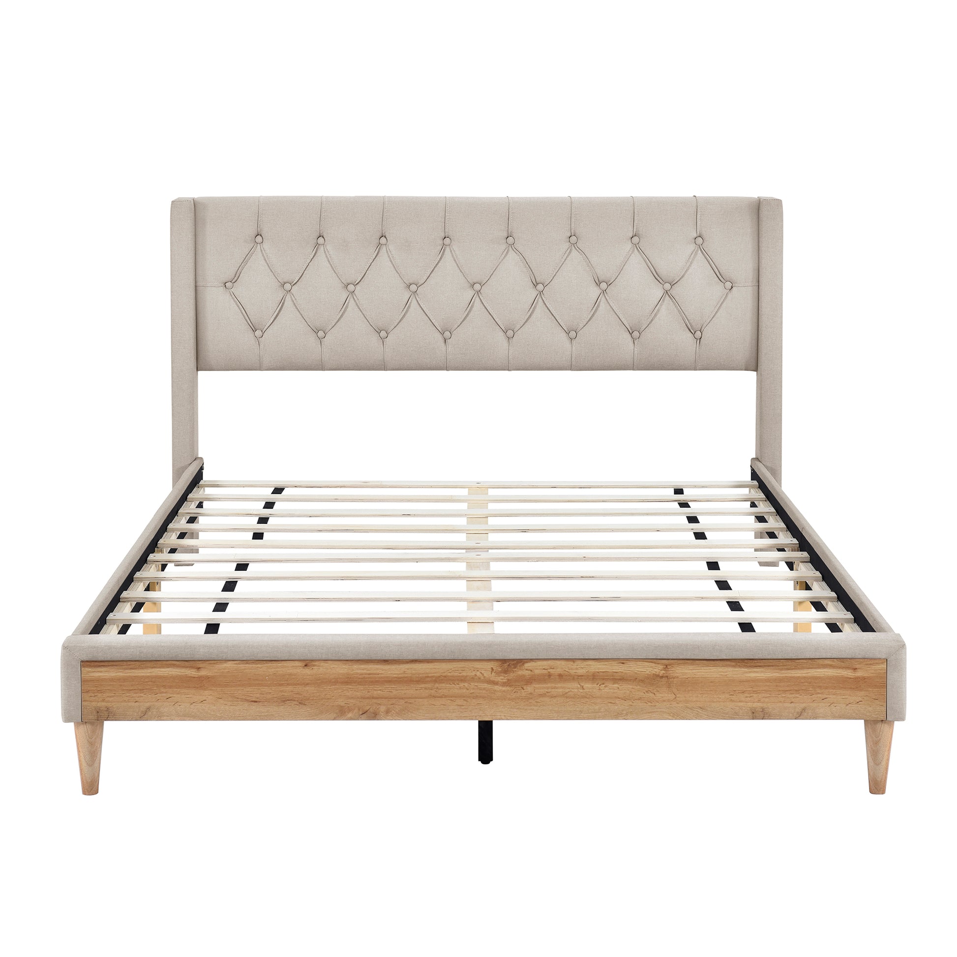 This beautiful Upholstered Platform Bed features button tufted upholstered headboard that adds a contemporary chic look to your bedroom and filled in thick foam to add extra comfort.Sturdy wood frame construction and the rubber wood legs to add extra stability and safety. The nightstands and storage ottoman bench fits in many locations throughout your home.It offers an excellent arrangement for your room to keep all things organized and free of clutter.The whole bedroom set is designed in one style and will give your bedroom a whole new look.