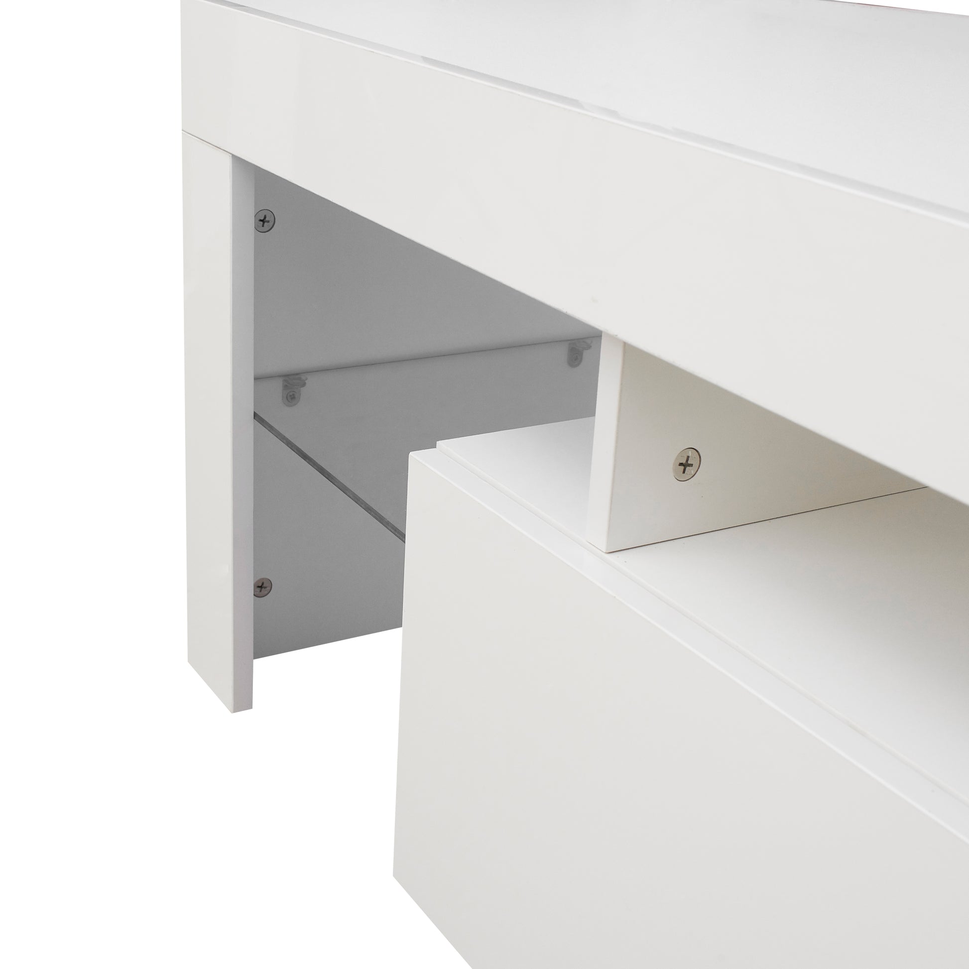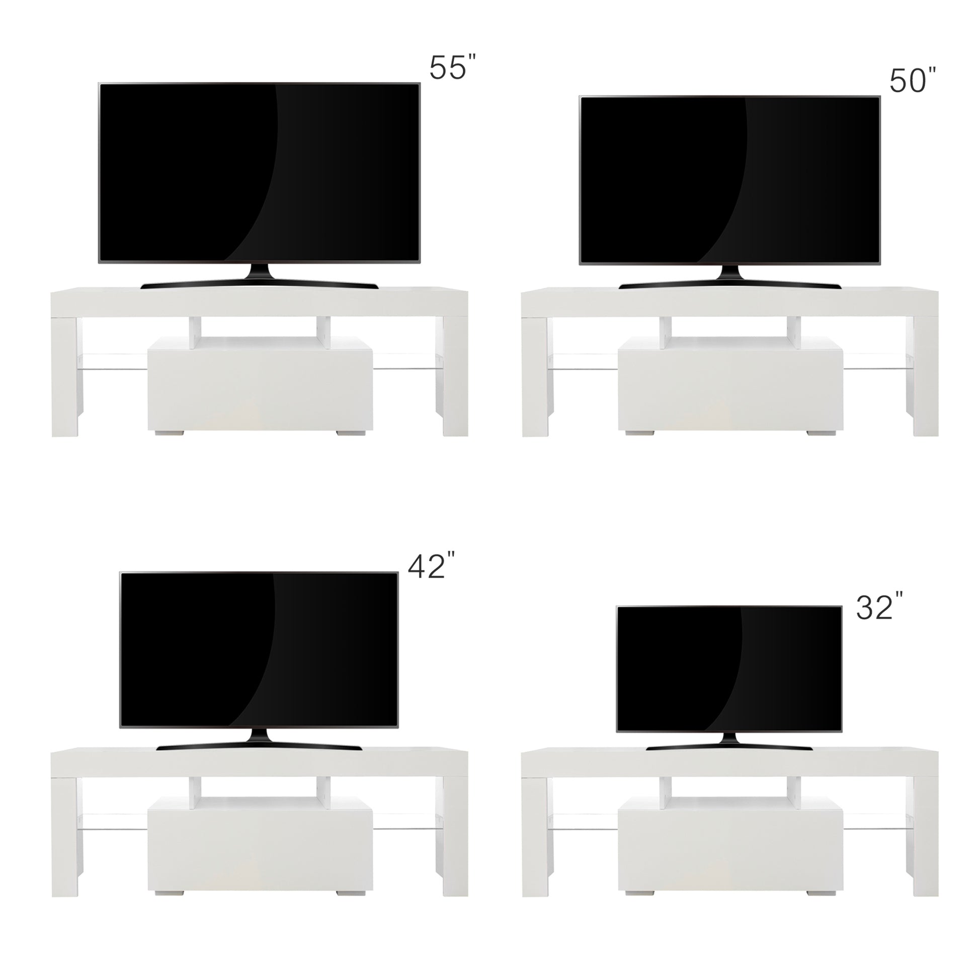 Feature: Quantity: 1pc. Material:Chipboard Colour:White. Size:130×35×45cm/51.2×13.8×17.7in. Net Weight : 55.1lbs load bearing:30KG Applicable scene:living room,etc. Due to the complicated installation, it is recommended that you install according to the installation instructions. Each board and mounting parts have labels, please find the corresponding label to install Modern Central entertainment features LED lights system for up to 55-inch TV Screens,16 kinds of monochrome and 4 kinds of discoloration, elegant enough for adding special charm to your house. Package Includes: 1pc×TV Cabinet 1pc×Instruction manual
