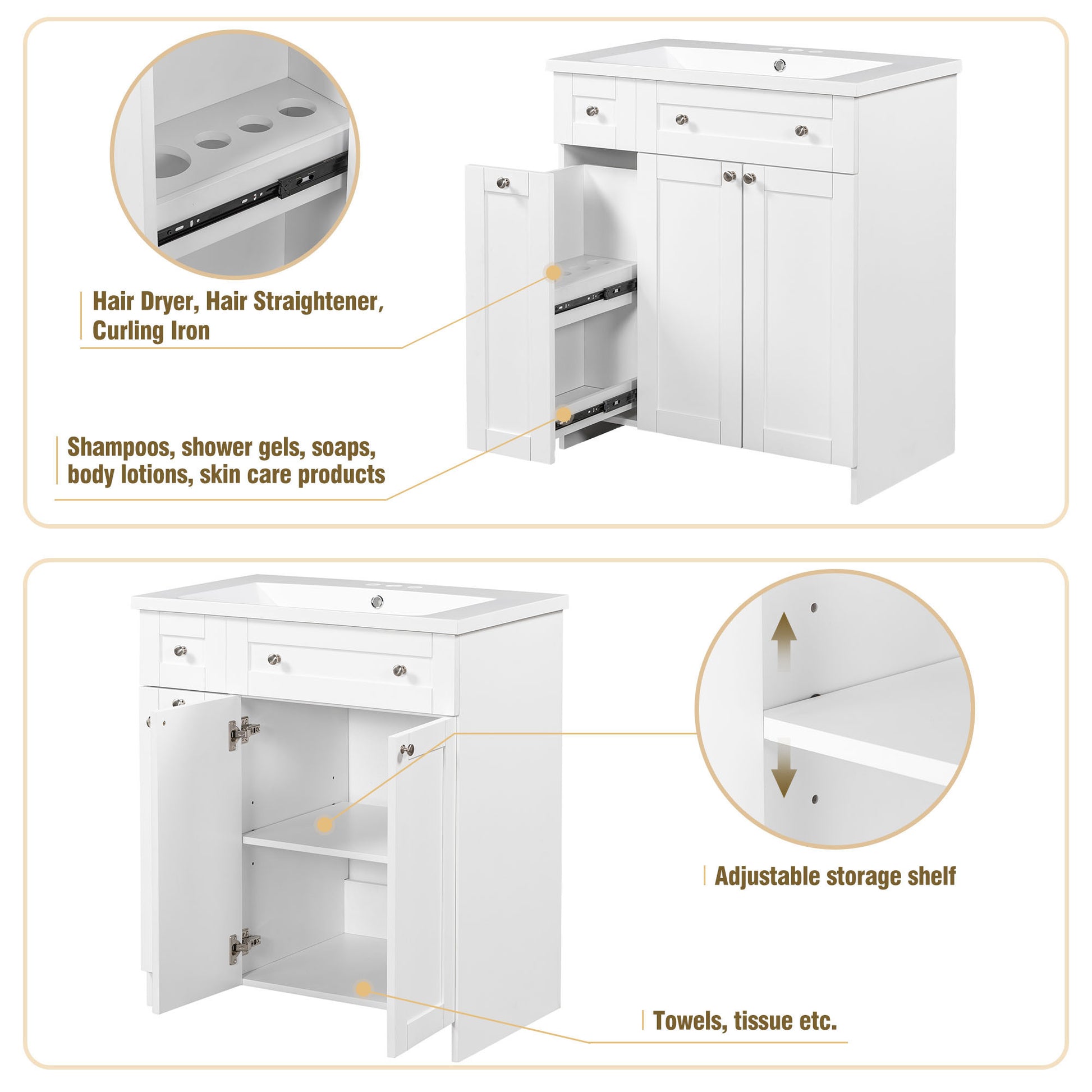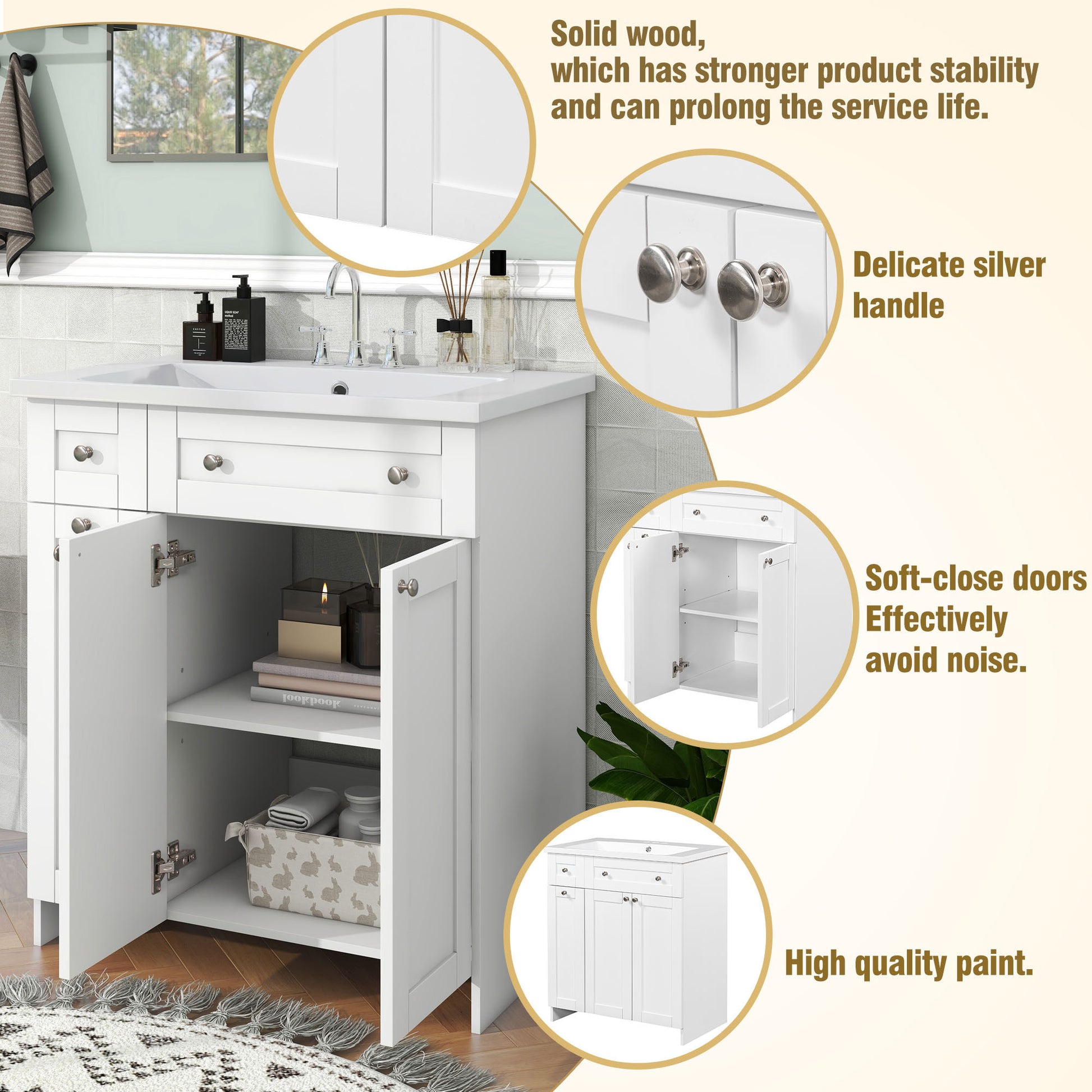 30" White Bathroom vanity with Single Sink ,Combo Cabinet Undermount Sink,Bathroom Storage Cabinet vanities