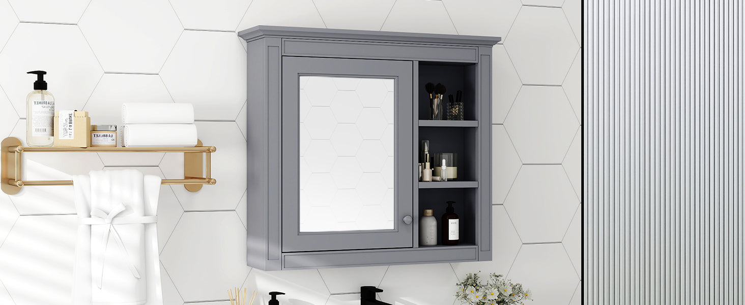 - [ Mirror cabinet ] Wall-mounted cabinets with mirrors can save you extra time picking out mirrors. At the same time, a mirror cabinet can meet your diverse needs. While you can use it as a storage cabinet, it can also satisfy your need to use it as a makeup mirror.