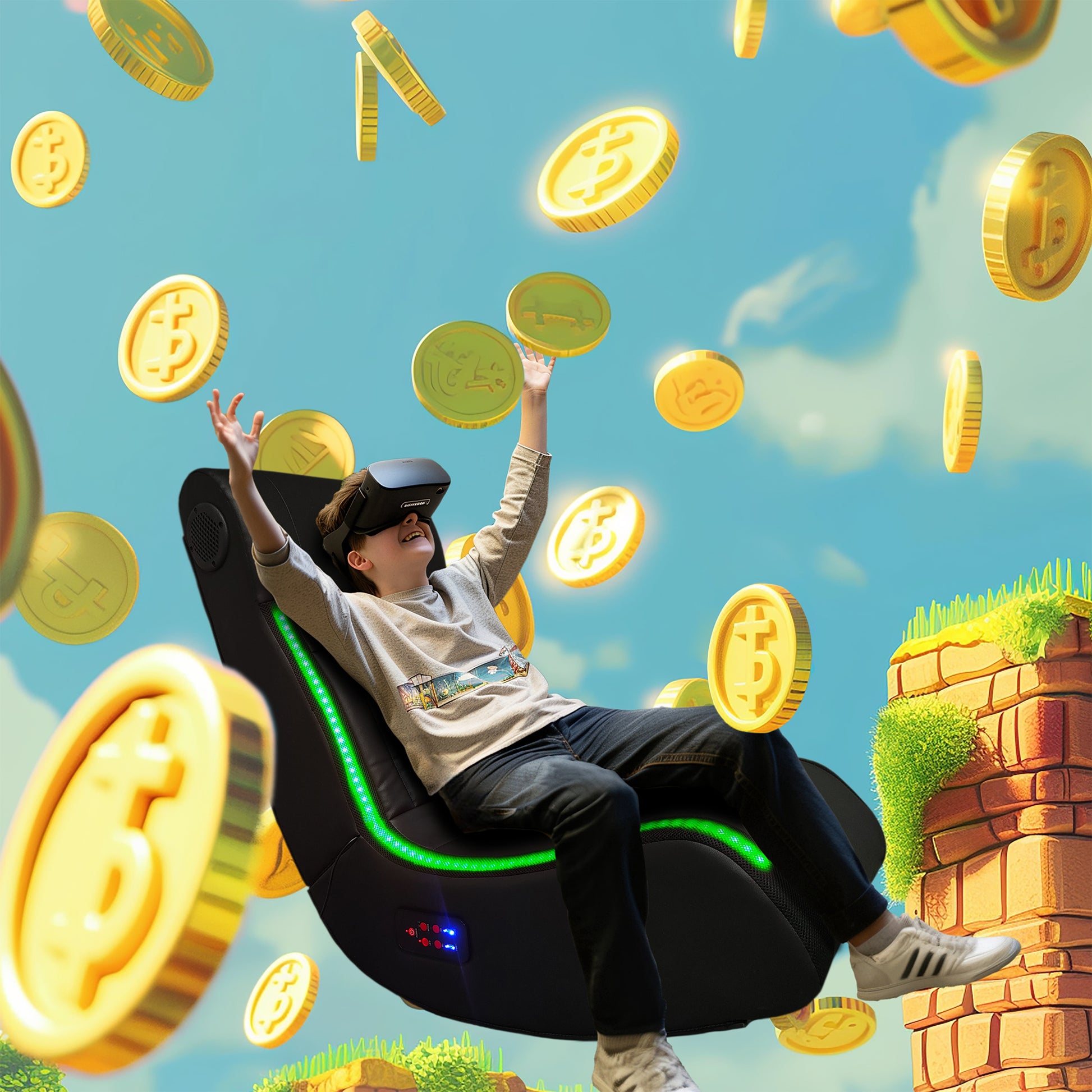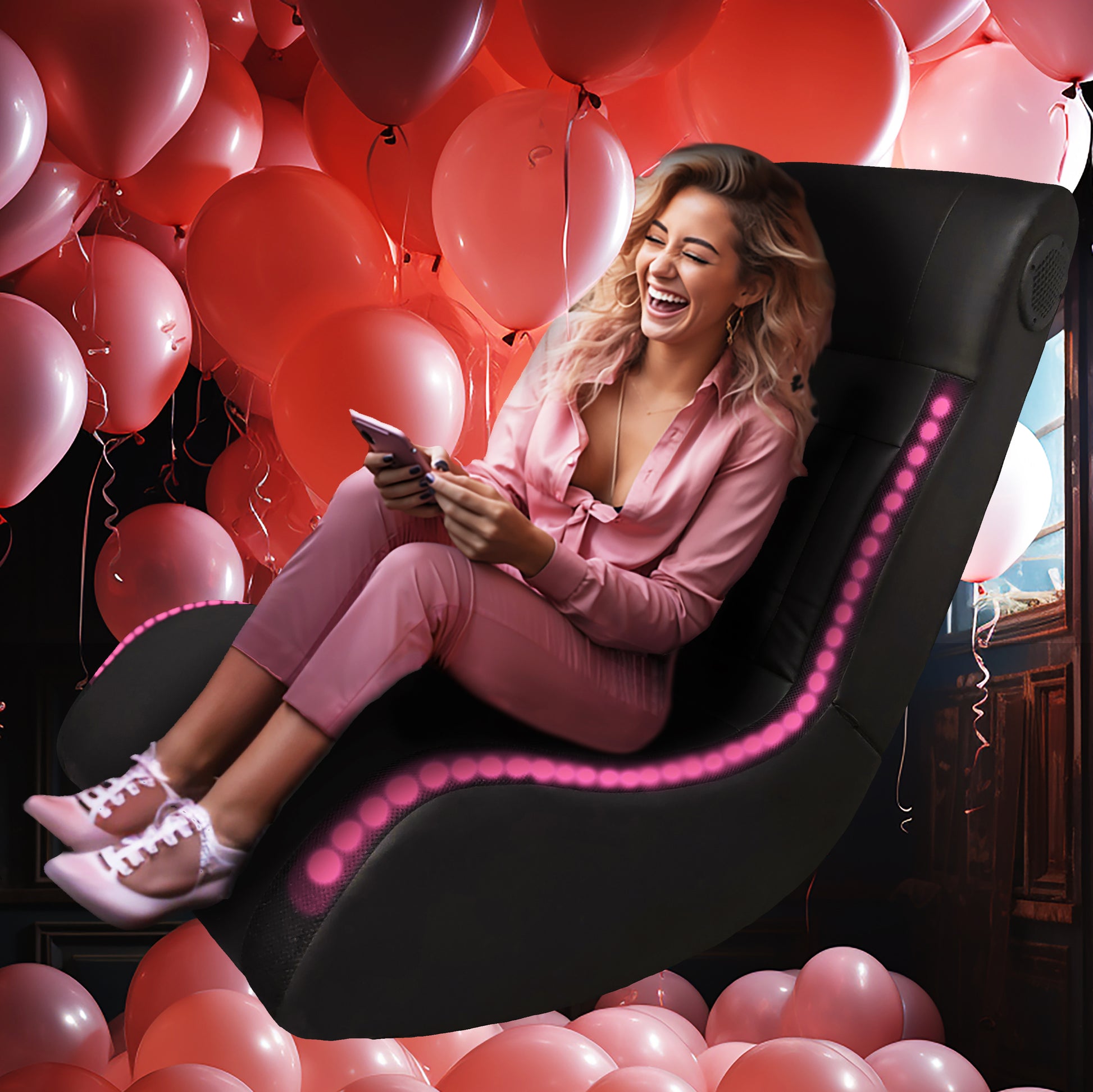 Foldable Gaming Chair With Onboard Speakers, LED Strip Lighting, Bluetooth Music Speakers, Vibration Massage, USB Charging Port