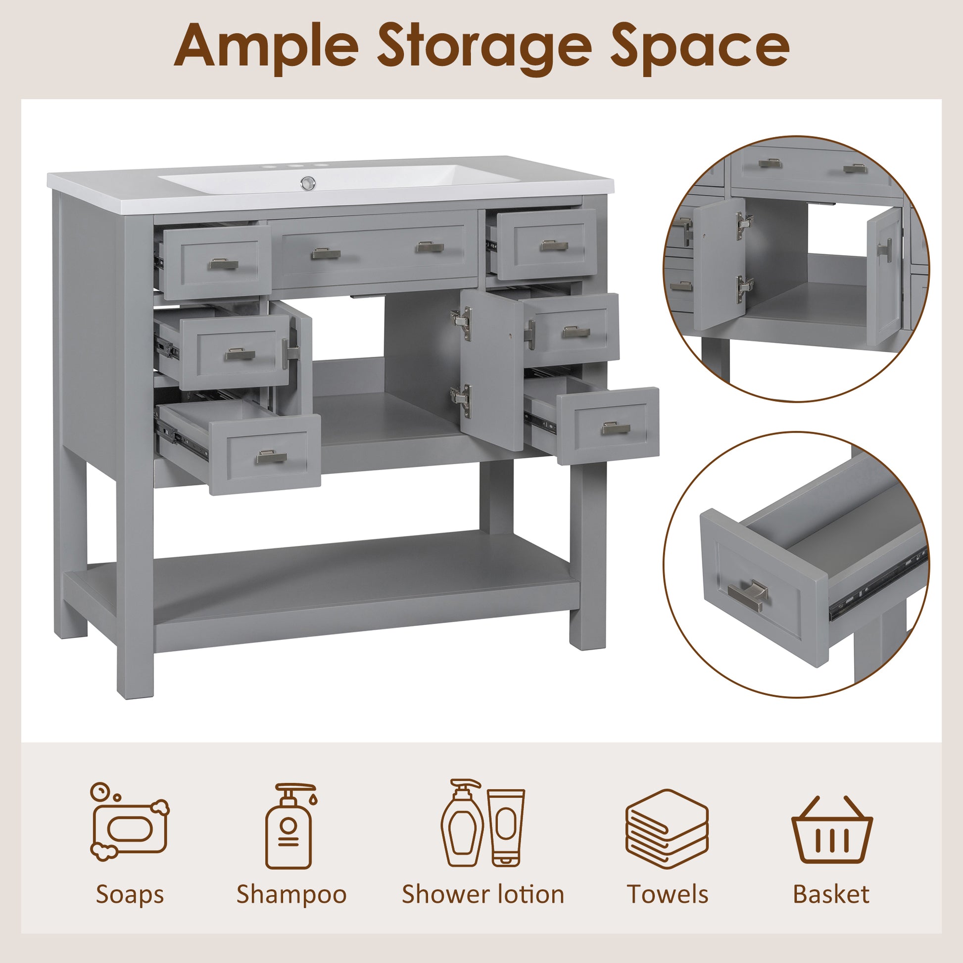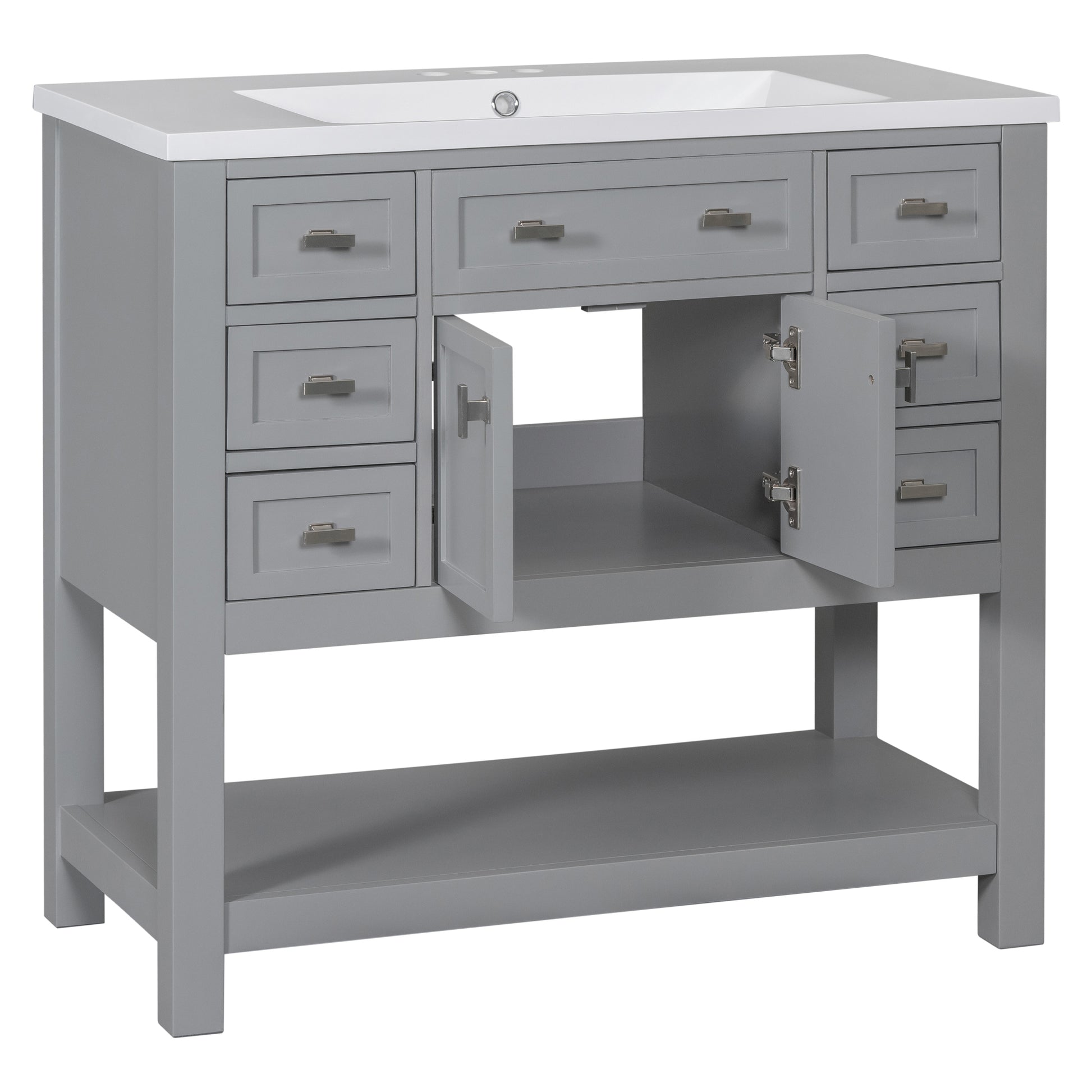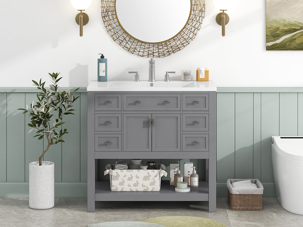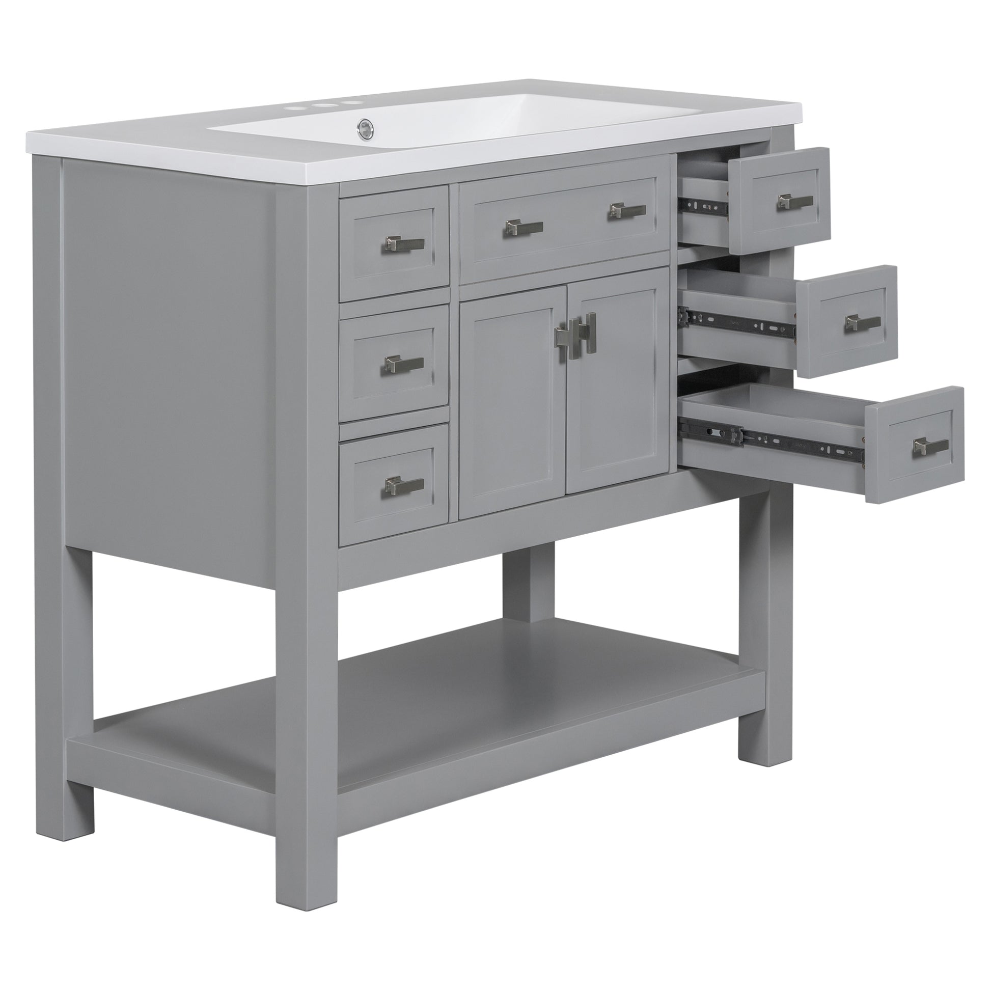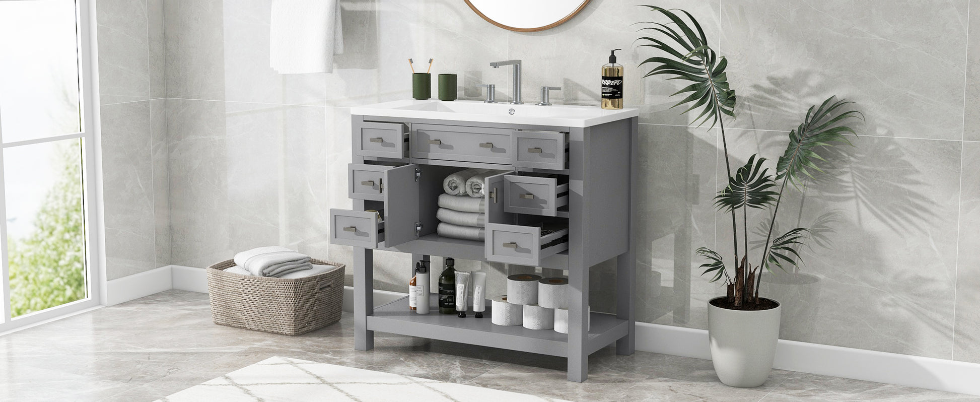 36'' Bathroom Vanity with Top Sink, Modern Bathroom Storage Cabinet with 2 Soft Closing Doors and 6 Drawers, Single Sink Bathroom Vanity