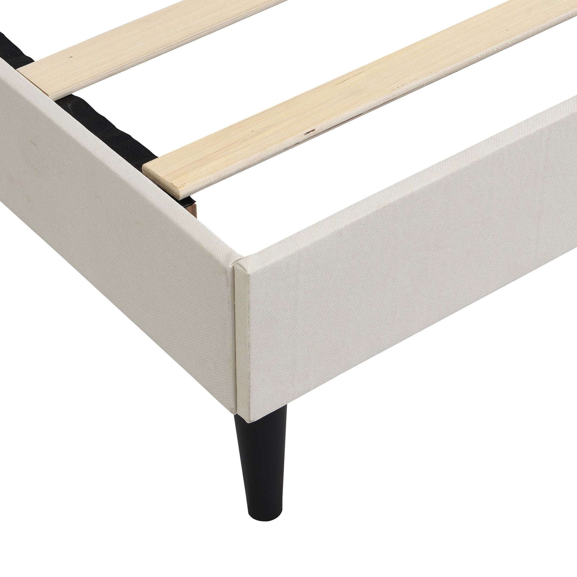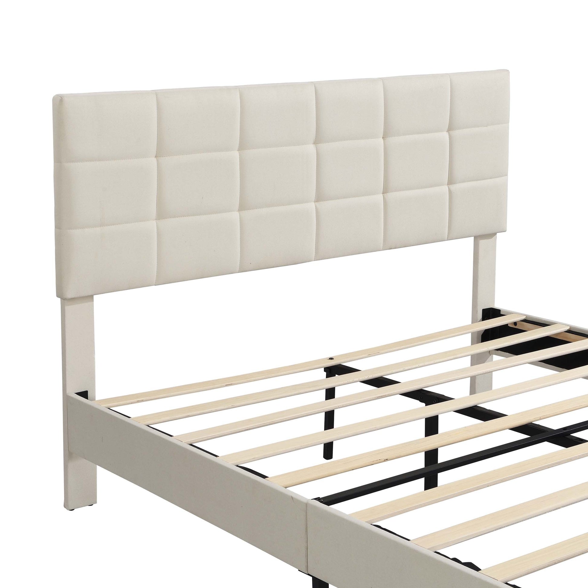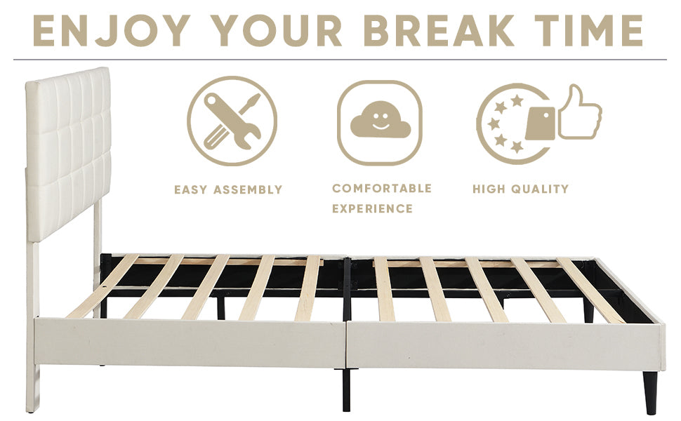 Queen Size Platform Bed Frame with Fabric Upholstered Headboard and Wooden Slats, No Box Spring Needed/Easy Assembly, Beige