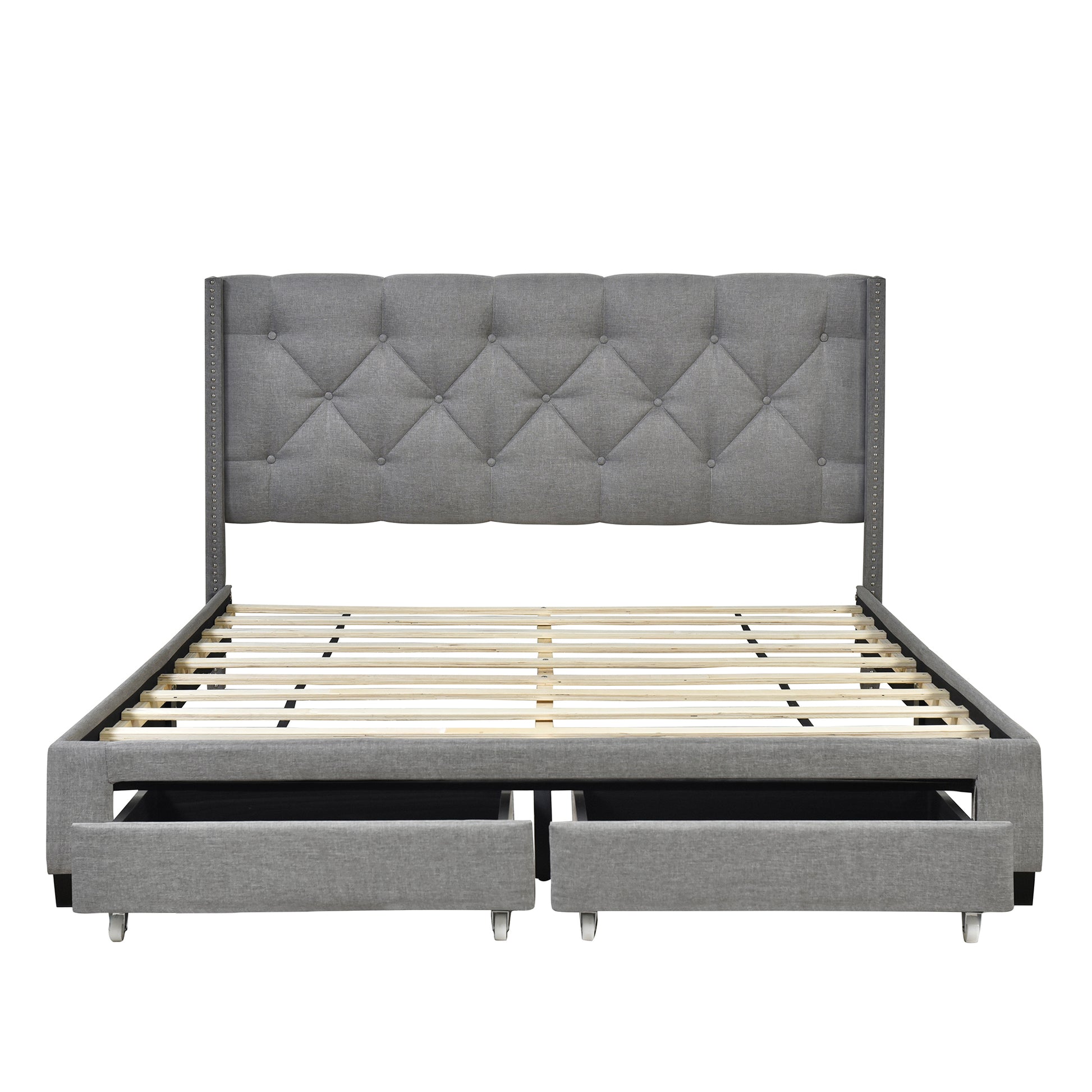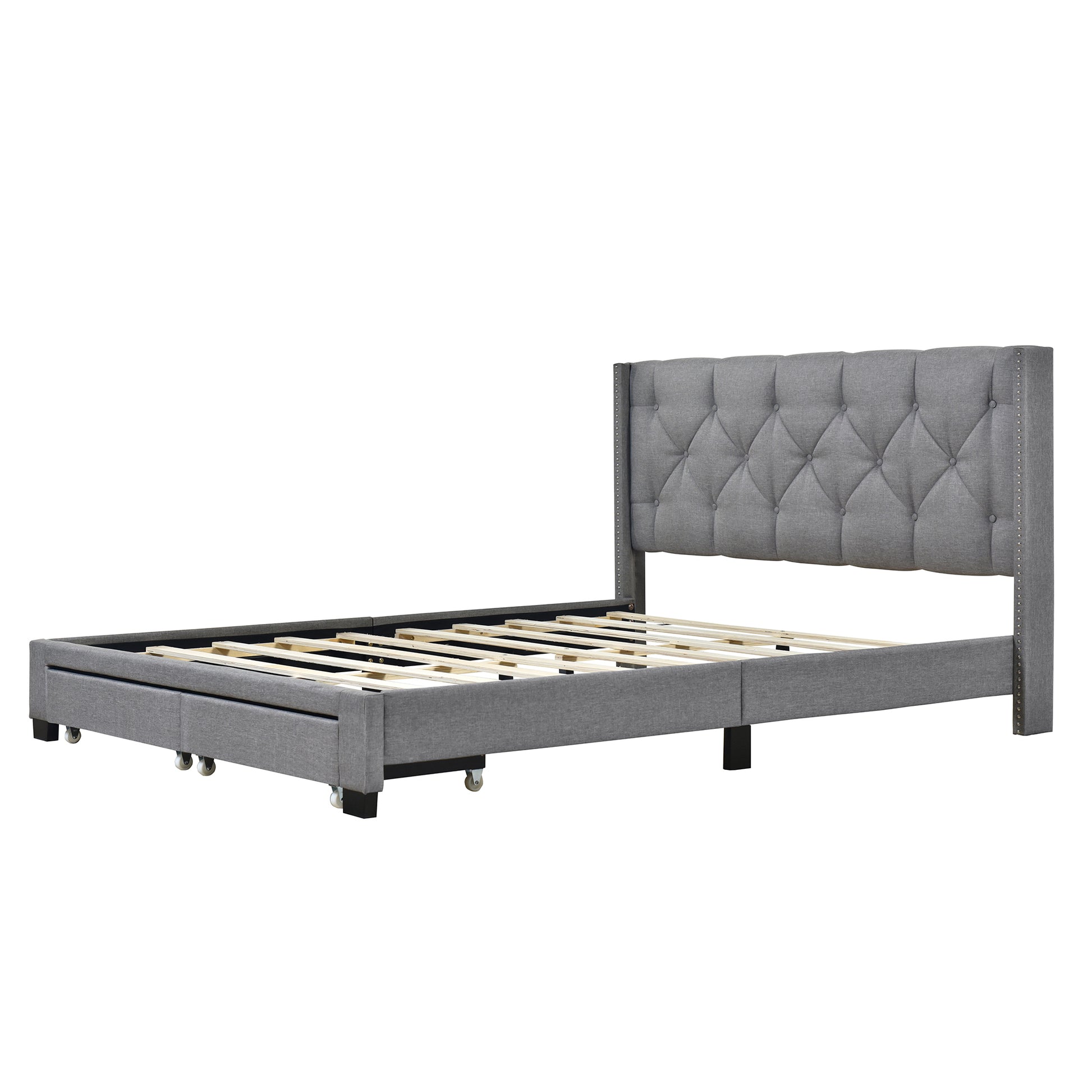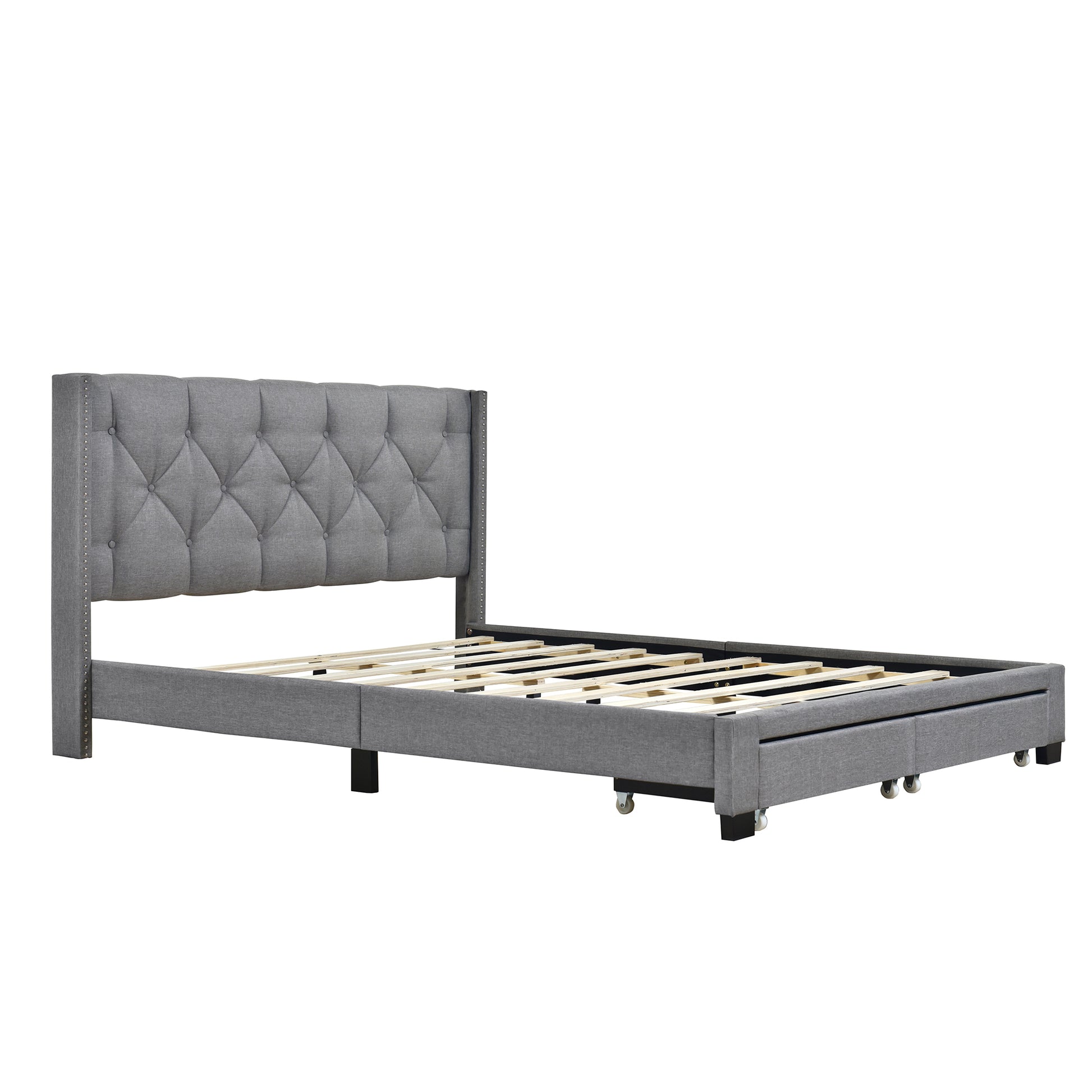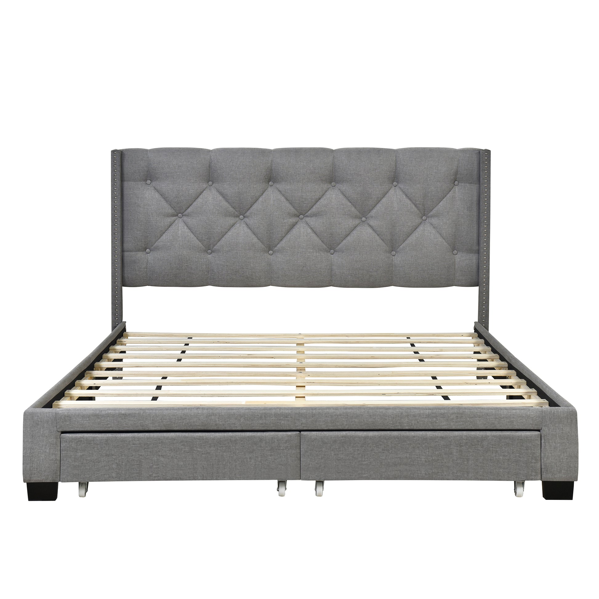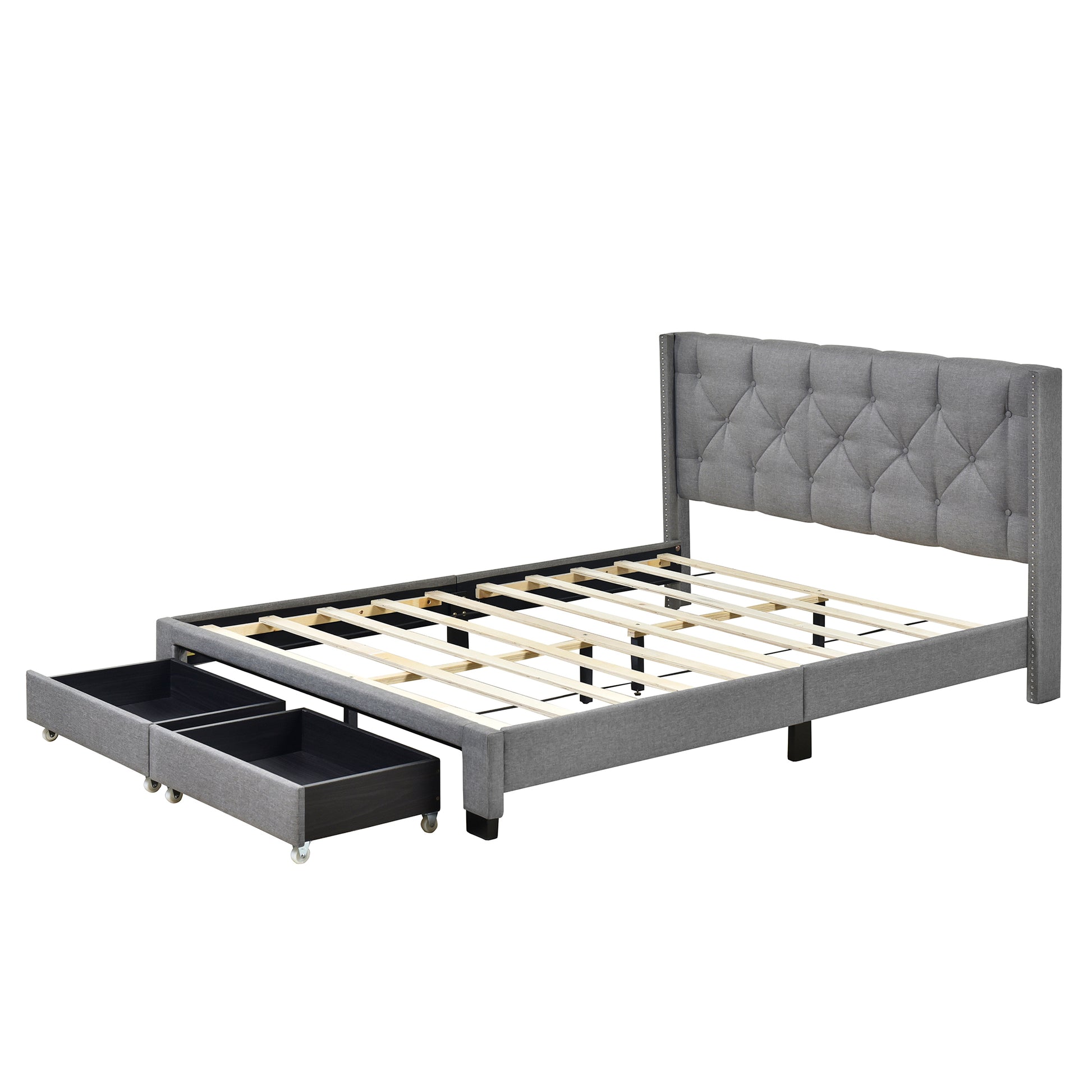 Queen Size Storage Bed Linen Upholstered Platform Bed with Two Drawers - Gray