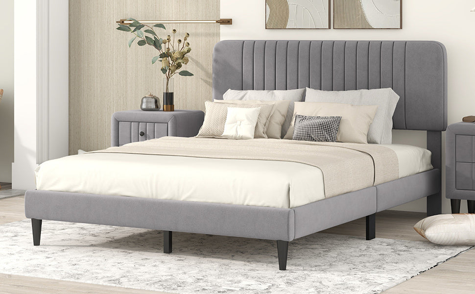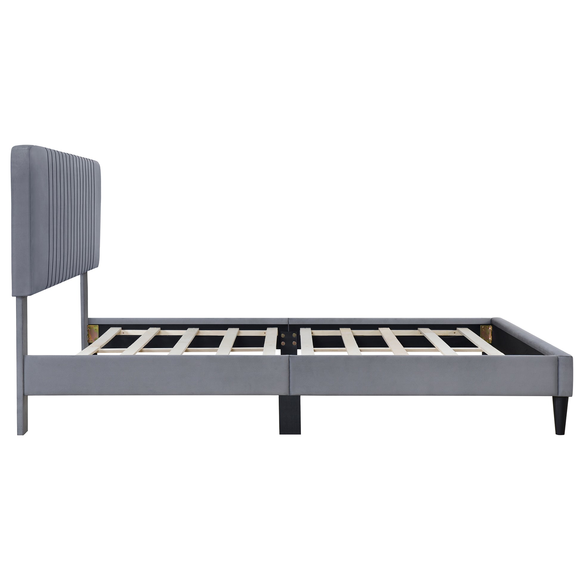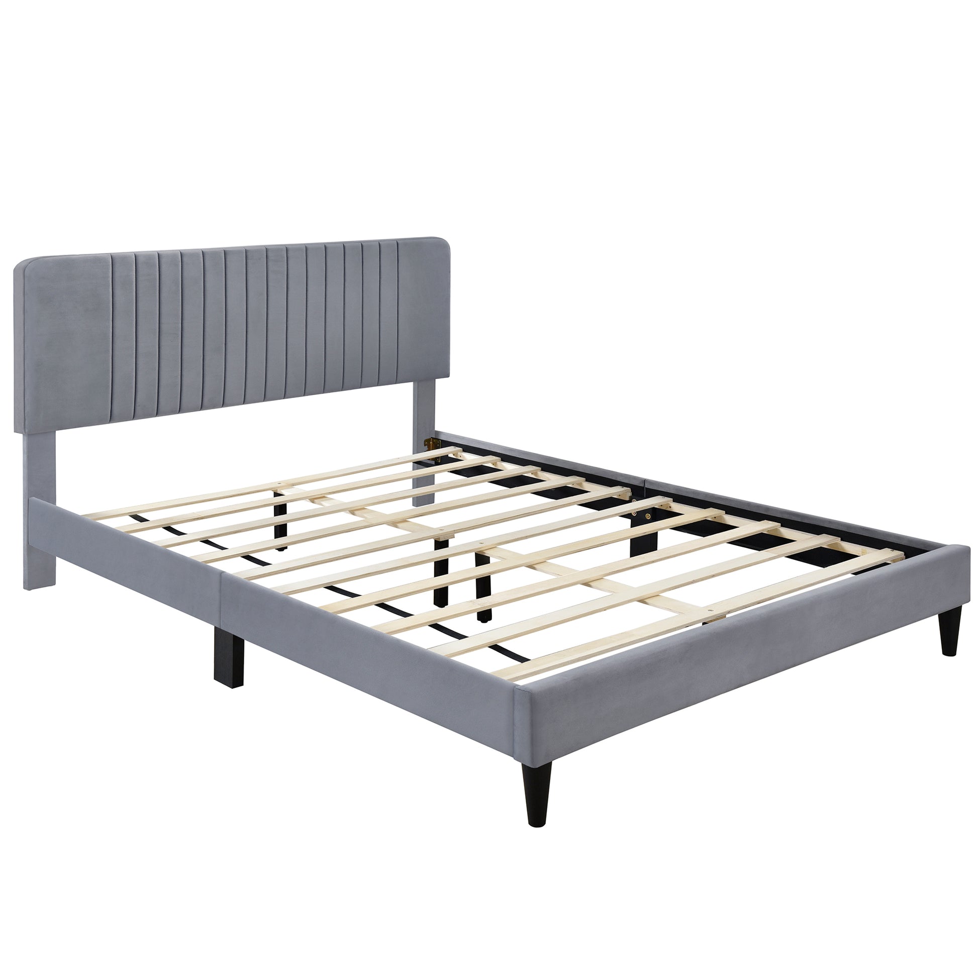 Queen Size Upholstered Platform Bed,No Box Spring Needed, Velvet Fabric,Gray