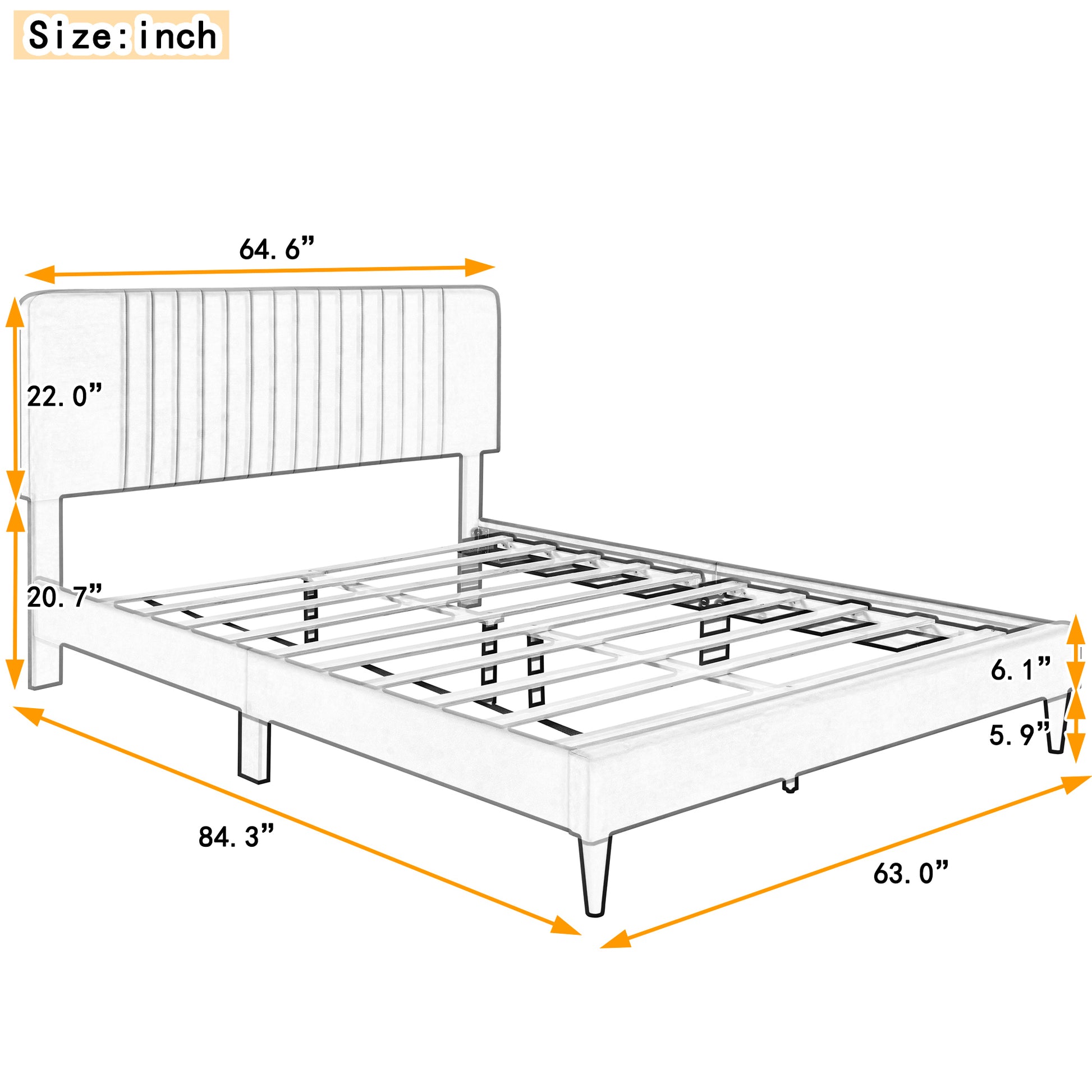This beautiful Upholstered Platform Bed features upholstered headboard that adds a contemporary chic look to your bedroom and filled in thick foam to add extra comfort.Sturdy wood frame construction add extra stability and safety. Despite its size and solidity, this piece comes with hardware and instructions included and anyone can assemble it, without a problem.