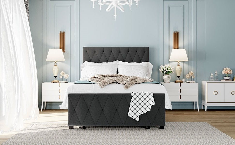 - [Maximized space]The platform bed with a big drawer can easily be pulled in and out for maximum storage space, perfect for organizing anything from clothes and bed linens to toys and games. Such a versatile piece, bringing functionality, versatility, and style to your home, perfect for those who have lots of visitors.