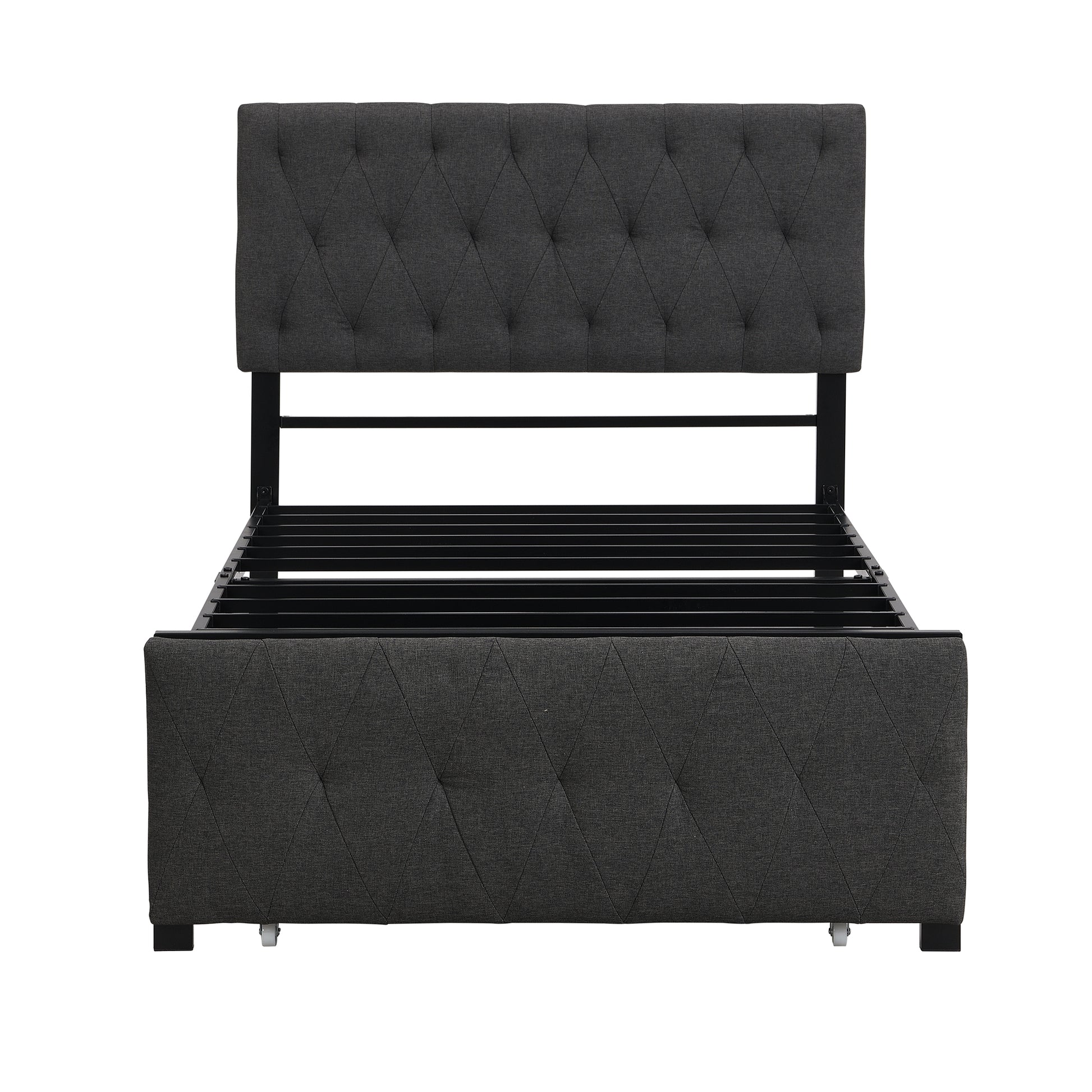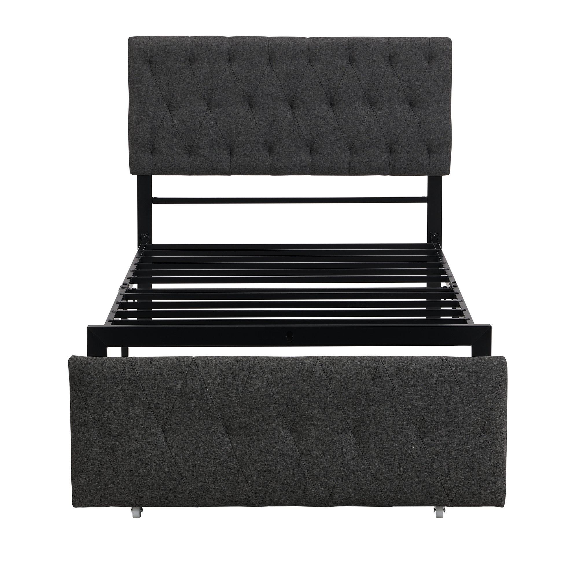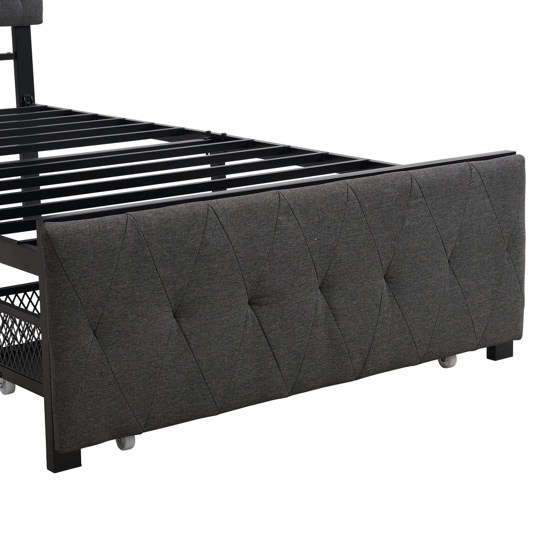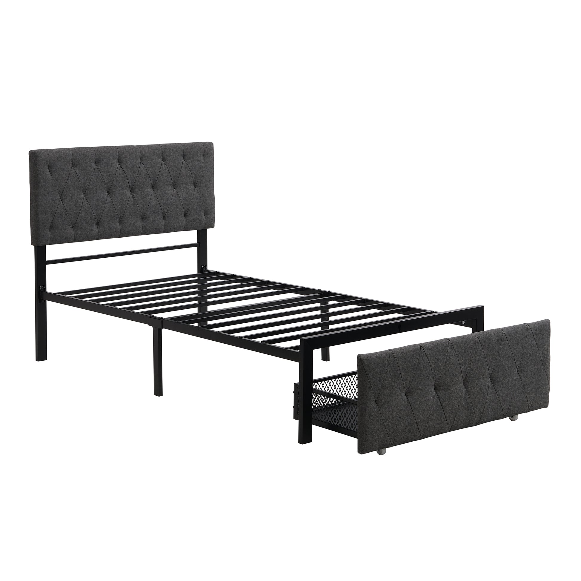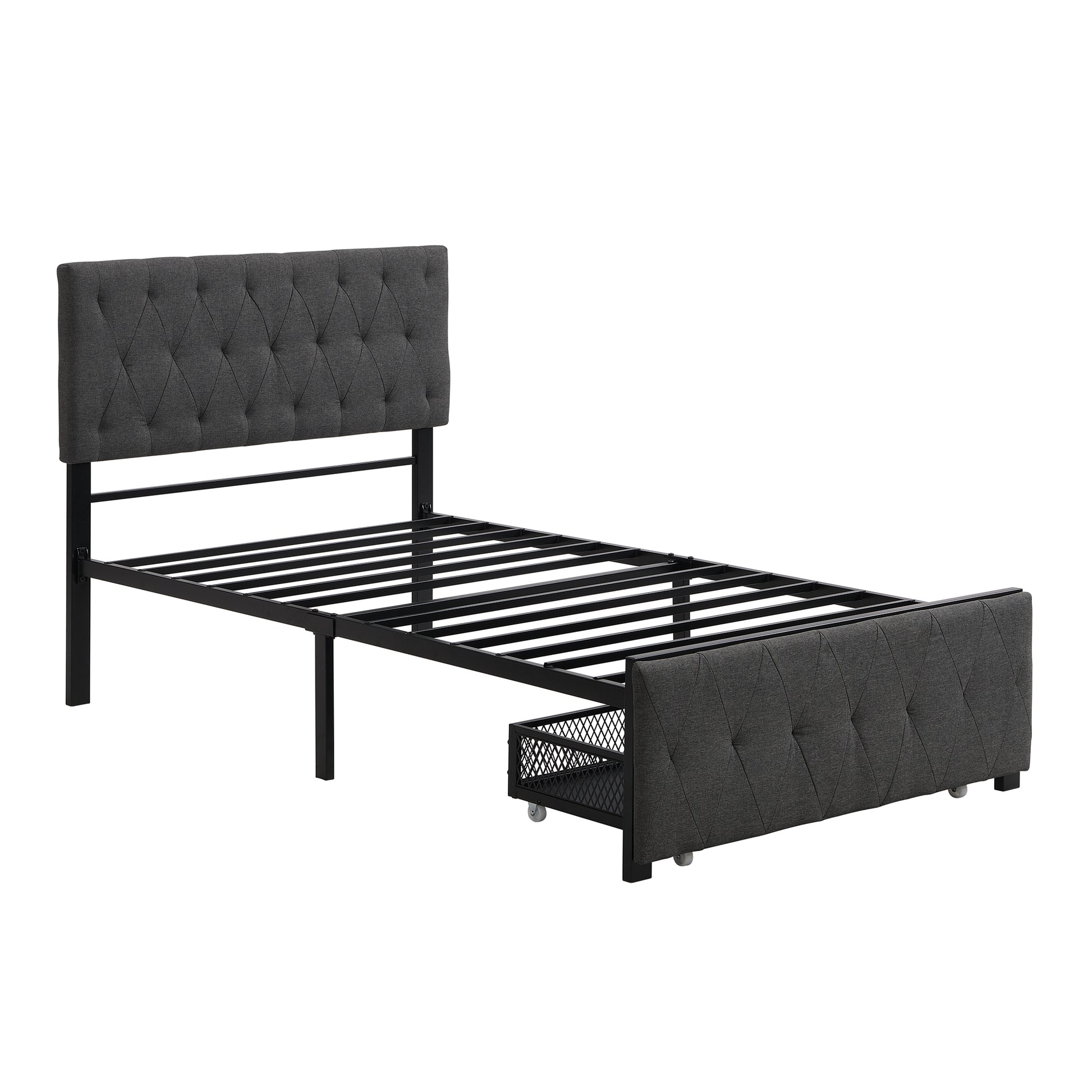 Twin Size Storage Bed Metal Platform Bed with a Big Drawer - Gray
