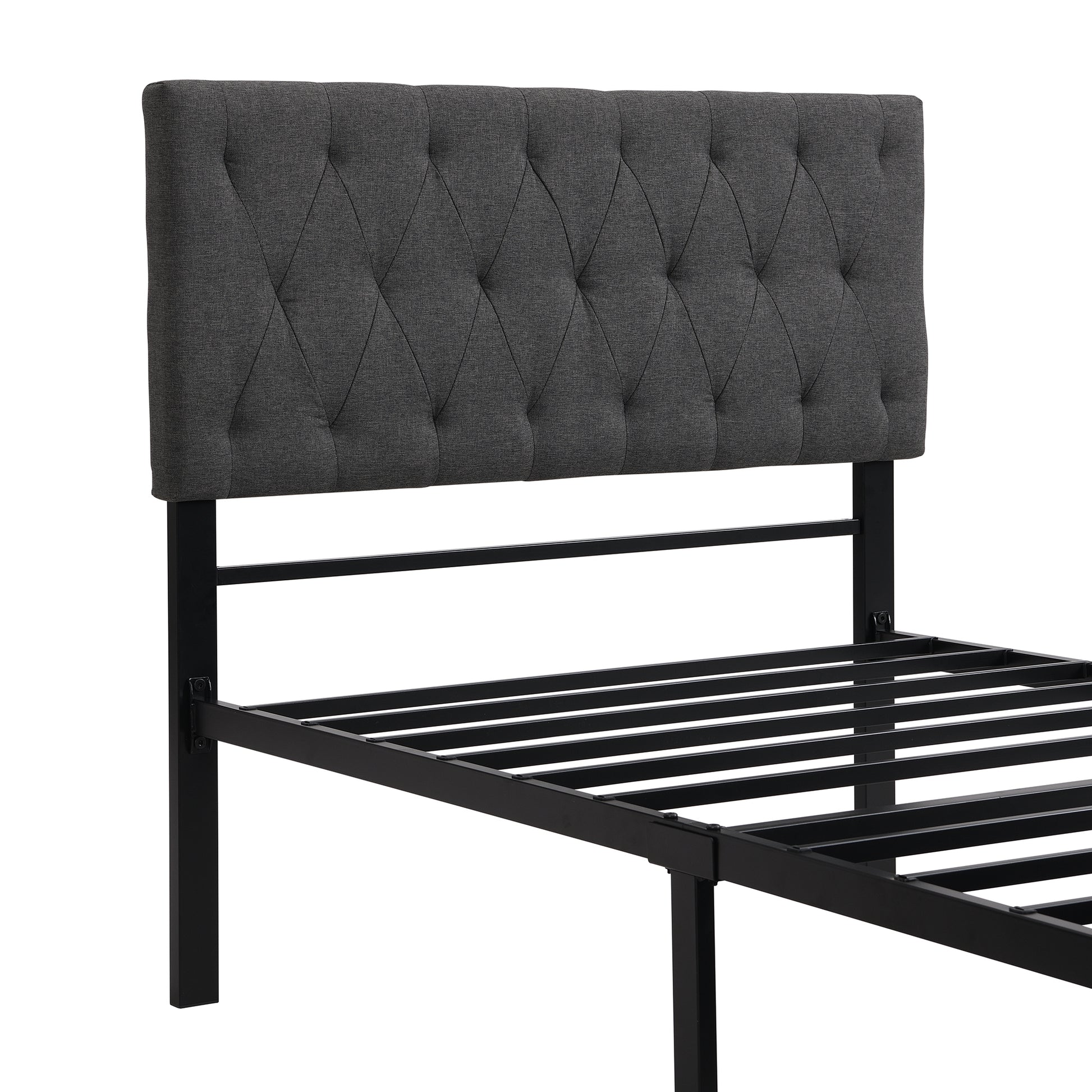 - [No Box Spring required] With 13 reinforced slats, the mattress (not included) will be well supported and your body weight will be evenly distributed for a great sleeping experience. Enjoy the convenience and unparalleled ease of use that this metal platform bed provides. Headboard is included as a comfy linen fabric backrest that brings you and your partner a cozy feeling.