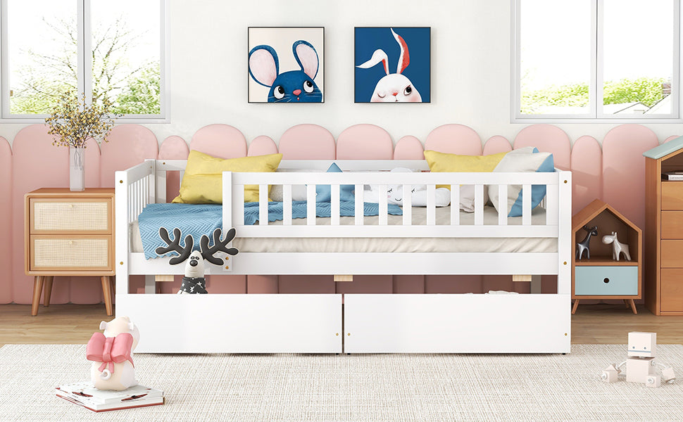Twin Size Daybed Wood Bed with Two Drawers , White
