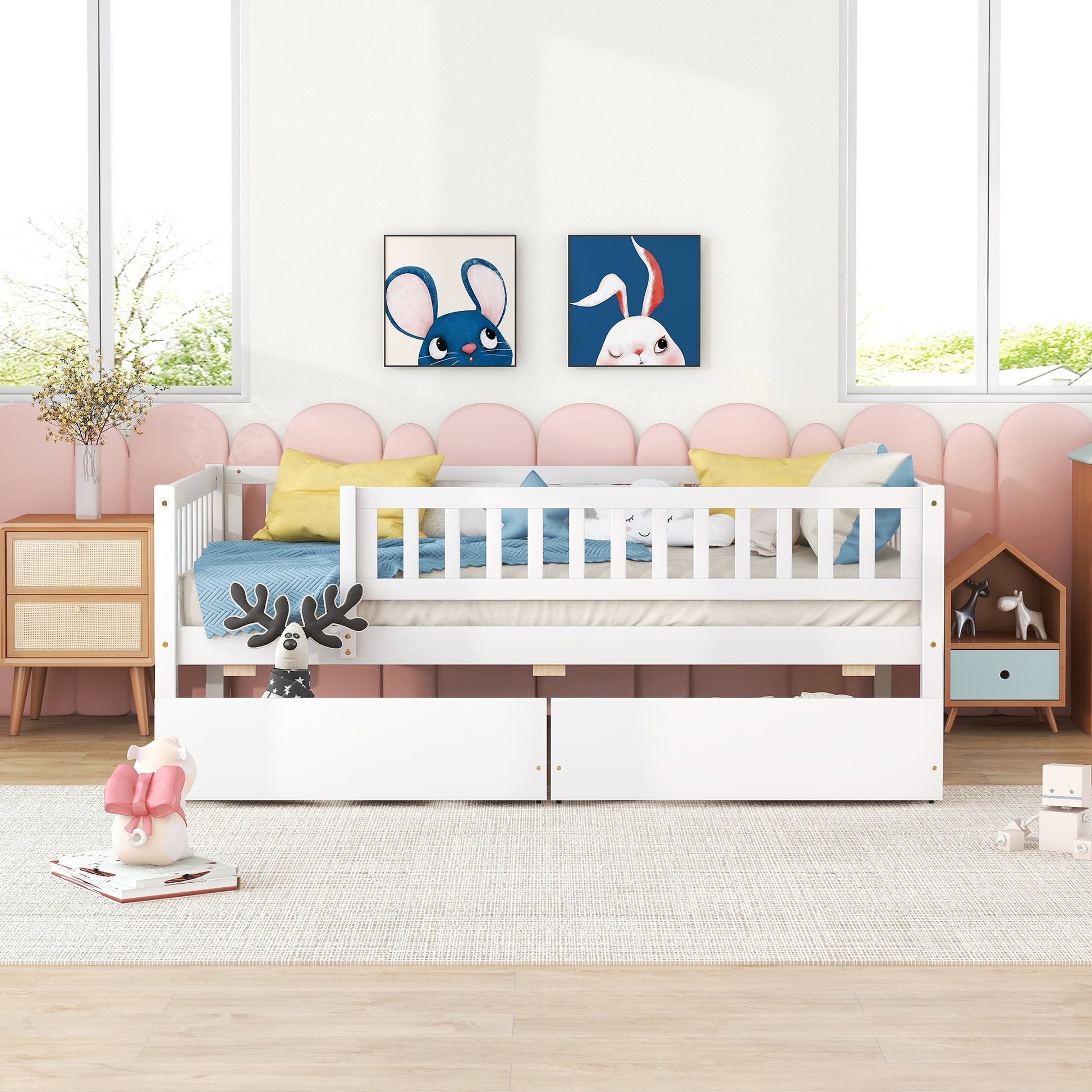 - [Space-saving] This twin size daybed with two drawers is easy to create the extra space when needed. Ideal for storing books and toys, making room-tidying a breeze.
